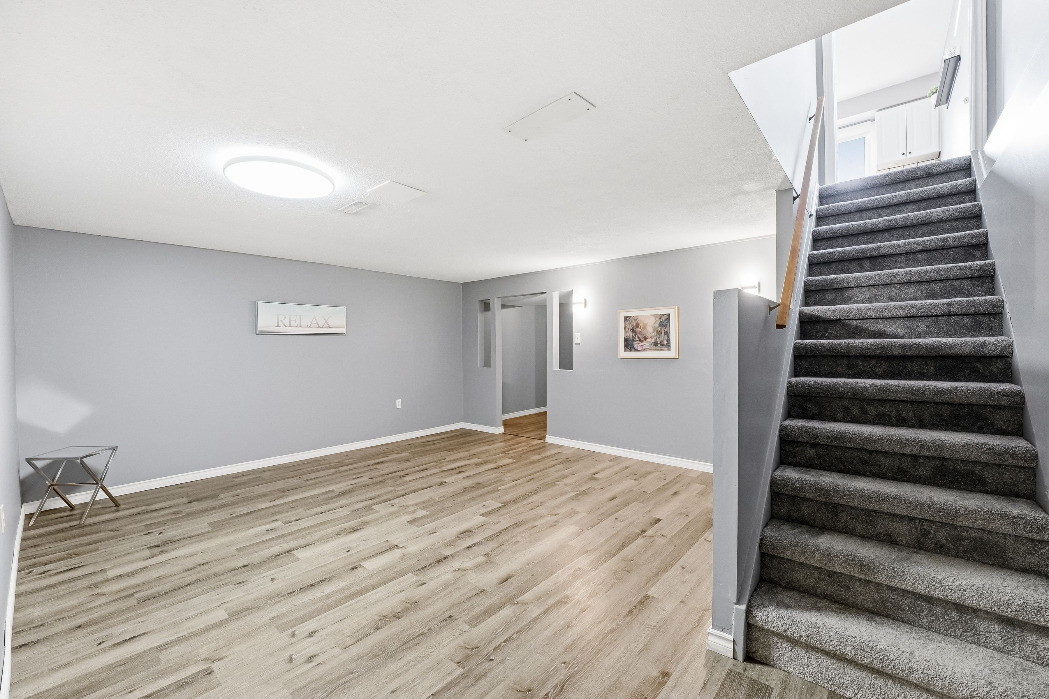 • Finished basement adds extra living space for relaxation or work.
