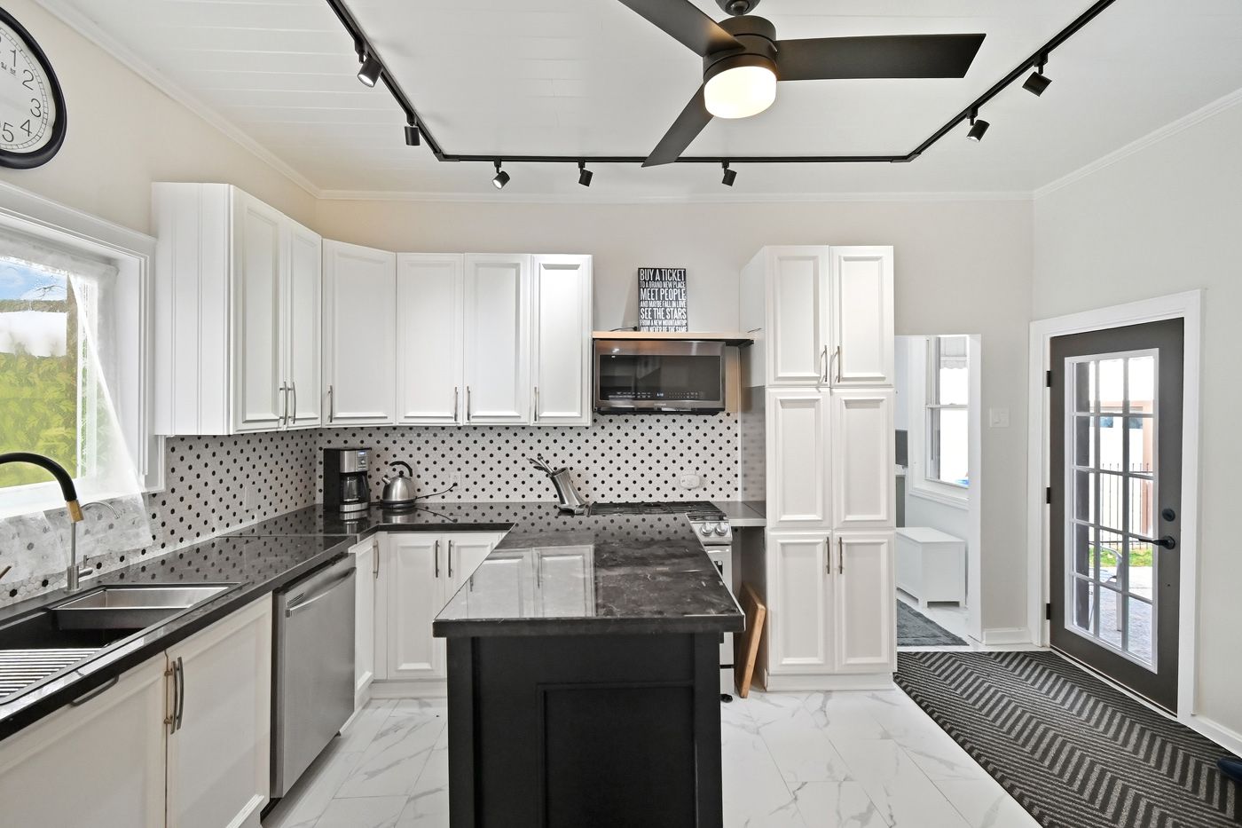 • Covered back porch and enclosed porches for outdoor relaxation.