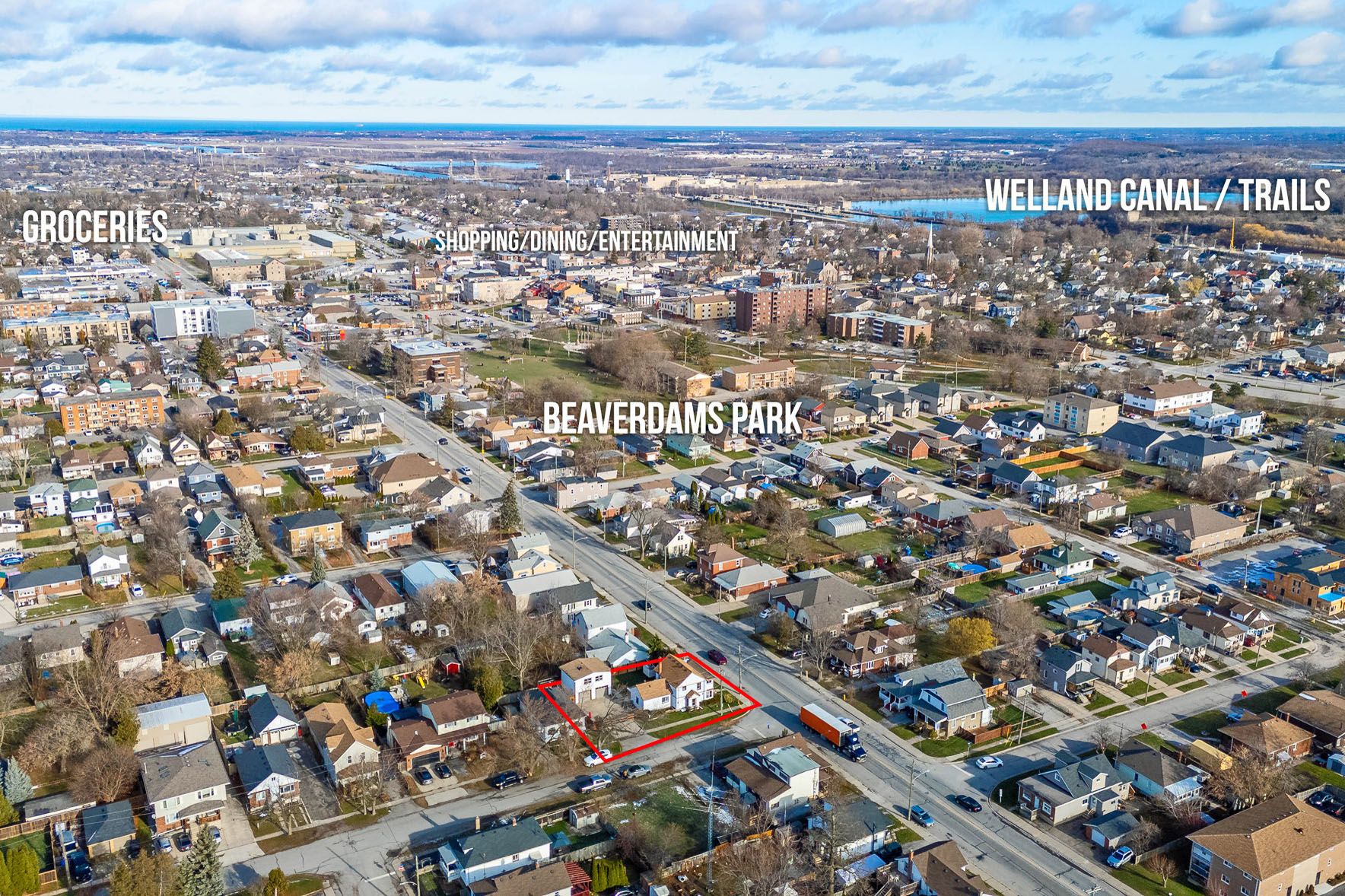 Welcome to 85 pine st s, thorold - a unique property offering versatility and value. Key features:income potential with flexible living or home office spaces large concrete driveway with ample parking + gated entry oversized heated double garage with finished loft and 60-amp pane; ideal for workshop, gym, or office updated interior with modern kitchen (granite), renovated bath, updated flooring & pot lights main-floor laundry, central vacuum & reverse osmosis system solid cedar fencing for added privacy covered back porch and patio for outdoor living two enclosed porches with separate exterior access add bonus flex space for a mudroom, coffee nook, or quiet retreat. Located near the welland canal trail, parks, hwy 58, and just minutes to the pen centre. This home blends lifestyle, function, and rare features at this price point.