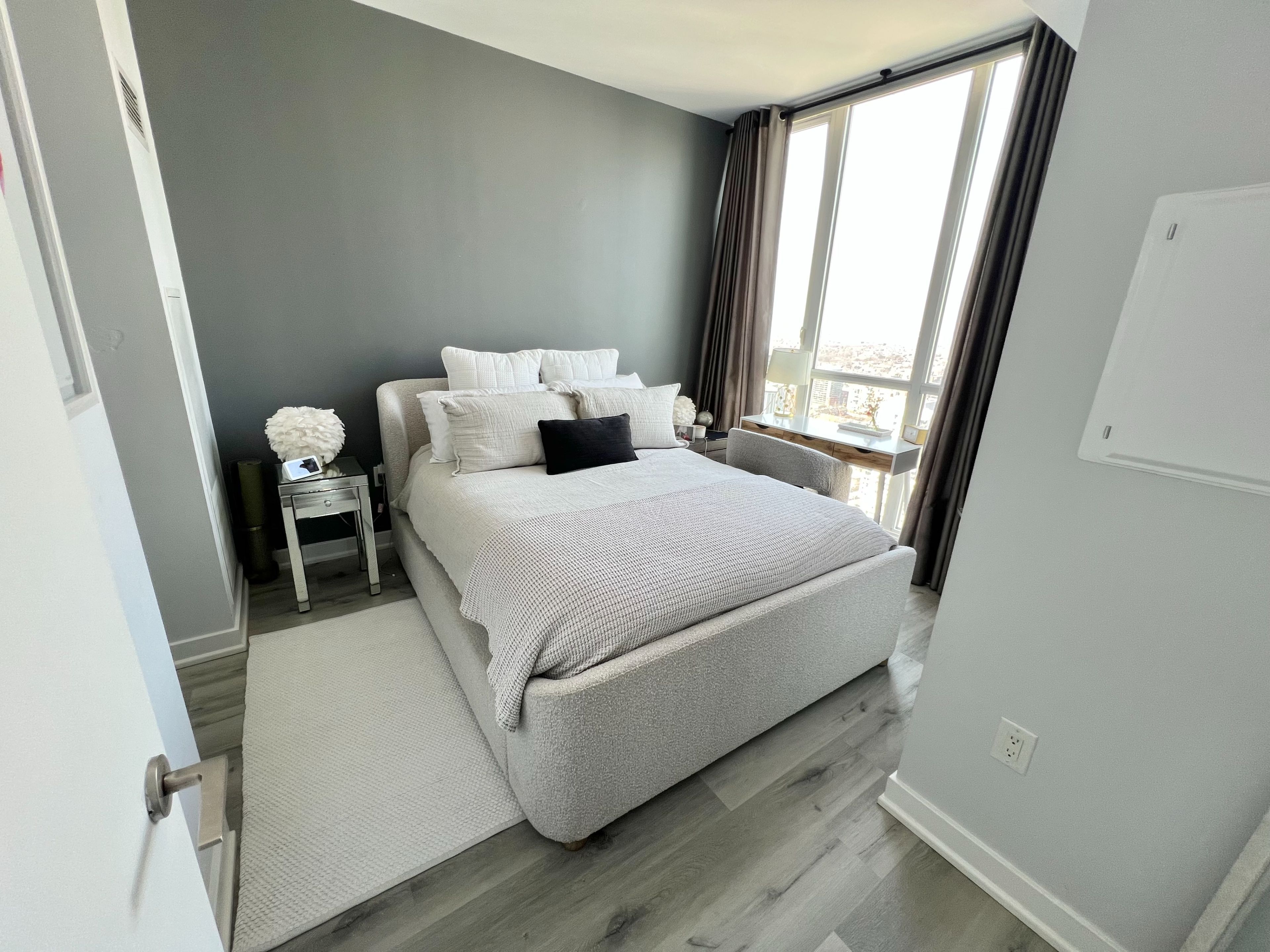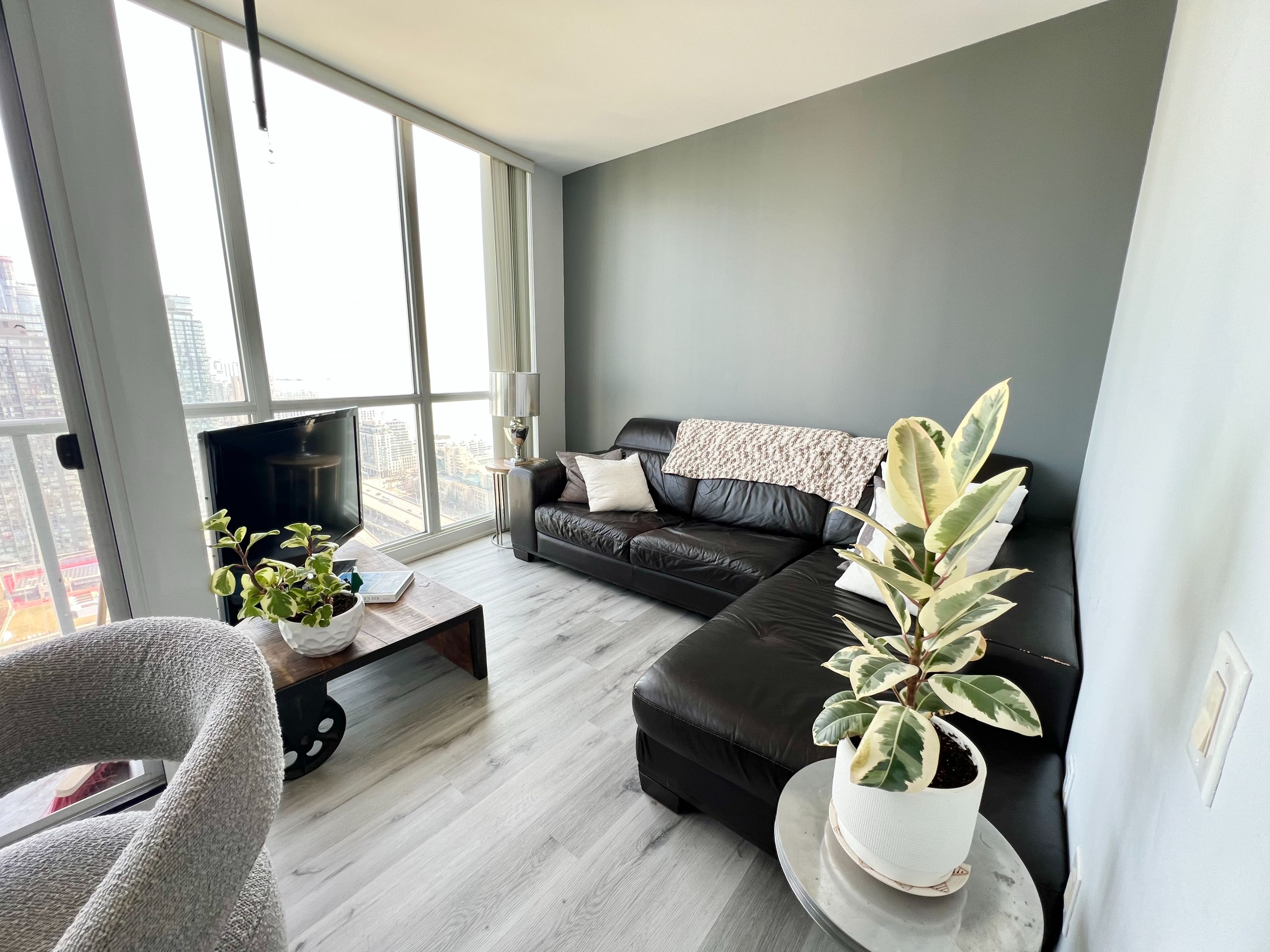 • Spacious corner unit features wall-to-wall windows for plenty of natural light.