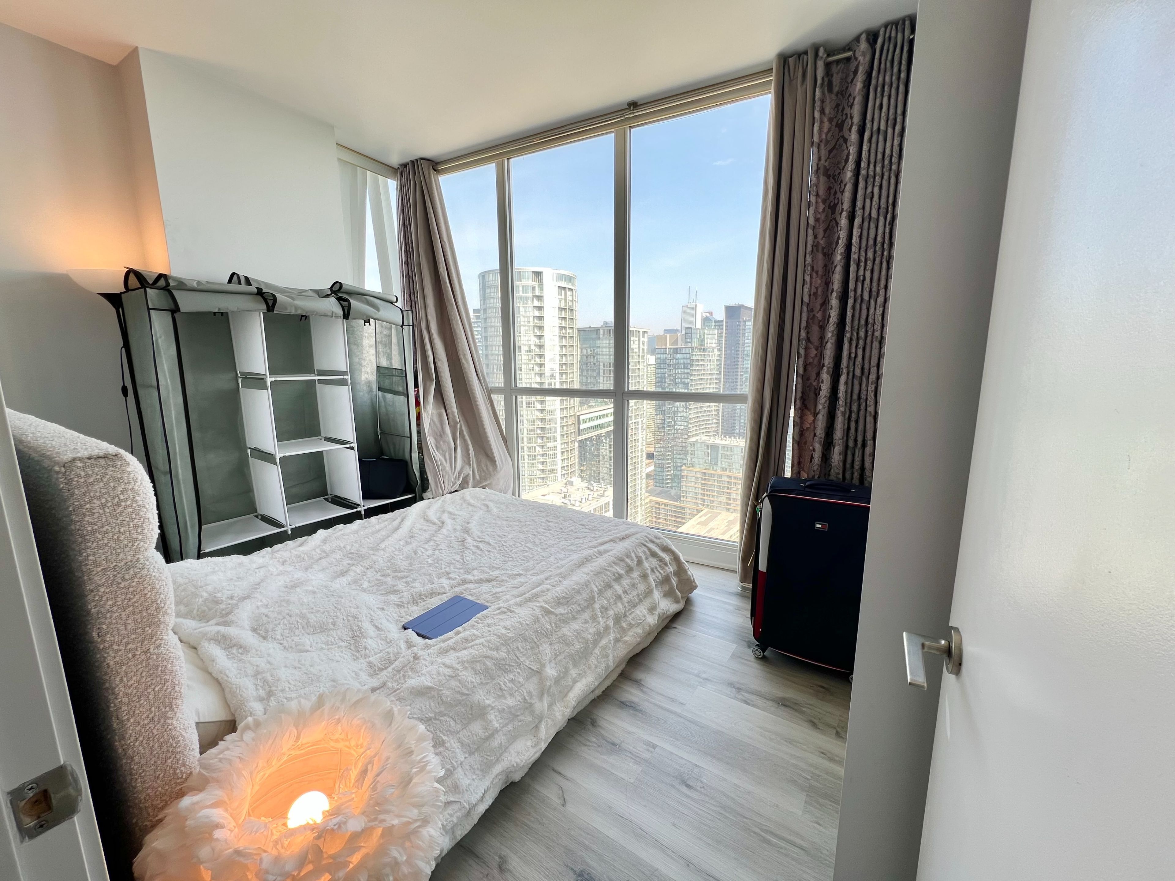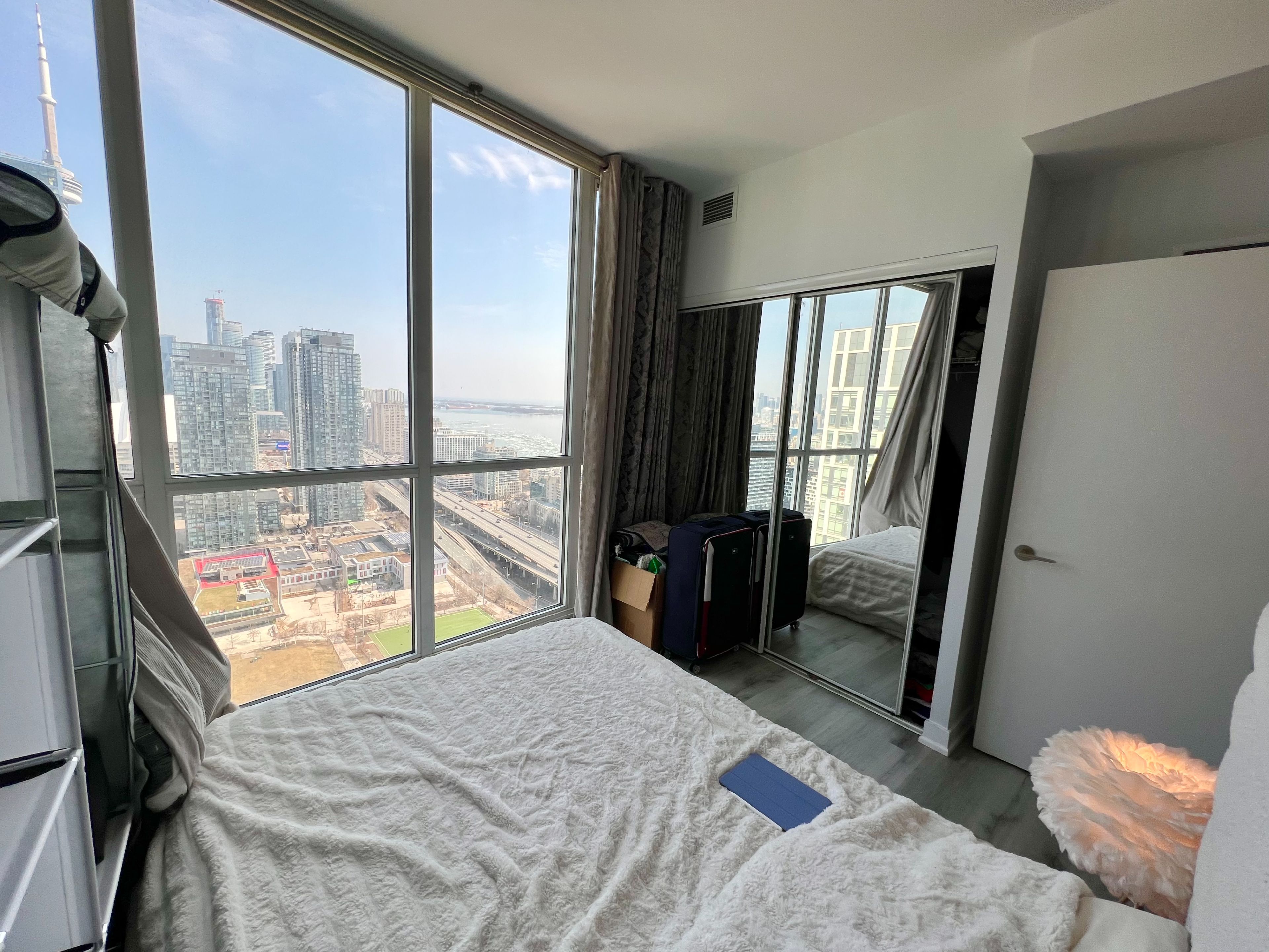 Welcome to spectra condos! Live in this bright & spacious luxury penthouse condo corner unit, with unobstructed northeast views overlooking beautiful 8 acre park & lake. Wall-to-wall large windows fill the space with tons of natural light, & excellent functional split layout with 2 bedrooms & 2 full baths. Close to uoft, walking distance to public transit, cn tower, roger's centre, & sobeys. 24hr concierge, guest suites, gym, movie room, party room, swimming pool, etc..