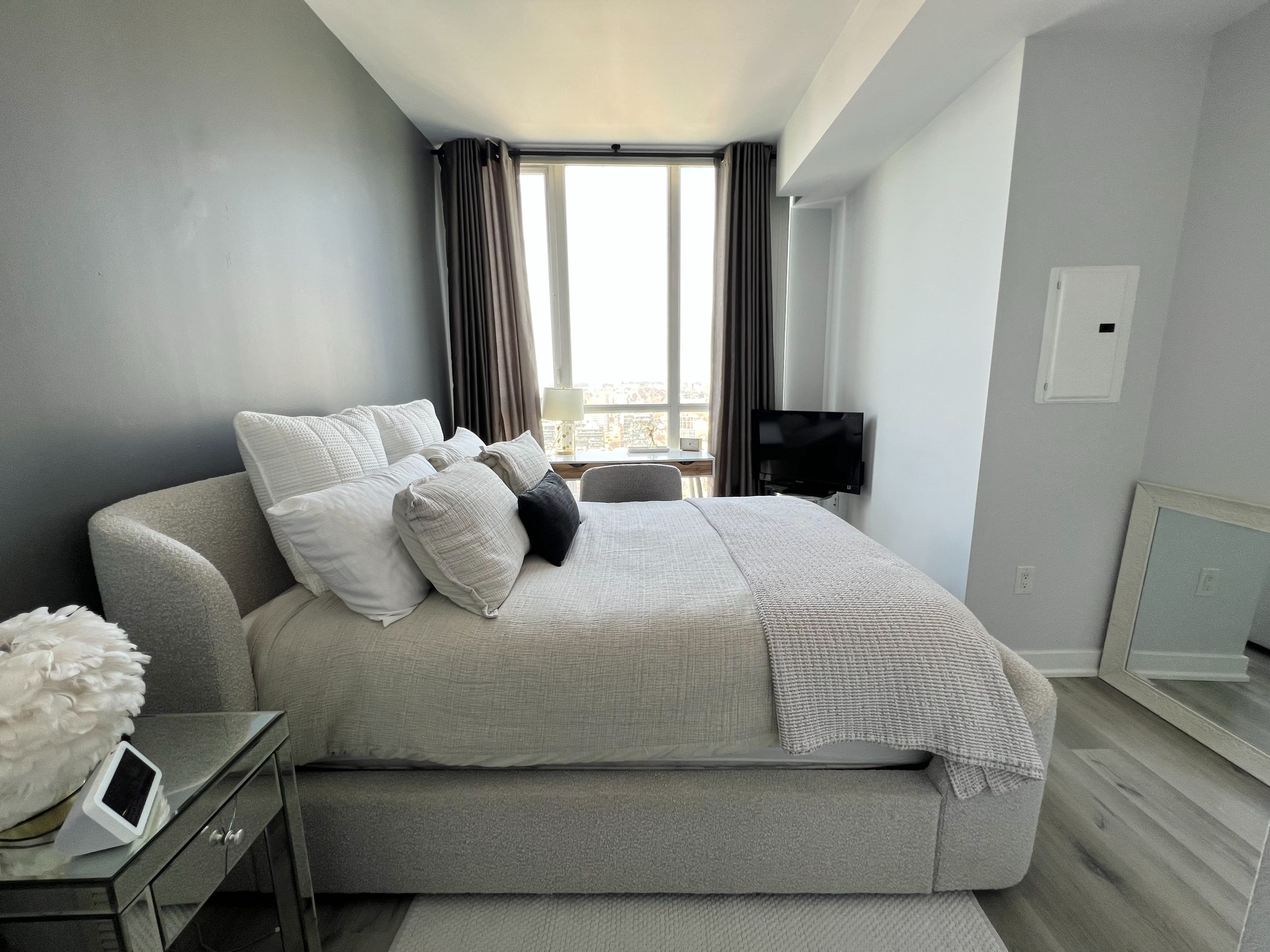 • Building amenities include a gym, pool, and 24-hour concierge services.