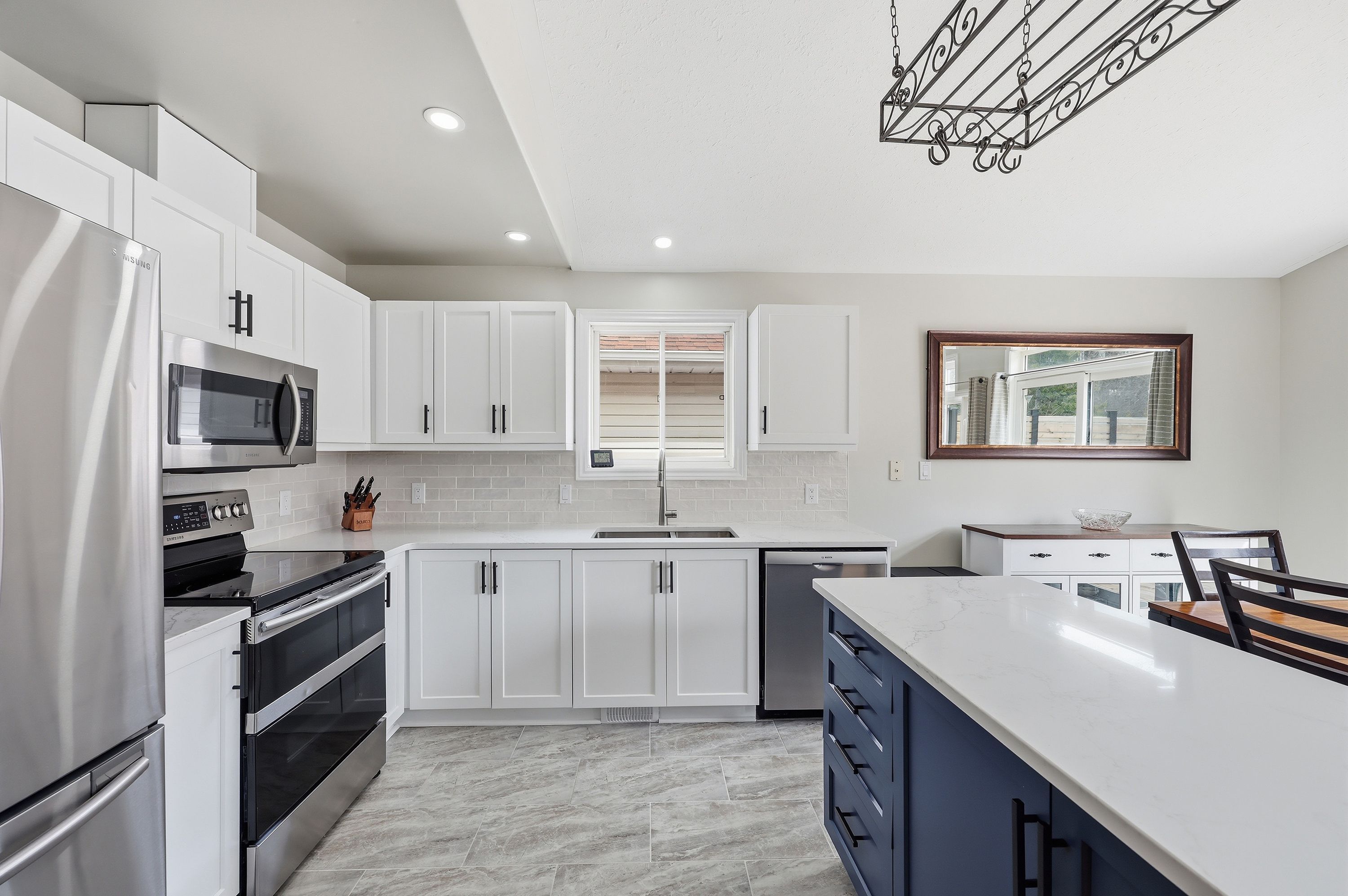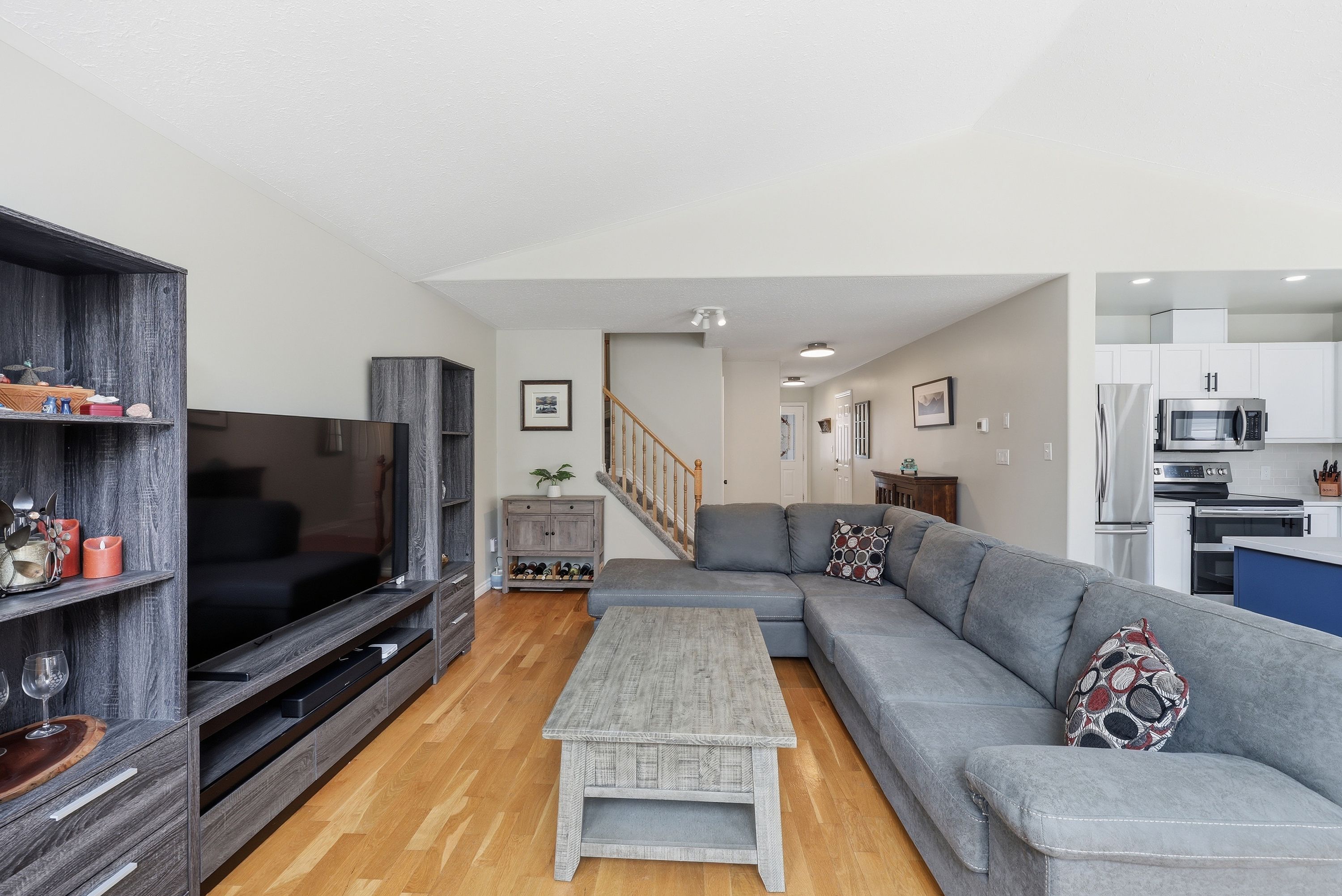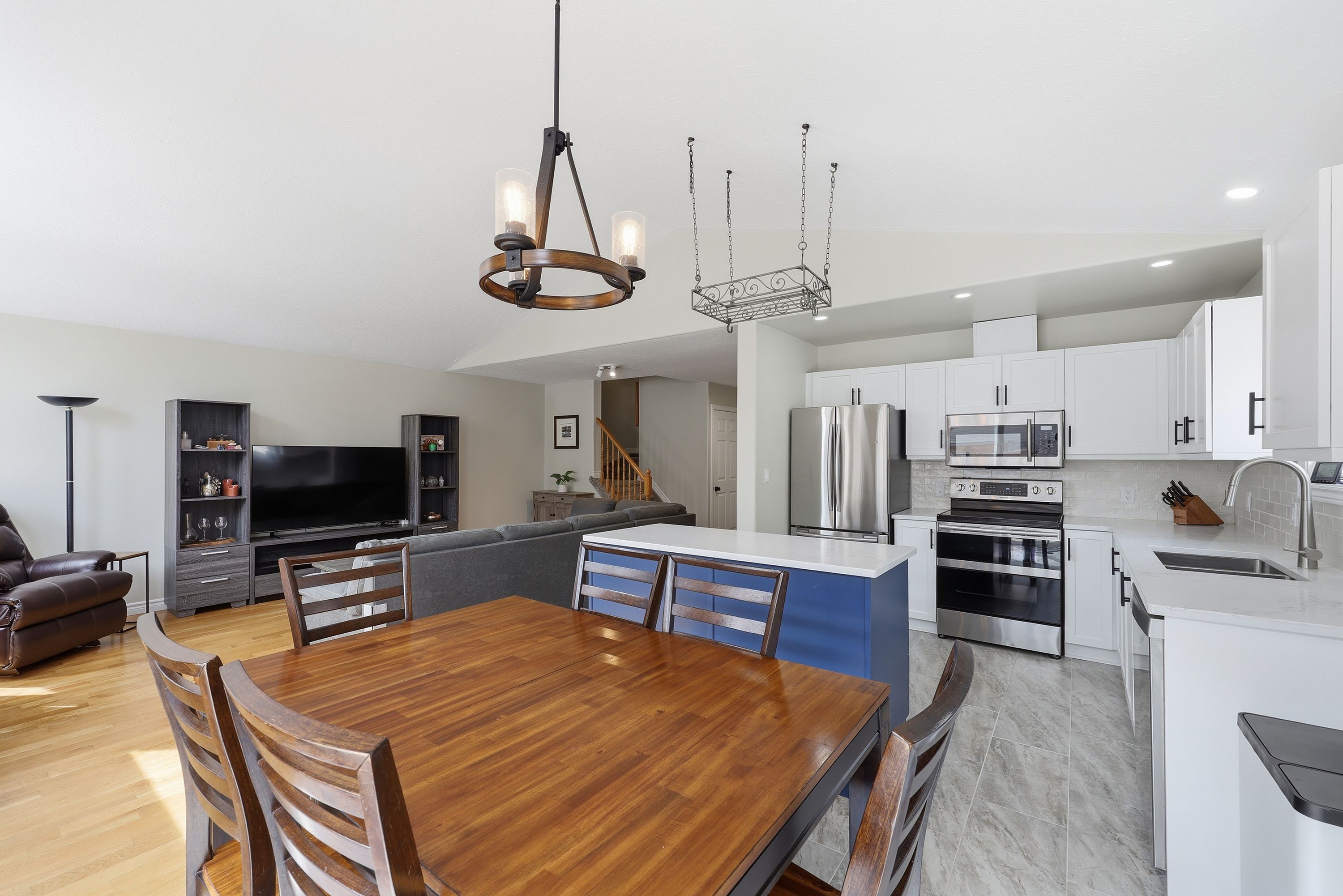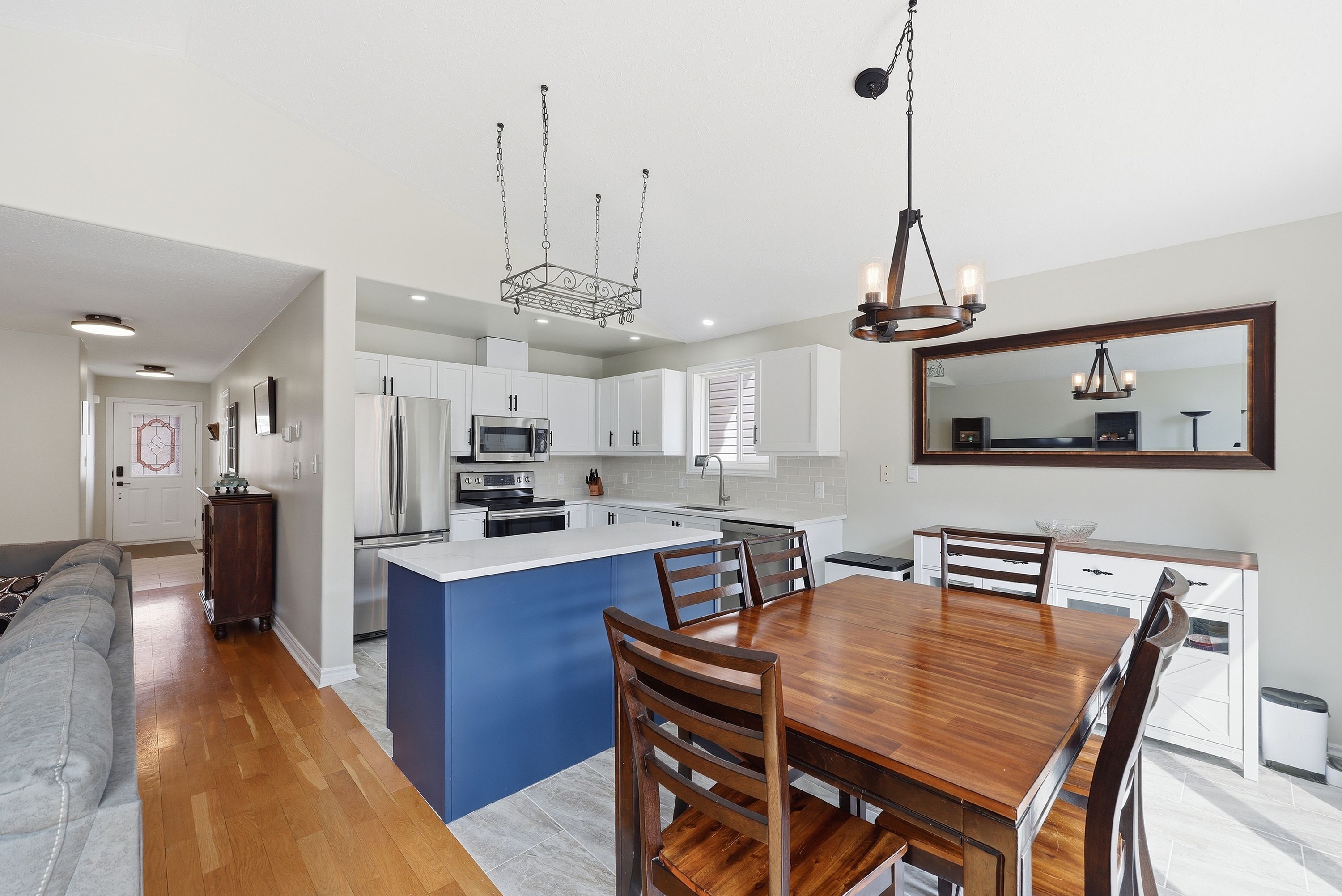 • Bright open concept layout with hardwood and tile flooring throughout.