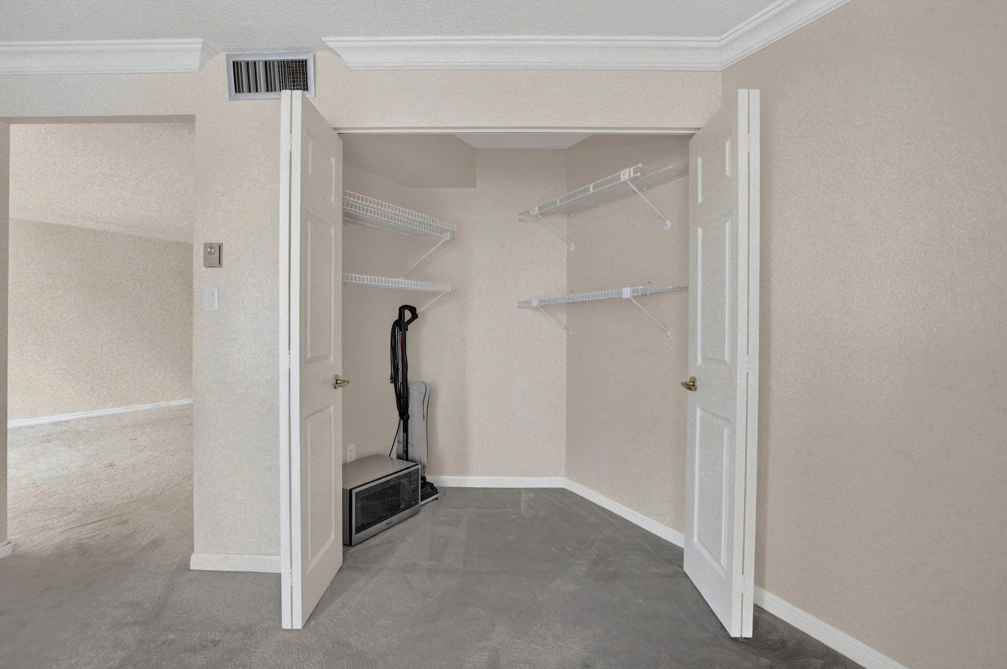 • Primary bedroom features a walk-out balcony and two closets.