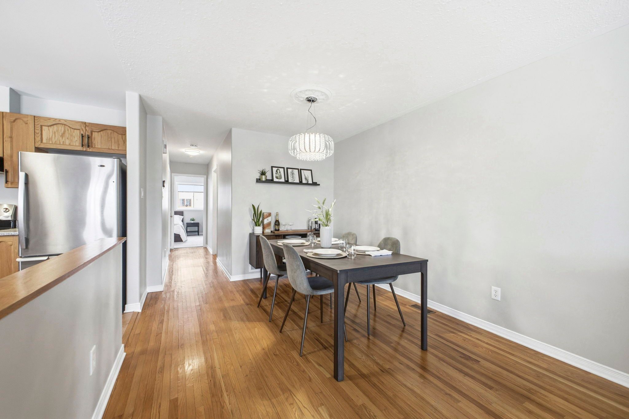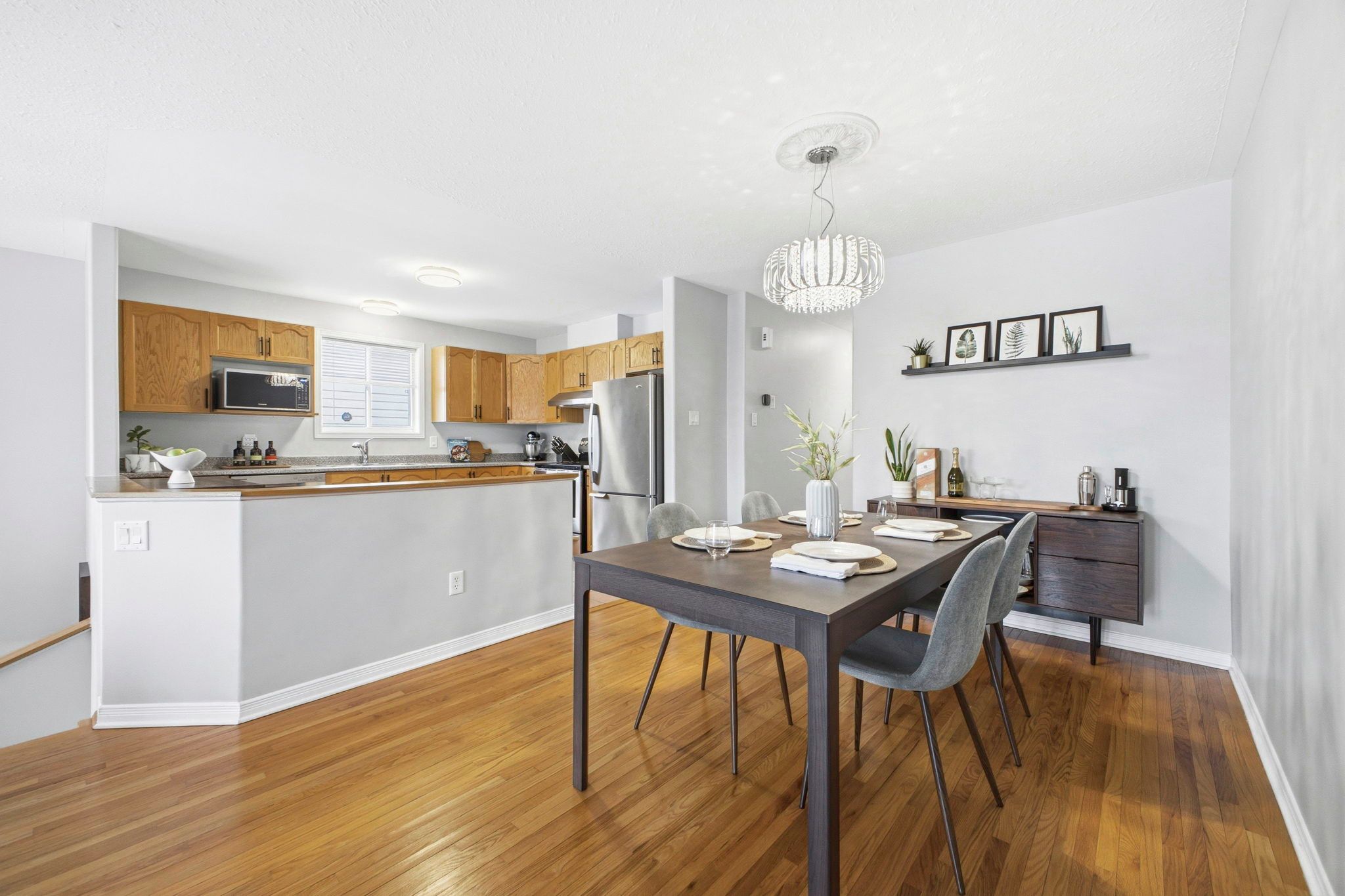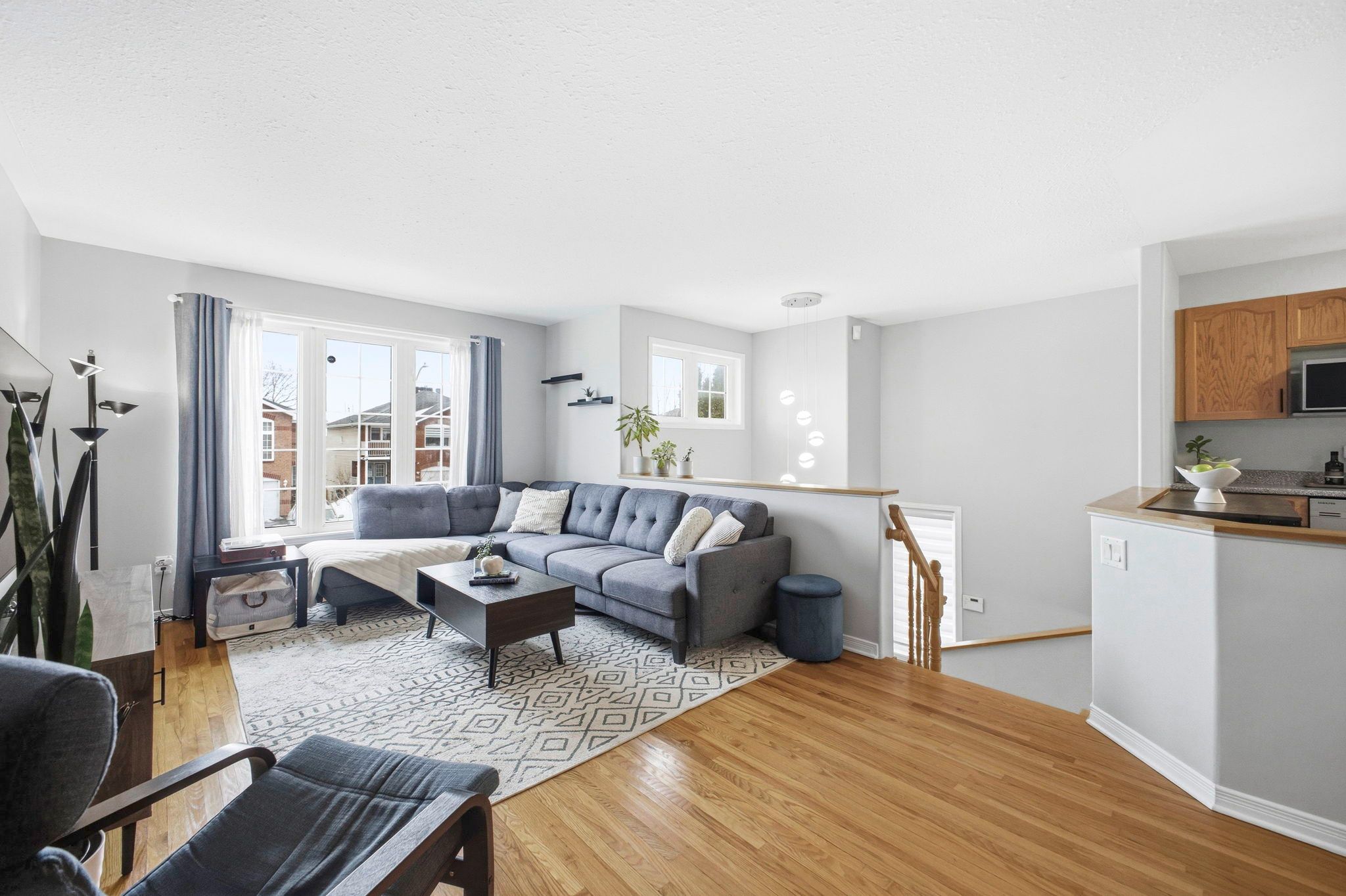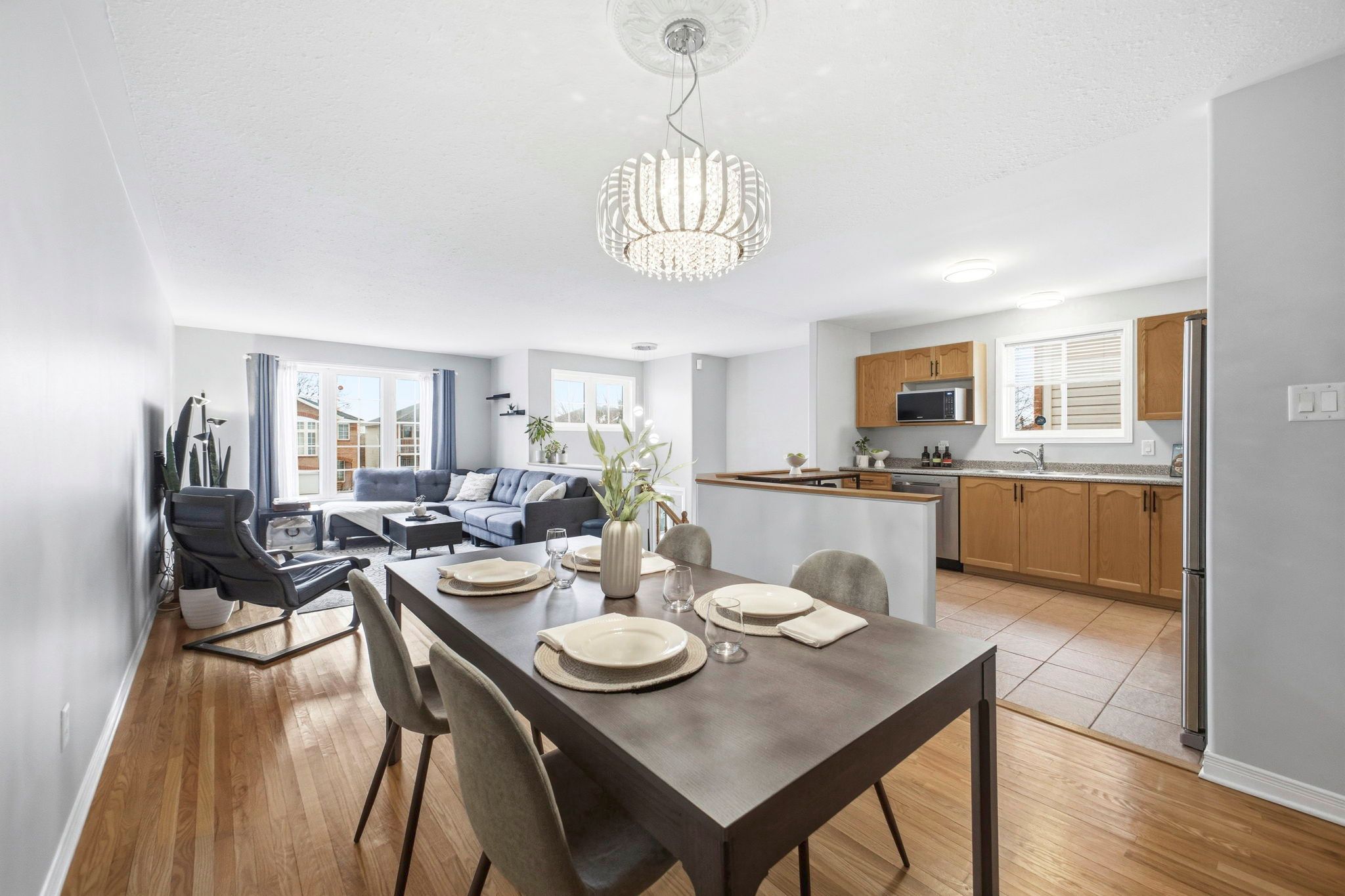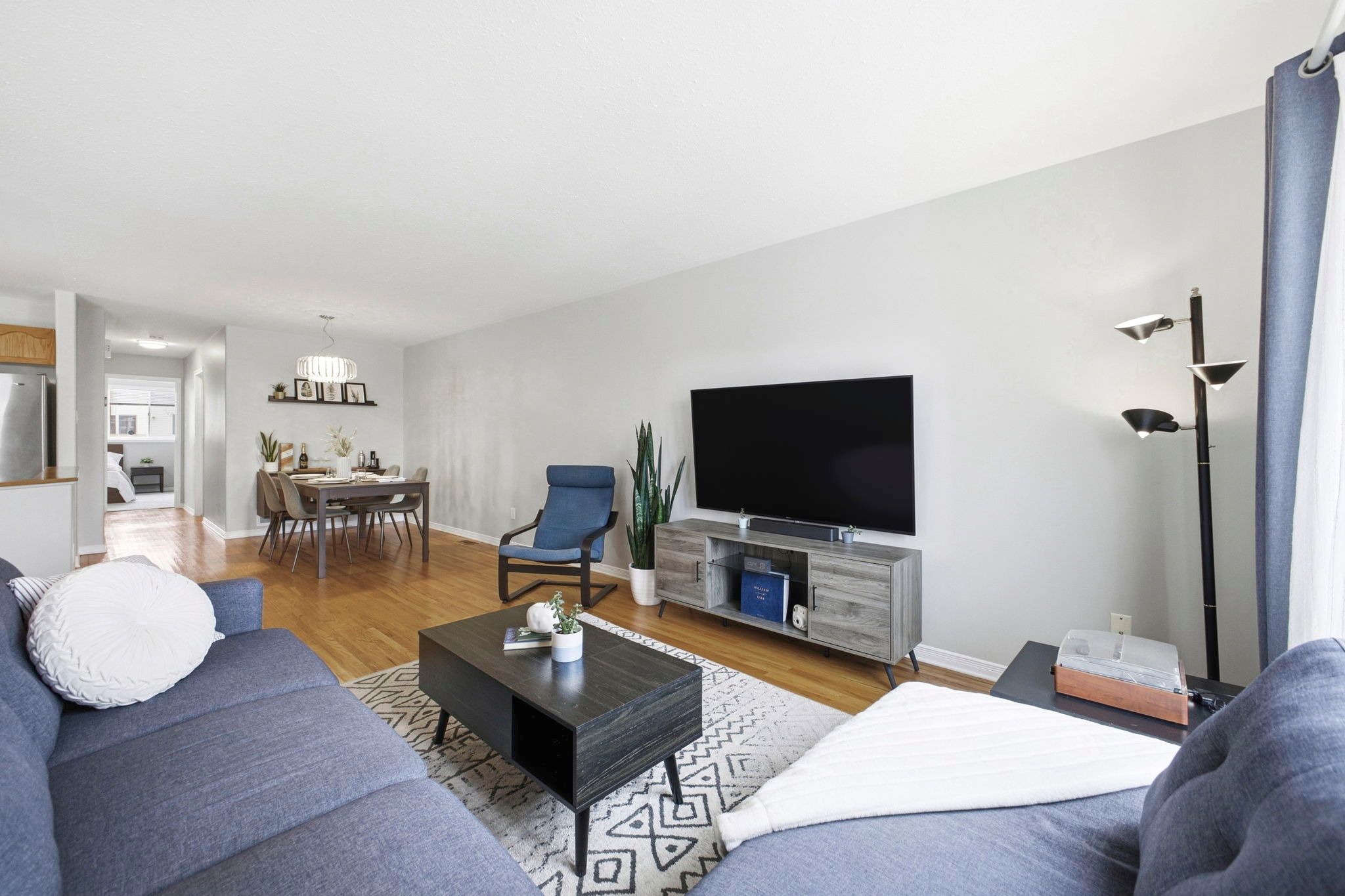 • Open-concept living and dining area with hardwood floors.
