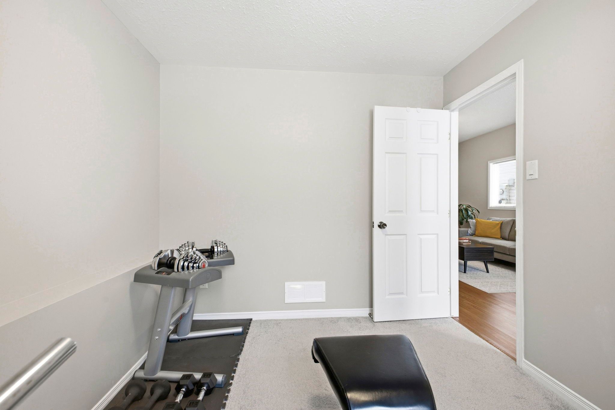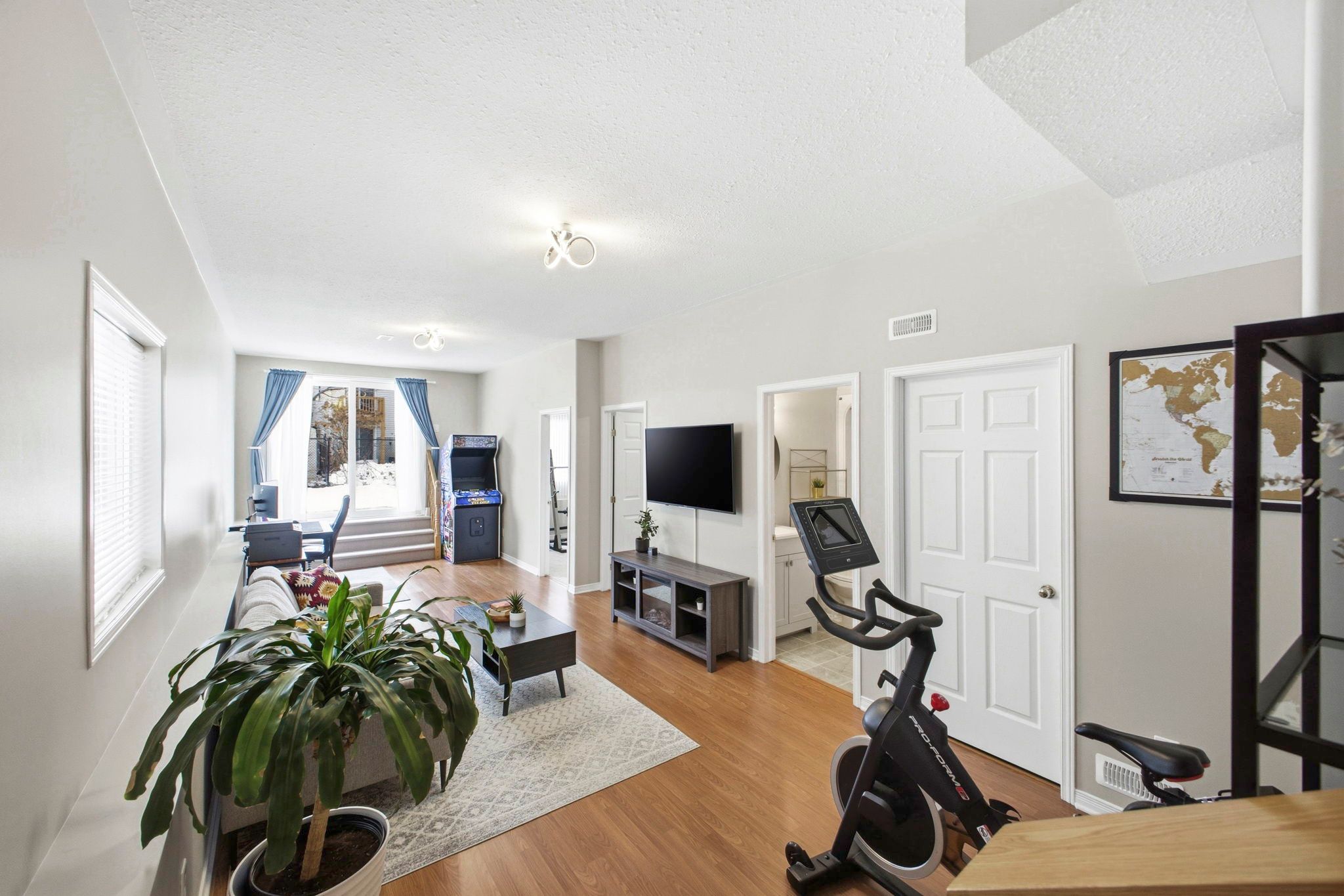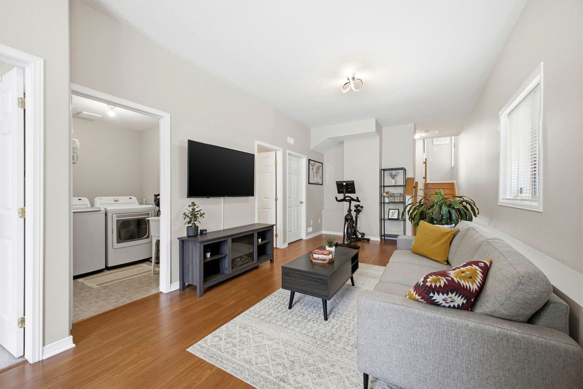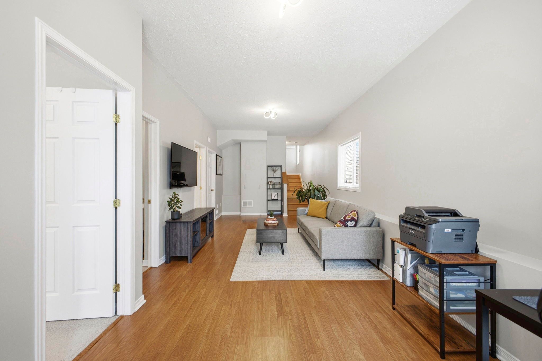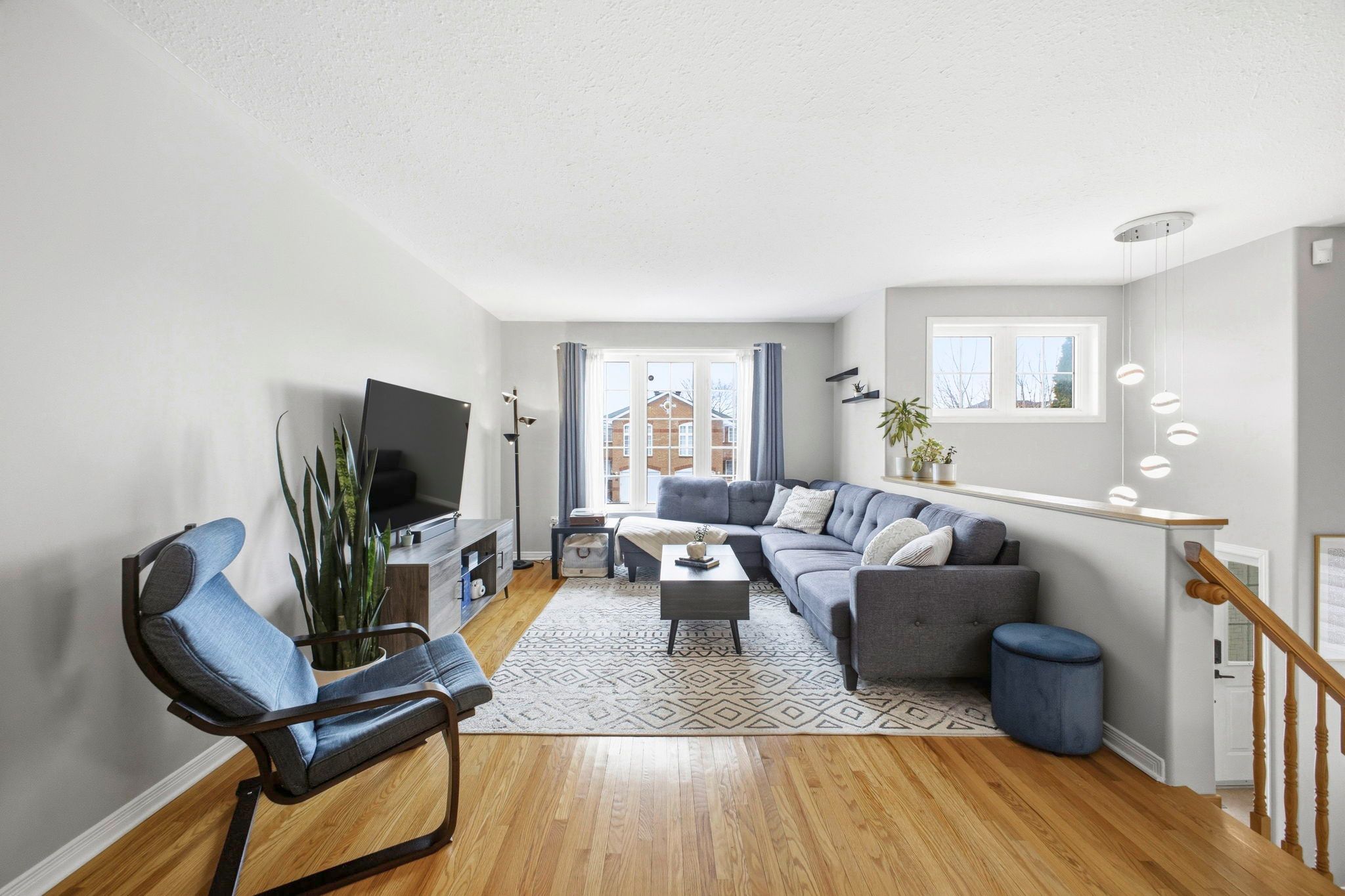 • Open-concept living and dining area with hardwood floors.