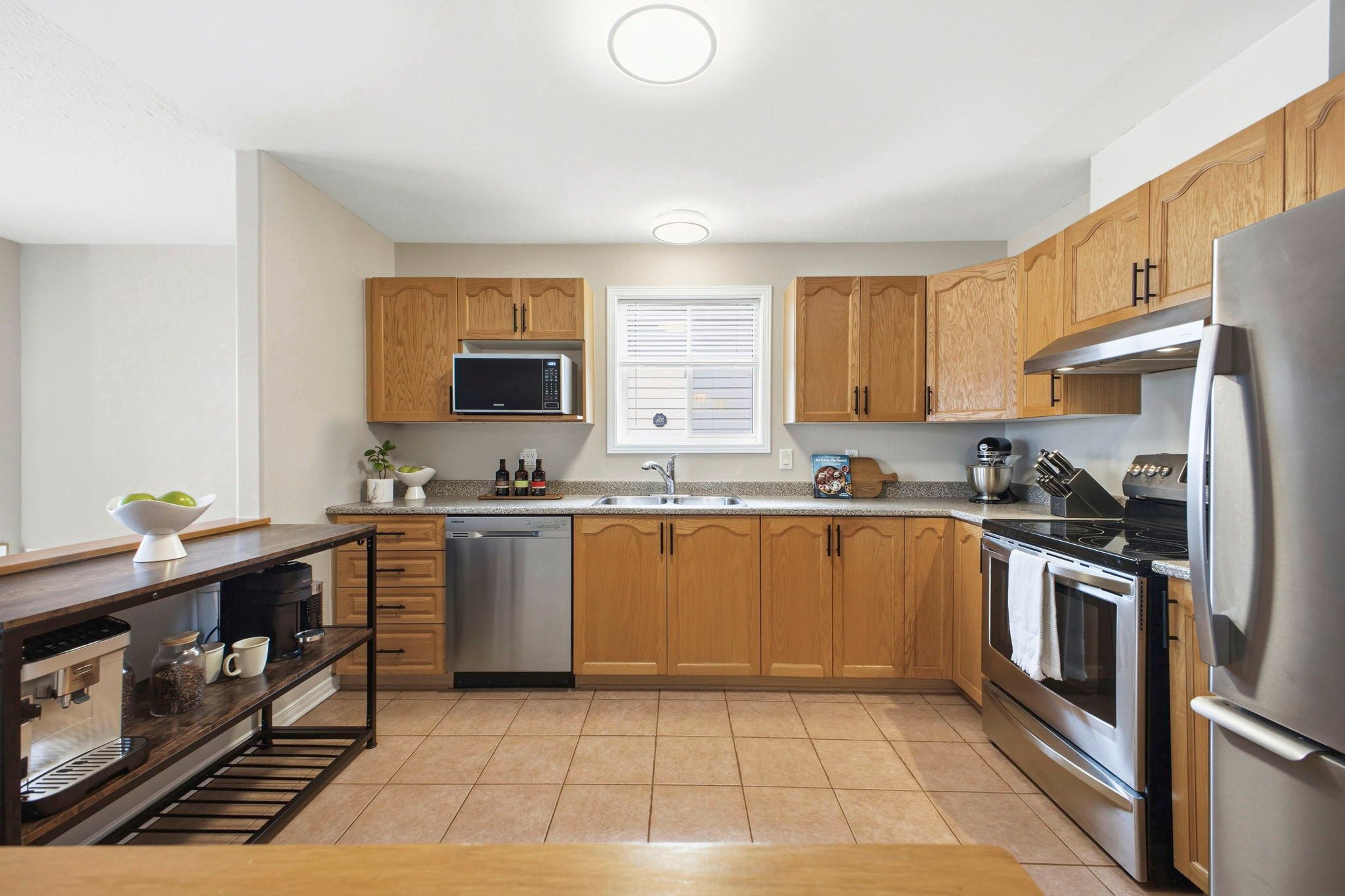 • Spacious kitchen with plenty of cupboard and counter space.