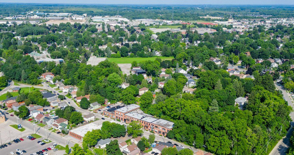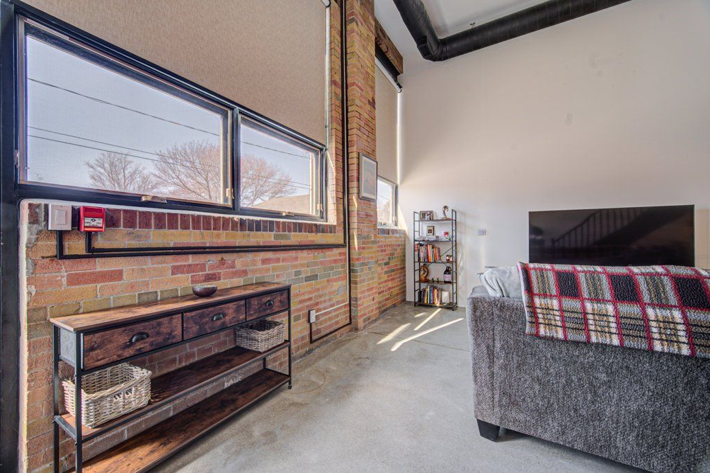 Spruce street lofts presents a unique opportunity to own a piece of galt's industrial history. This 1,691 sq. Ft. Updated warehouse conversion strikes a bold balance between raw materials and polished finishes, featuring striking cement floors and original brickwork under towering ceilings. The expansive open-concept layout is a centerpiece of modern function, seamlessly connecting a gourmet kitchen-boasting premium quartz countertops, modern painted cabinetry, stainless steel appliances, and an oversized island-to the sun-filled dining and lounge areas. This airy flow is perfect for entertaining, with wall-to-wall windows framing the urban landscape. Privacy remains paramount, with the building nestled in a quiet residential pocket bordering a park, yet located only minutes from the city's premier arts, dining, and yoga studios. High-end updates abound, from the designer lighting throughout to the spa-inspired bathroom with its deep soaker tub. Featuring secure underground parking and a rare private back patio, this loft offers the scale of a house with the effortless lifestyle of downtown condo living.