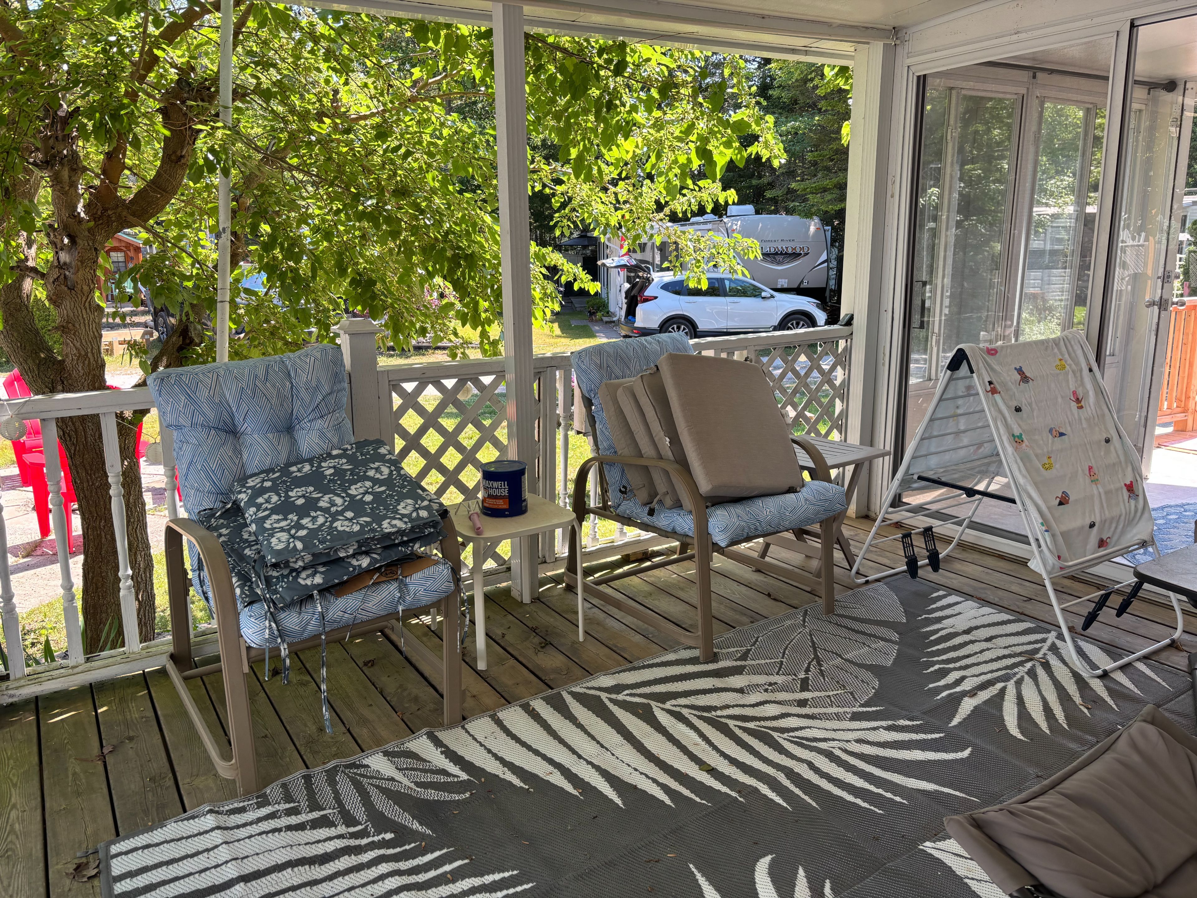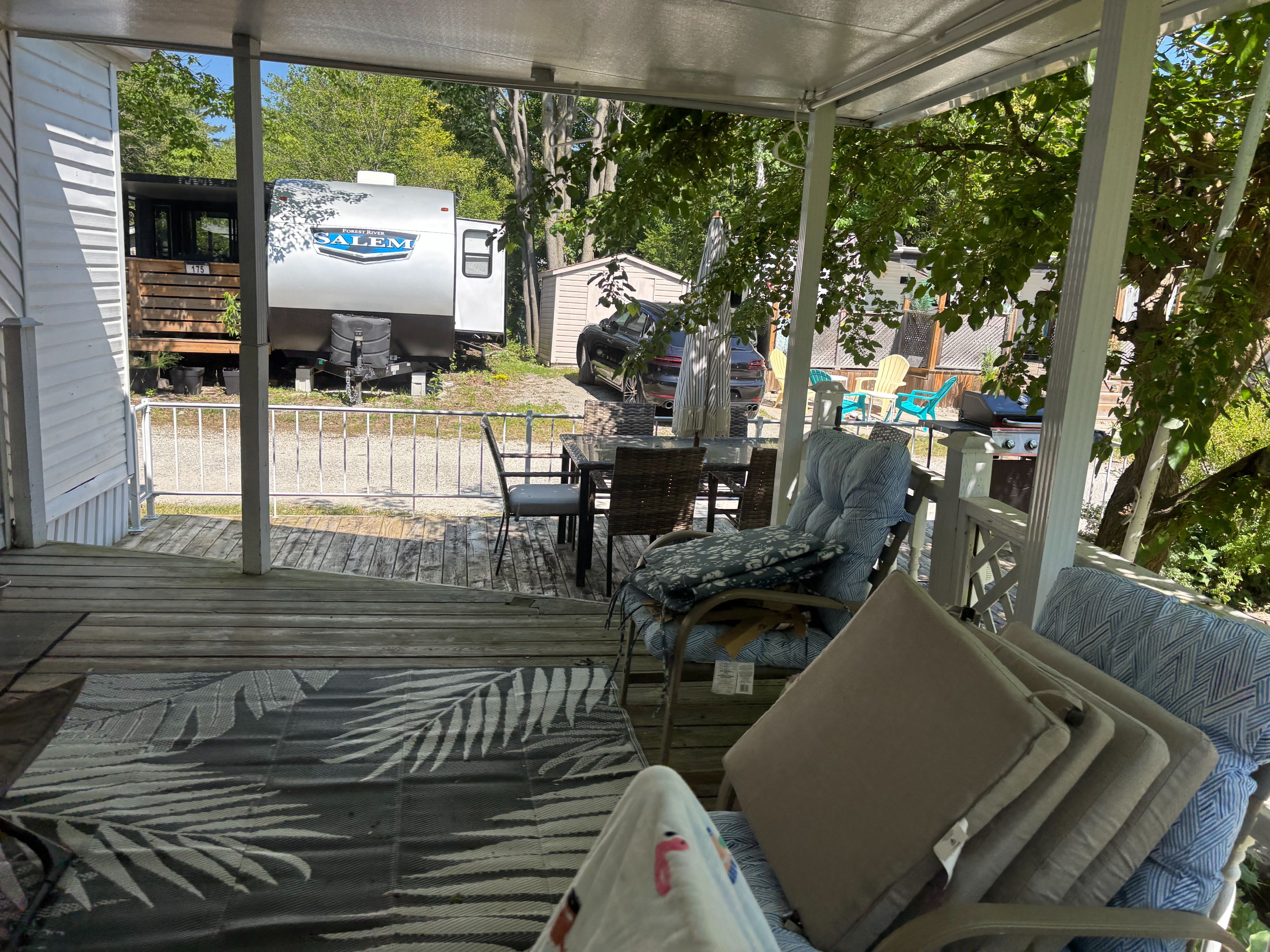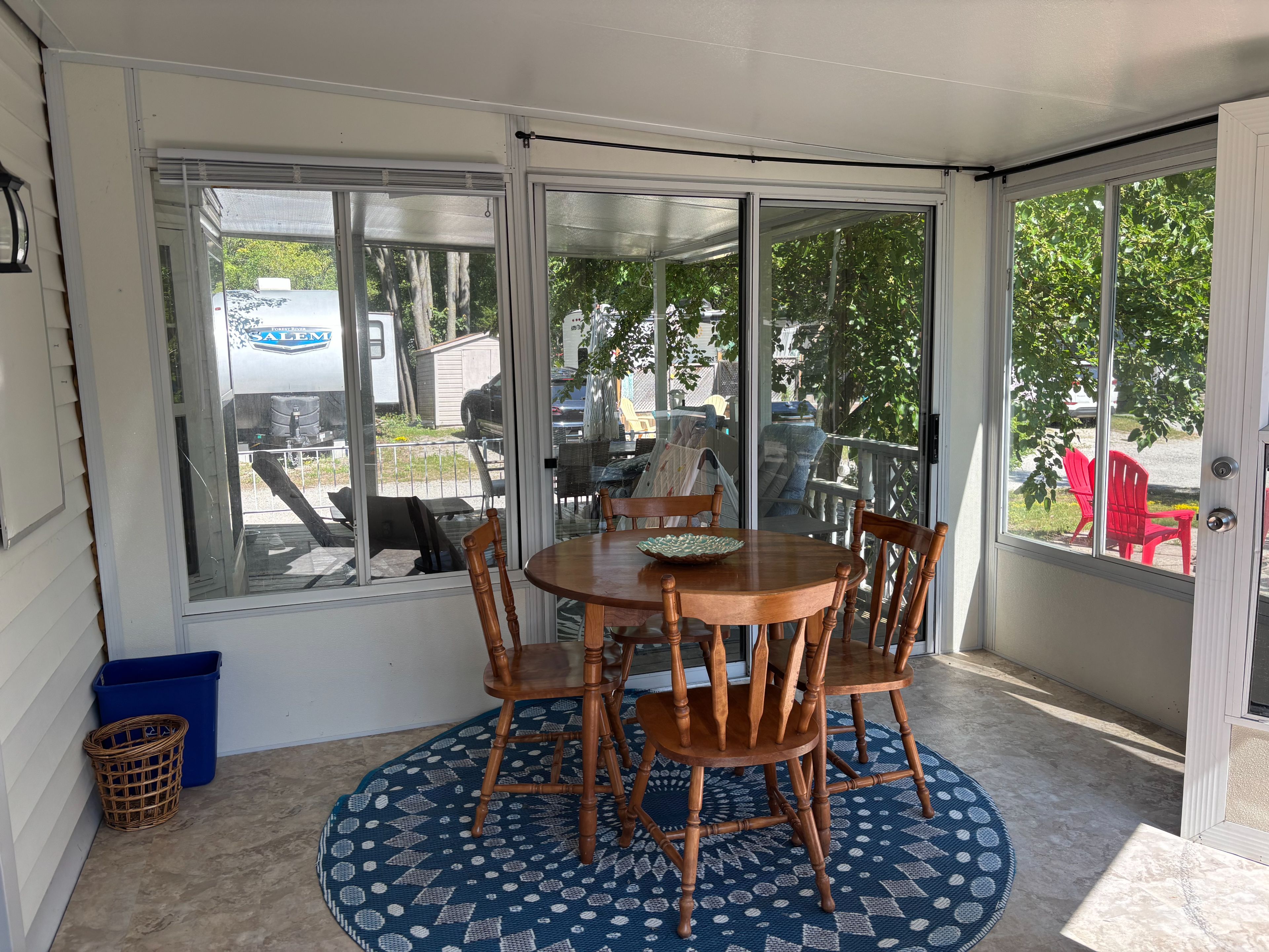 Seasonal retreat in popular countrylife resort. (7 months may 1st-nov 15th). Completely renovated baycastle model features a 8x10 plus foot sunroom and is situated on a centrally located lot very close to the sandy shores of georgian bay. Parking for two cars onsite plenty of visitor parking close by. 2 bedroom 1 bathrooms. Low maintenance exterior. Landscaped yard with expansive decks and corner lot. This cottage is ready for your family to start enjoying the summer! Resort features pools, splash pad, clubhouse, tennis court, play grounds, pickle ball, mini golf and short walk to the beach. Gated resort w/security. This unit has been very well maintained and is a pleasure to show! Seasonal site fees for 2026 are $6,090 plus hst