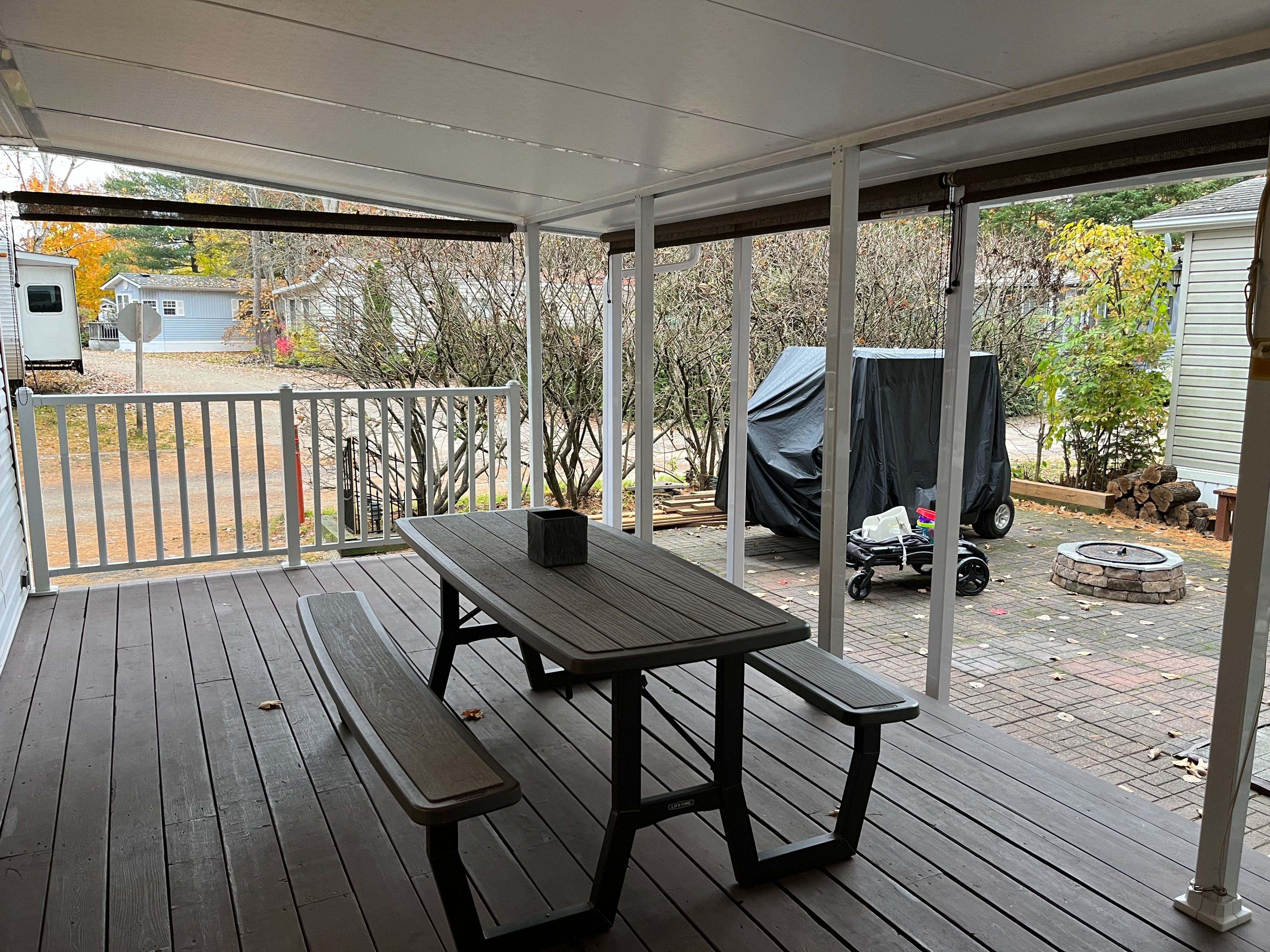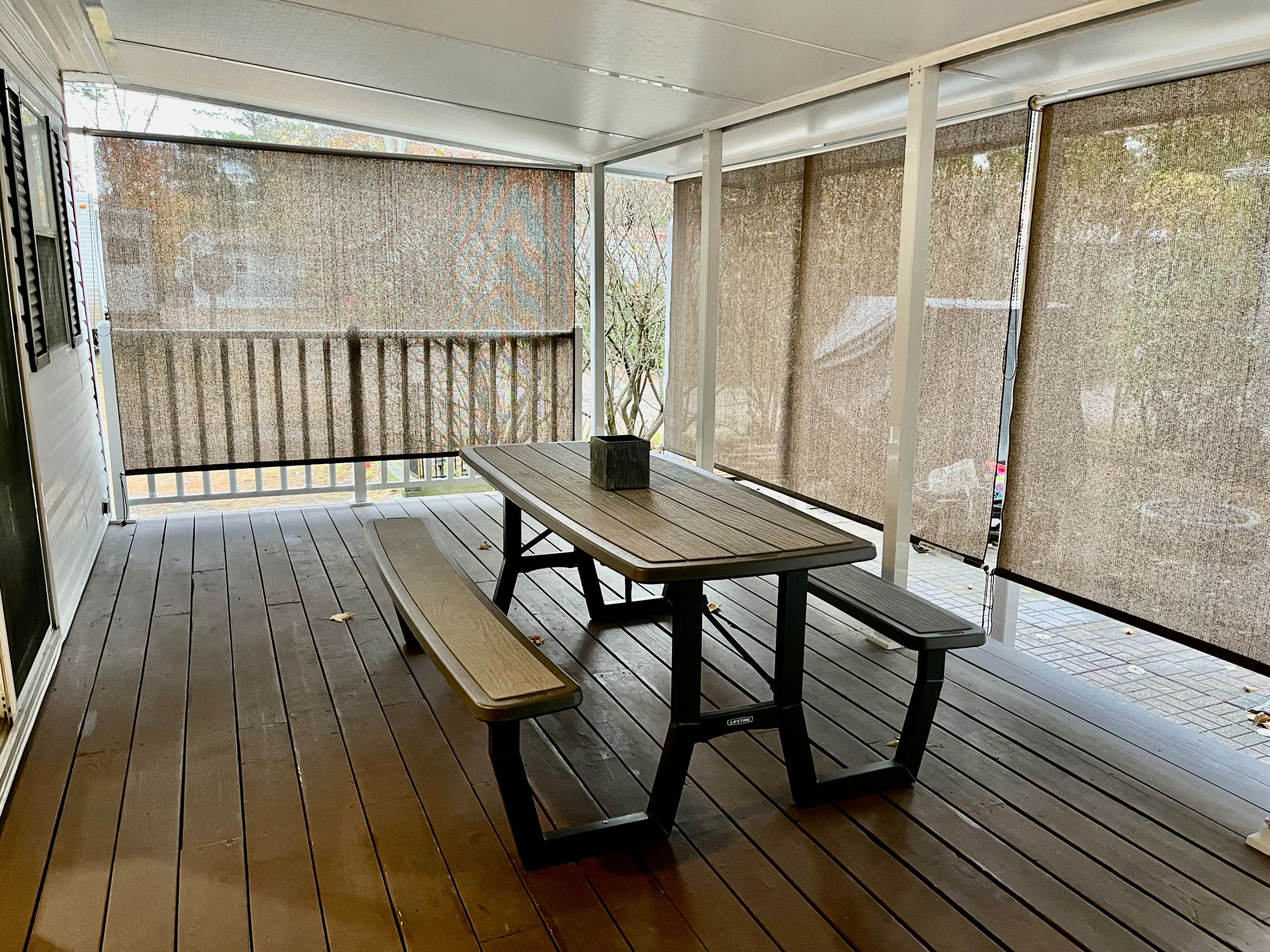 • Private covered deck with shades for enjoying tranquil surroundings.