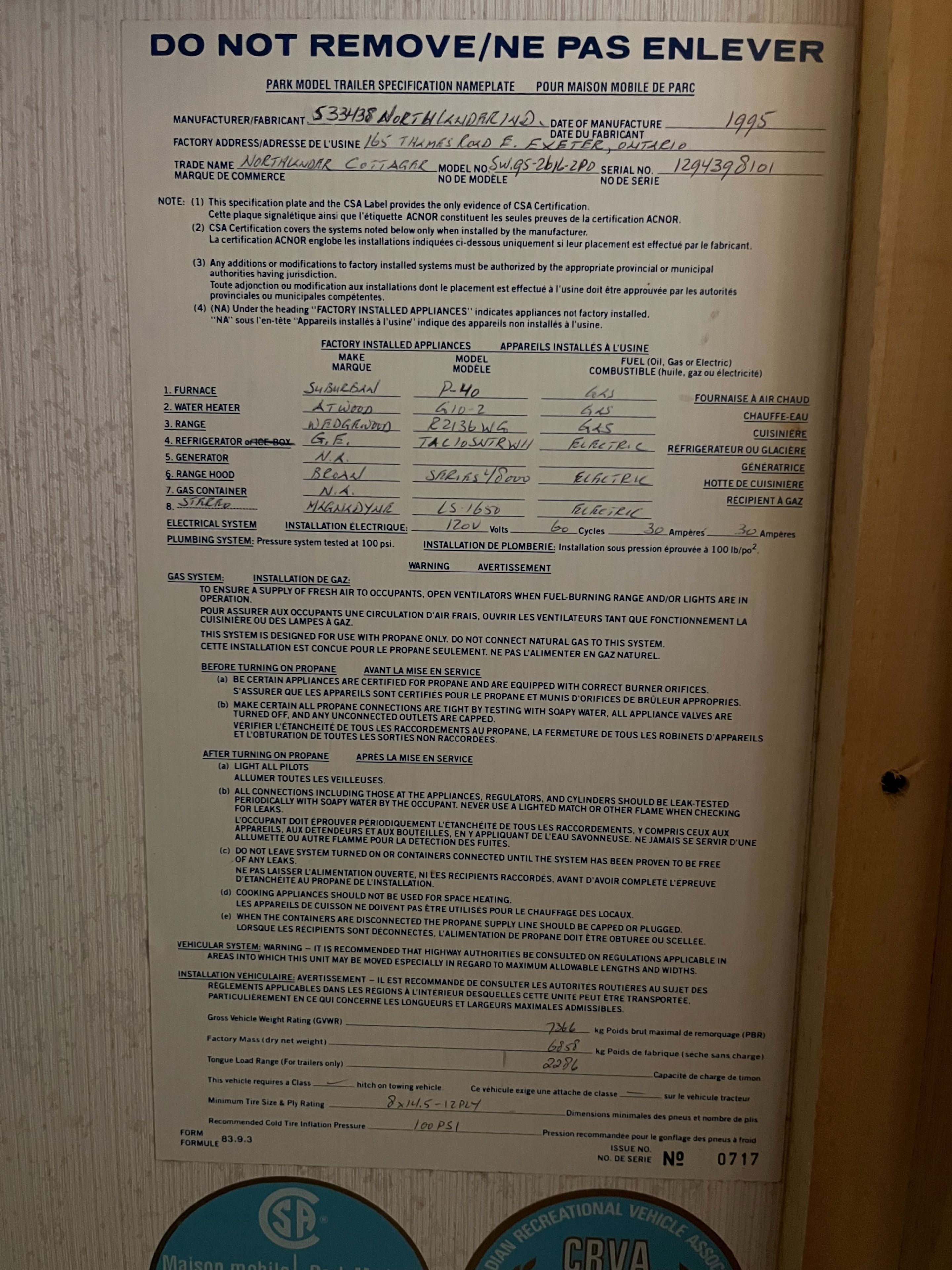 Subtype MobileTrailerIndoor Features NoneOwnership FreeholdViews Trees/WoodsBasement NoneFoundation PiersHeating / Cooling Forced AirHeating Fuel PropaneSewer Sewer