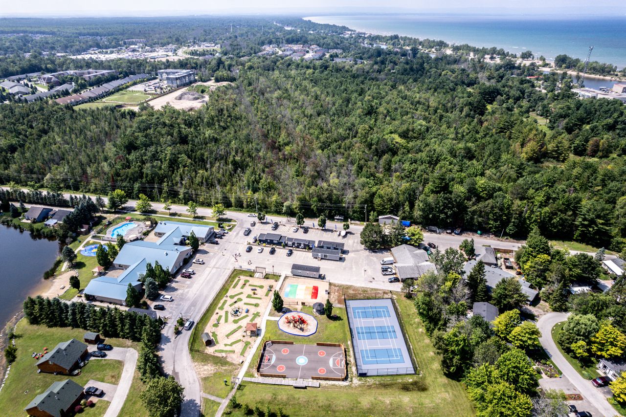 Enjoy breathtaking forest views and a short walk to the beach from this stunning seasonal retreat in the highly sought-after countrylife resort! Available for 7 months (april 28 november 15), this like-new 2023 northlander offers a perfect blend of comfort and convenience. Step onto the spacious full deck, complete with a gazebo, projector, and screen ideal for outdoor movie nights. This prime location provides plenty of space, parking for two cars, and easy access to the rec centre, pools, and resort amenities. The beautifully landscaped, low-maintenance yard sits centrally located in the resort with views of the forest, creating a peaceful setting for relaxation. Inside, you will find a bright and airy 2-bedroom, 1-bathroom layout with ample space for family and friends. The primary bedroom features a cozy queen-size bed, while the fully furnished interior boasts central a/c and a well-insulated design for comfort throughout the season. Additional perks include a durable, low-maintenance exterior and a generous storage shed. Countrylife resort offers an array of top-tier amenities, including pools, a splash pad, a clubhouse, a tennis court, playgrounds, mini golf, and private walking paths leading directly to the beach. This gated community ensures security and peace of mind. Well-maintained and move-in ready, this retreat is an absolute pleasure to show! 2025 seasonal site fees are $6,420 + hst, covering access to all amenities, gated car entry, and exclusive beach access path . Don't miss your chance to own this incredible getaway!