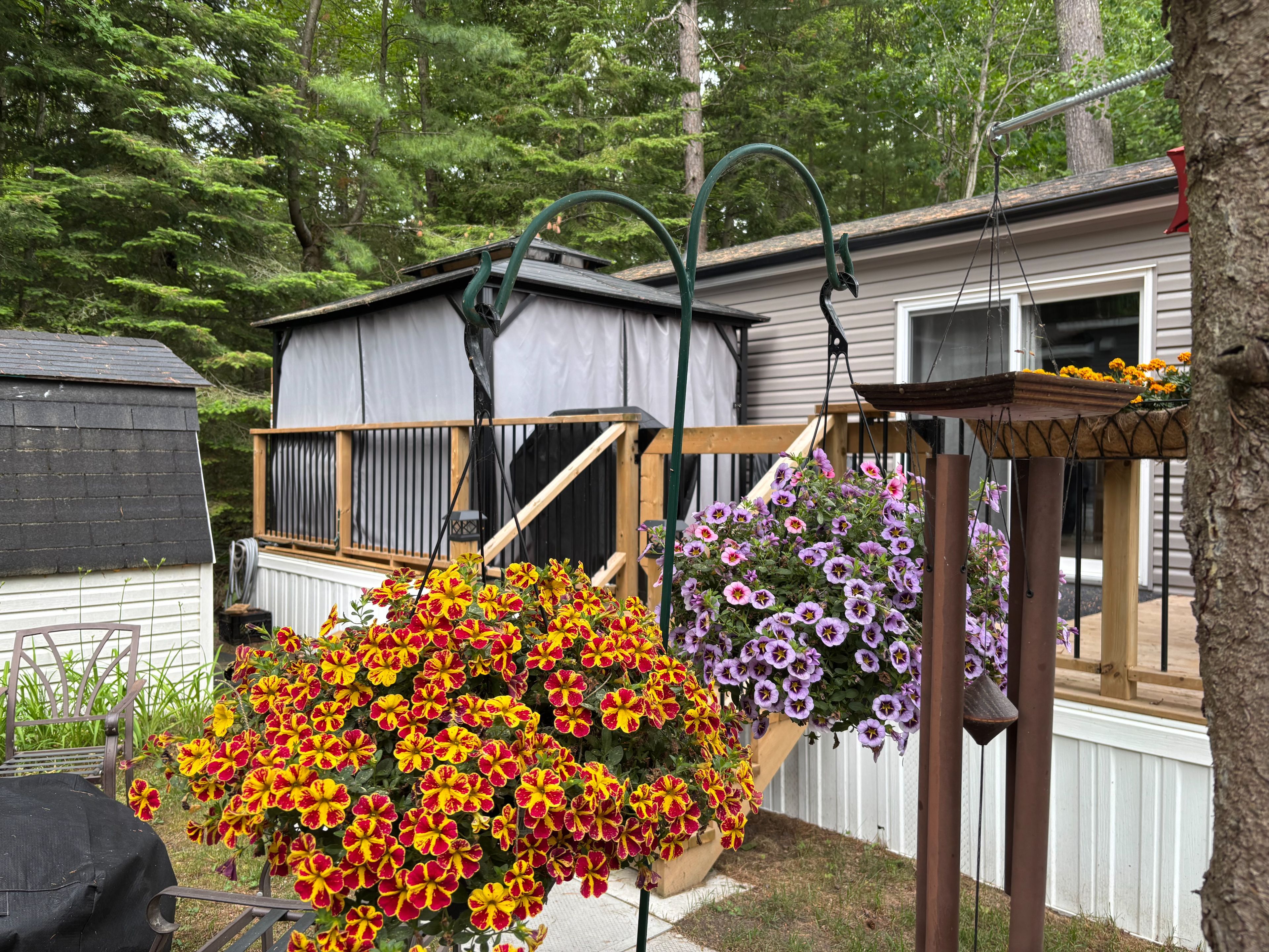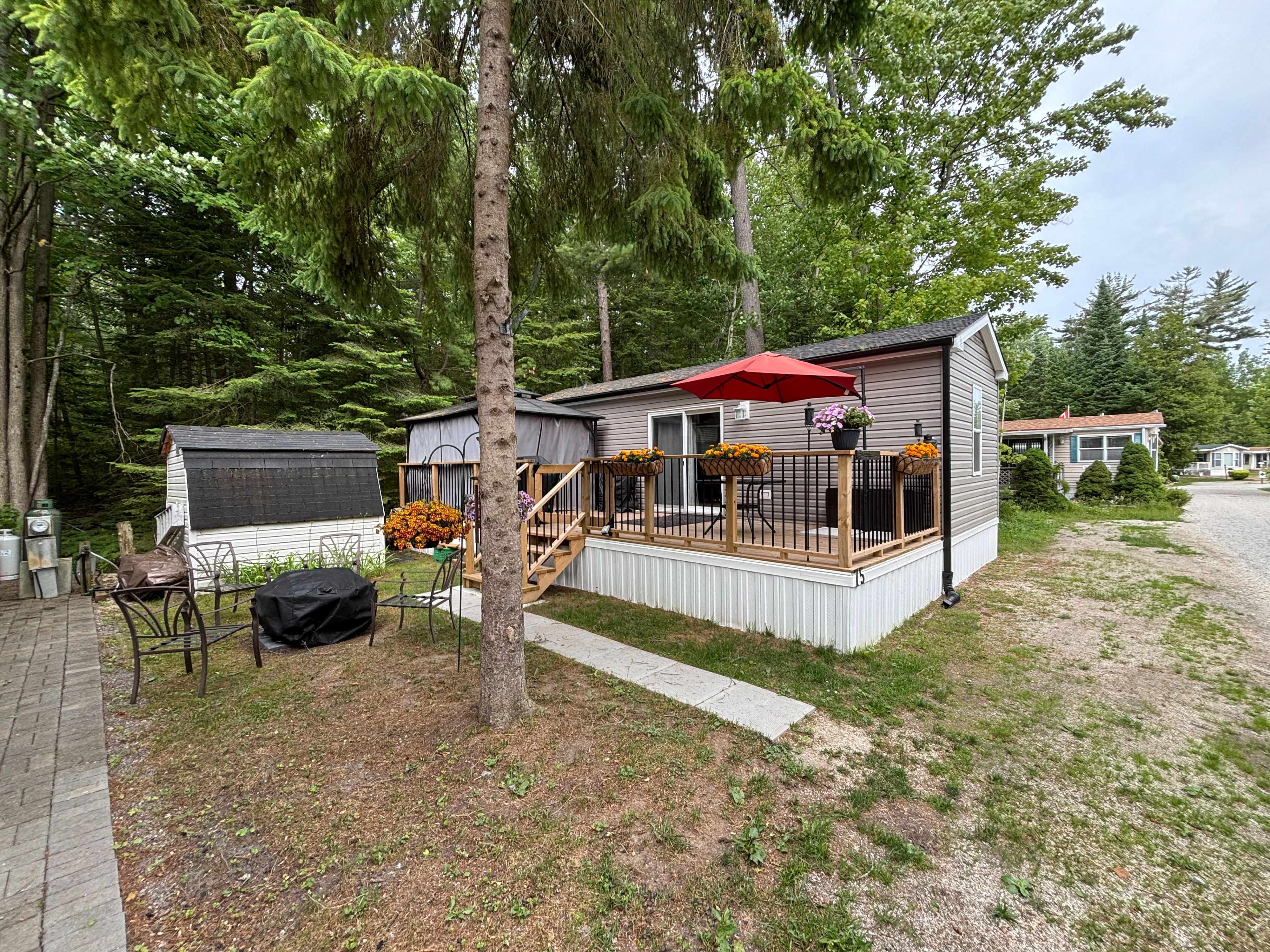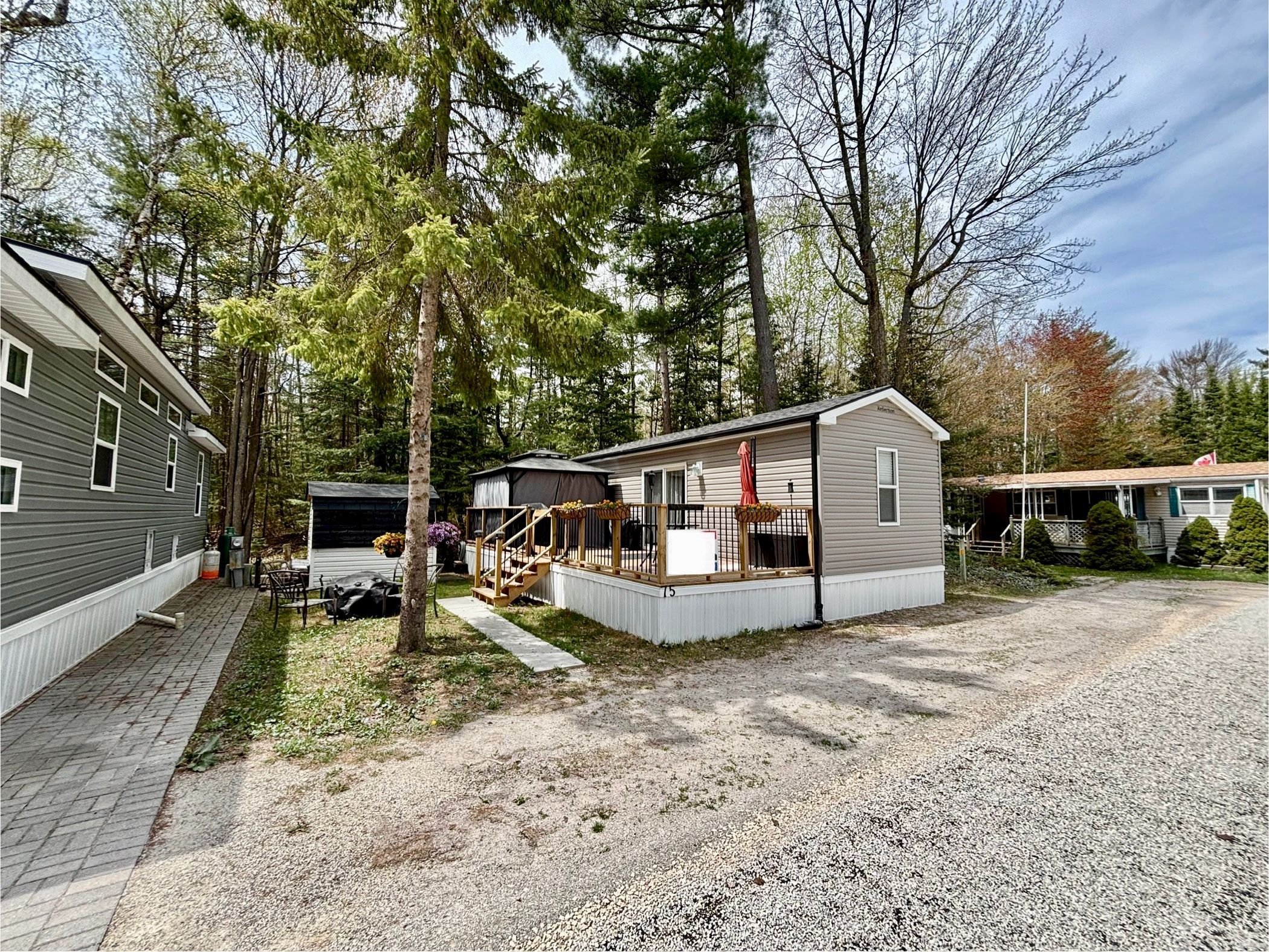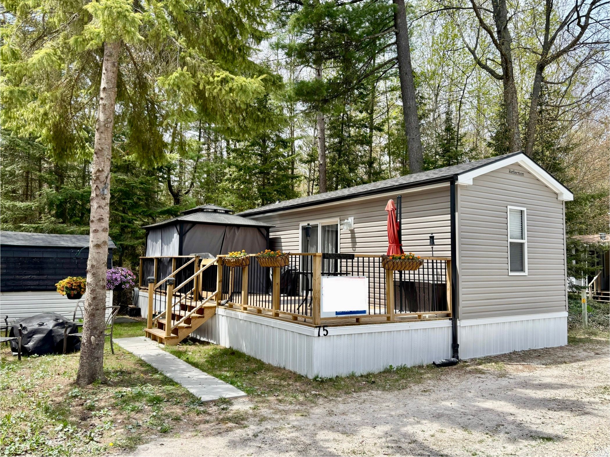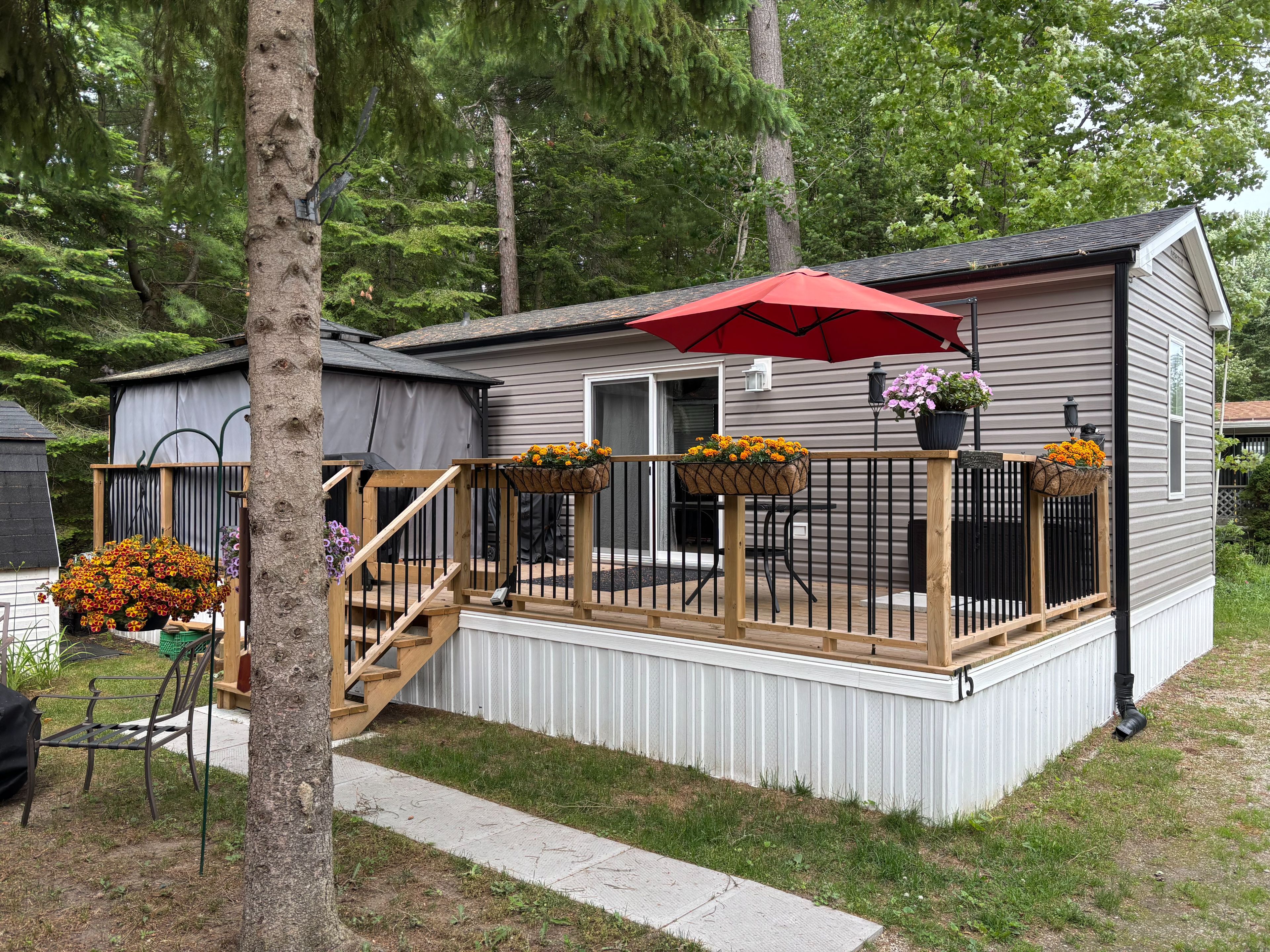 Enjoy breathtaking forest views and a short walk to the beach from this stunning seasonal retreat in the highly sought-after countrylife resort! Available for 7 months (may 1st- november 15), this like-new 2023 northlander offers a perfect blend of comfort and convenience. Step onto the spacious full deck, complete with a gazebo, projector, and screen ideal for outdoor movie nights. This prime location provides plenty of space, parking for two cars, and easy access to the rec centre, pools, and resort amenities. The beautifully landscaped, low-maintenance yard sits centrally located in the resort with views of the forest, creating a peaceful setting for relaxation. Inside, you will find a bright and airy 2-bedroom, 1-bathroom layout with ample space for family and friends. The primary bedroom features a cozy queen-size bed, while the fully furnished interior boasts central a/c and a well-insulated design for comfort throughout the season. Additional perks include a durable, low-maintenance exterior and a generous storage shed. Countrylife resort offers an array of top-tier amenities, including pools, a splash pad, a clubhouse, a tennis court, pickle ball, playgrounds, mini golf, and private walking paths leading directly to the beach. This gated community ensures security and peace of mind. Well-maintained and move-in ready, this retreat is an absolute pleasure to show! 2026 seasonal site fees are $6,916 + hst, covering access to all amenities, gated car entry, and exclusive beach access path . Don't miss your chance to own this incredible getaway!