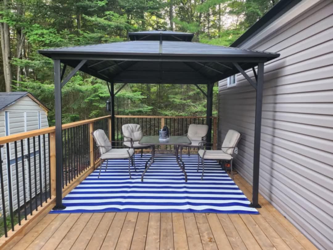 • Spacious full deck with gazebo, perfect for outdoor movie nights.