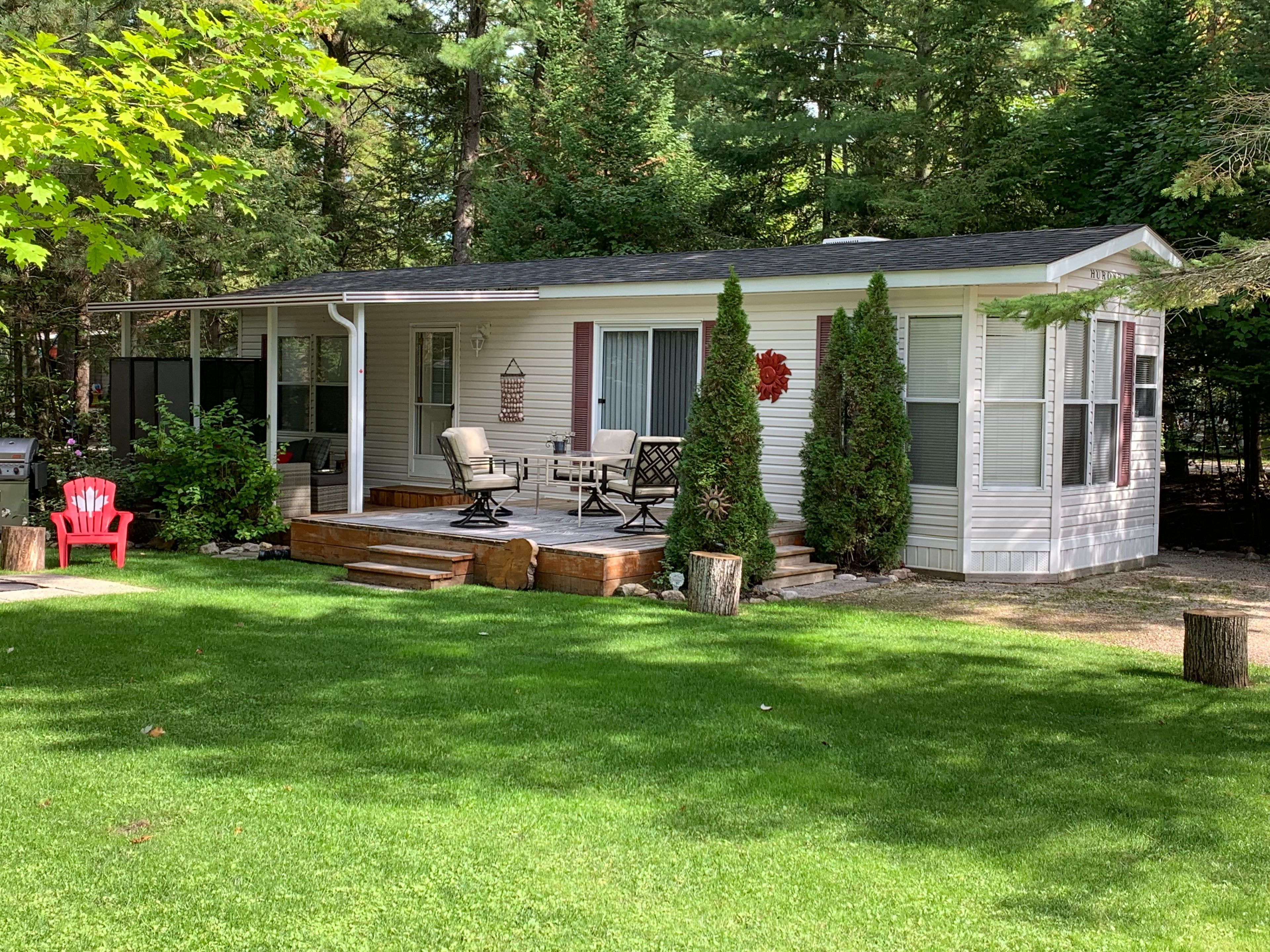 Nestled in a secluded haven within the beloved countrylife resort, this huron ridge resort cottage (2001) invites you into a world where summer dreams unfold effortlessly. Open for seven blissful months (april 25th-november 16th), this 2-bedroom, front-kitchen retreat gleams brighter than the day it first rolled off the factory floor. Step outside and discover a outdoor sanctuary 15x10 ft. Hard-roofed haven and an expansive 317 sq. Ft. Deck designed for long afternoons of laughter and twilight gatherings under the stars. Perched on one of the most coveted lots, this gem is just a short, carefree stroll to the sandy shoreline. With parking for two cars and ample space for a golf cart and bicycles, convenience is at your fingertips. The low-maintenance exterior, complemented by a new roof (2019), ensures worry-free relaxation. Mostly furnished and impeccably maintained, this cottage is ready for your family to create endless summer memories. Beyond your private escape, the gated resort offers a storybook of amenities, 5 sparkling pools, a splash pad, a vibrant clubhouse, tennis courts, playgrounds, mini-golf, and of course, private gated beach access. The 2026 seasonal site fees are $6,090. 00 + hst, covering the use of all amenities and secure access by both car and beach entrance. A true pleasure to show, this magical retreat awaits its next chapter, will it be yours?