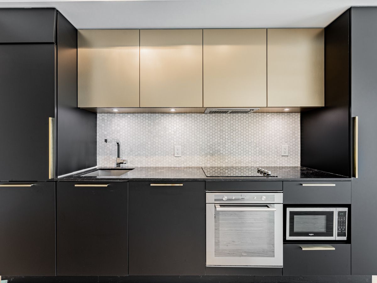 • Modern kitchen with luxurious built-in appliances and granite counters.