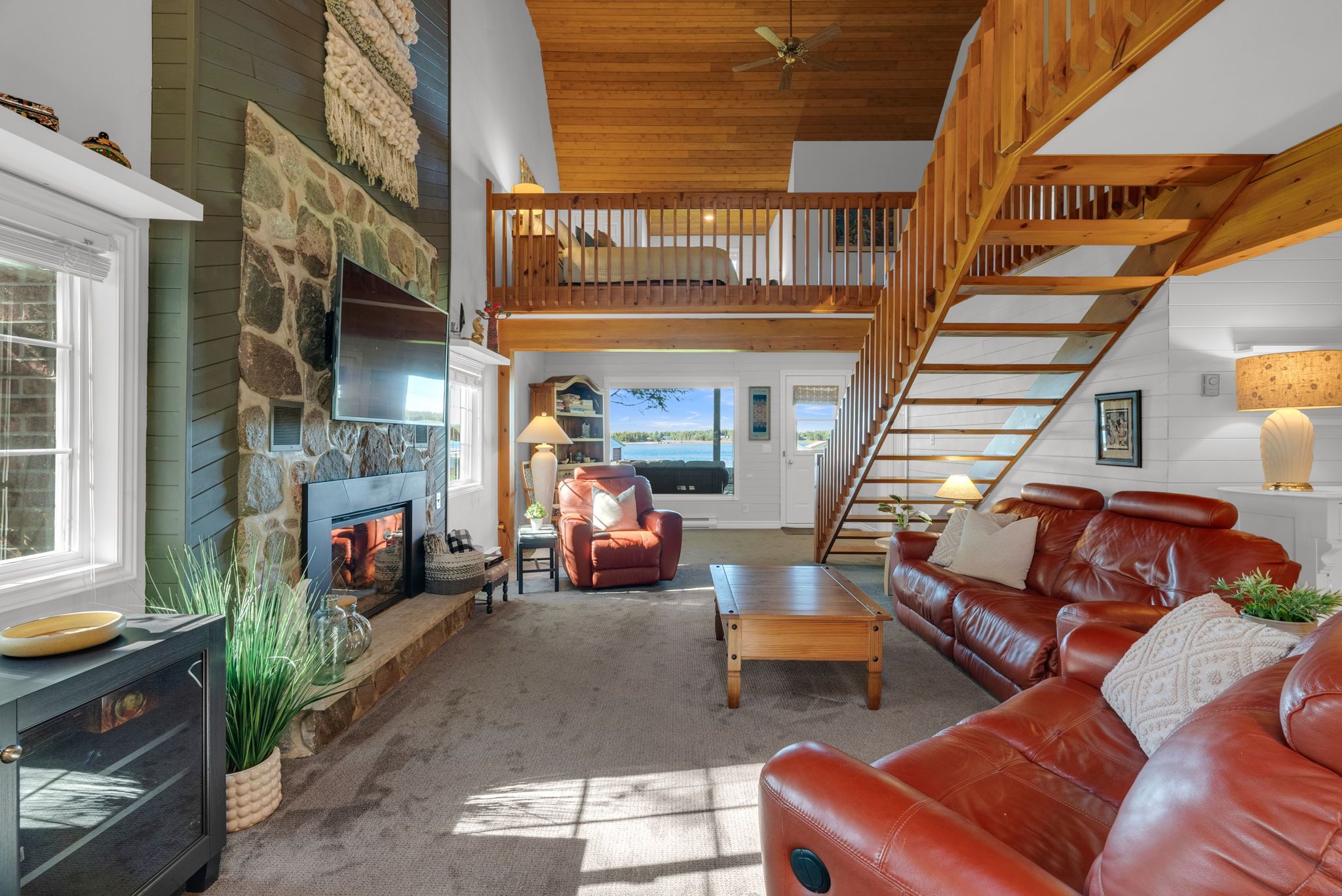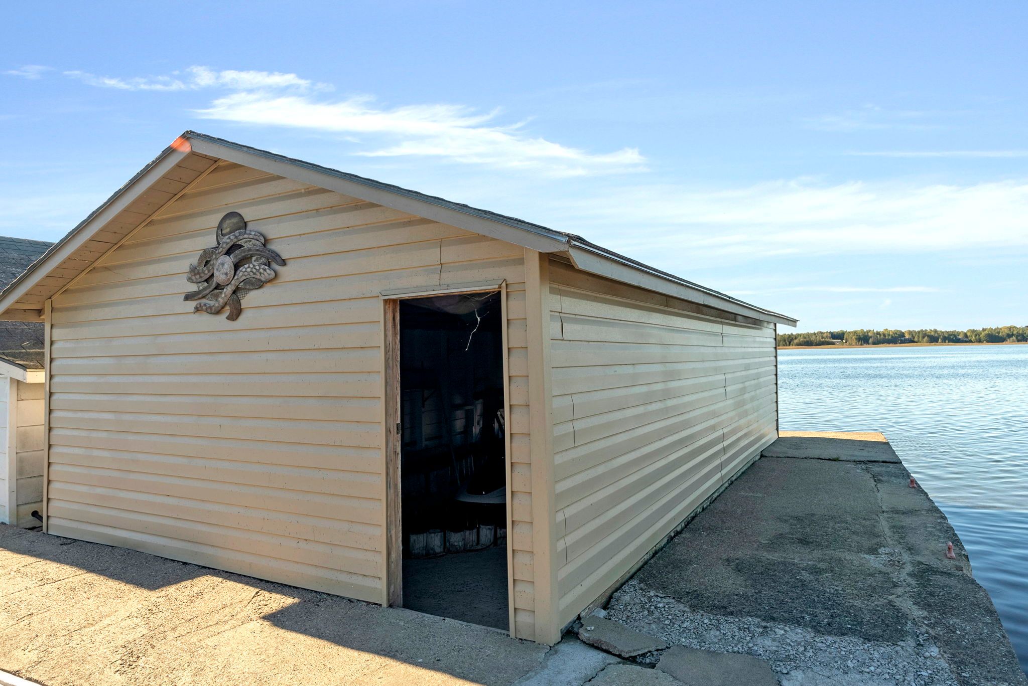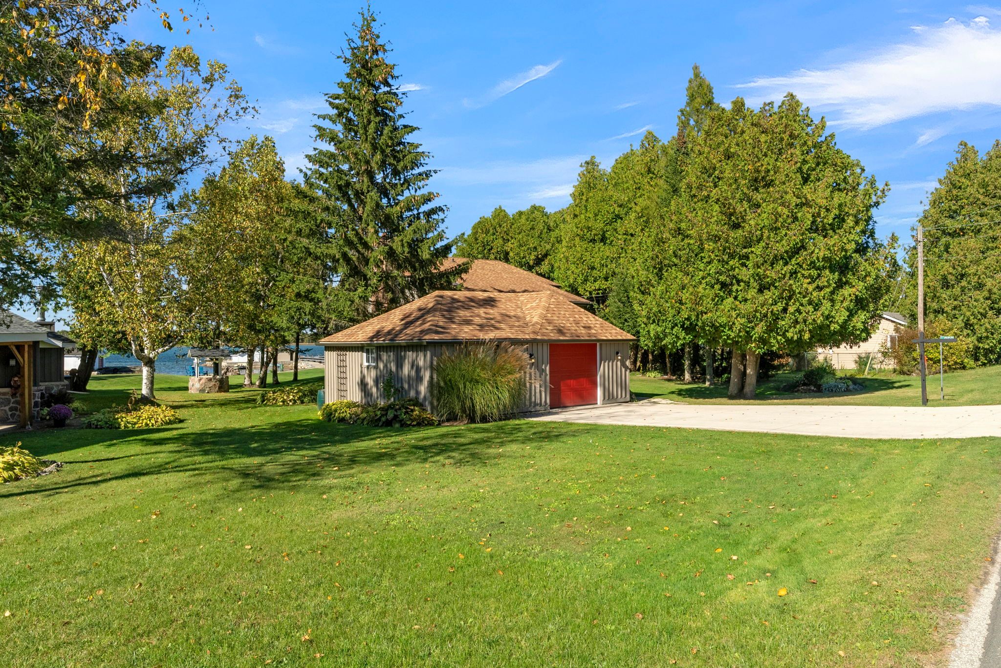 Escape to a charming waterfront property nestled on the serene shores of lake huron. This meticulously maintained home boasts 3 spacious bedrooms plus the loft bedroom, along with 2 beautifully appointed bathrooms. The cabinetry and built-in features throughout the home are equipped with soft close functionality for added convenience. Step outside to your private oasis featuring a cozy fire pit area, perfect for gathering with loved ones on cool evenings. Sit back and savor the seasonal beauty of swans gracefully gliding in the bay, right from your own backyard. Your boathouse includes a power lift for easy boat storage and access. Create lasting summer memories from your personal dock; slide down your water slide into the refreshing waters of lake huron. Rain or shine, the large wrap-around covered deck offers a peaceful outdoor retreat, spring, summer, fall to relax and unwind. Take your culinary skills outdoors with the convenience of a direct propane hookup for barbecuing on the deck, making outdoor cooking a breeze. A picnic table offers a picturesque spot for al fresco dining or simply soaking in the tranquil surroundings. The property's cement driveway provides ample parking for up to 4 cars in addition to a single-car garage that doubles as a workshop space. Indulge in a lifestyle of relaxation and adventure at this idyllic waterfront retreat on lake huron. Experience the best of lakeside living with this enchanting property that offers both comfort and luxury in a stunning natural setting.