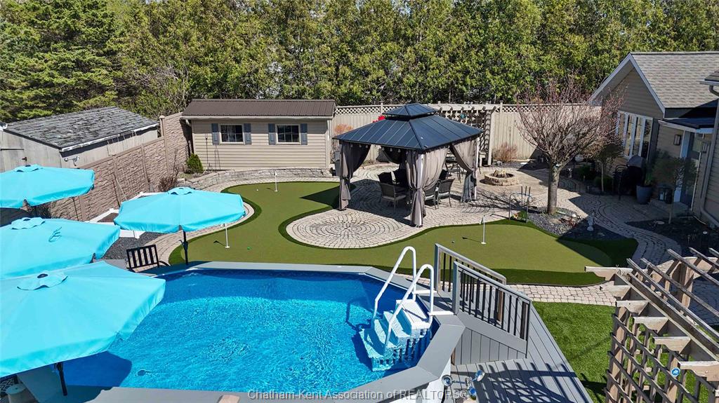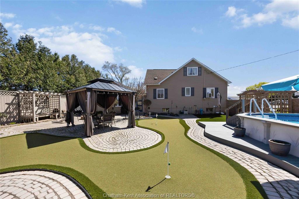 Welcome to this beautiful 1. 5-storey renovated home offering space, comfort, and versatility for the whole family! This impeccably maintained property features 4 bedrooms and 2 full bathrooms. The main floor offers 2 bedrooms, a 4pc bathroom, and multiple bright, spacious living areas featuring cozy fireplaces. Enjoy an updated kitchen with ample storage, a separate dining area, all thoughtfully laid out for everyday living. Upstairs features 2 more bedrooms and two large walk-in closets. Downstairs you'll find a finished basement that adds even more functional space with a large family room and a versatile area currently set up as a hairdressing studio—easily converted into a home office, hobby room, or additional living space to suit your needs and a beautiful renovated bathroom. Outside, you will find a large attached garage with plenty of room for vehicles, storage, or a workshop. Step into your one-of-a-kind backyard oasis featuring a heated on-ground pool, 3 hole mini putting green, and ample space for gatherings and outdoor activities. Beautiful landscaping enhances the charm and uniqueness of this exceptional outdoor setting. A fantastic opportunity to own a home that truly has it all—space, functionality, and lifestyle, this property is a must see!
