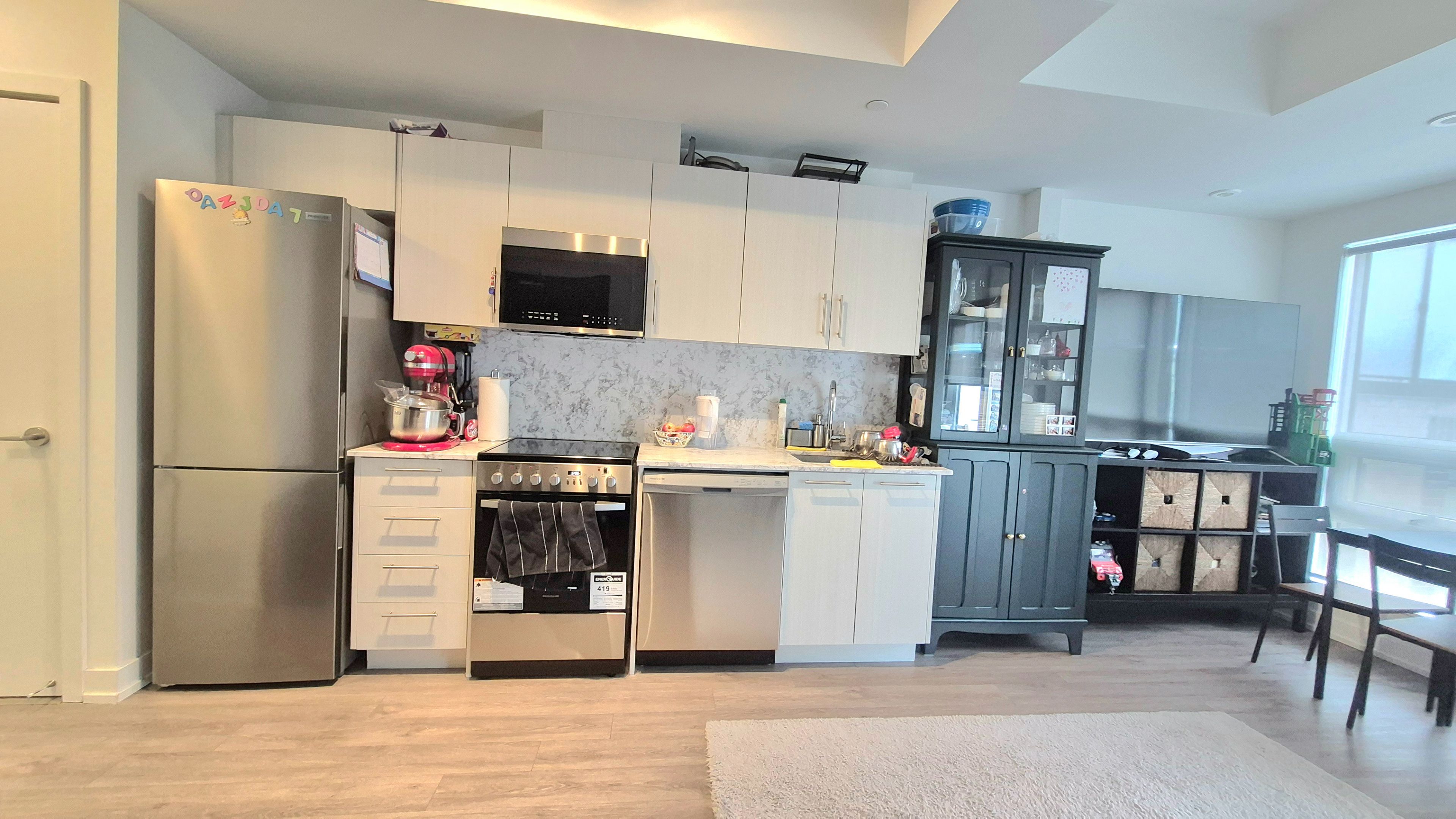 • Bright unit with open concept living and high ceilings for spacious feel.