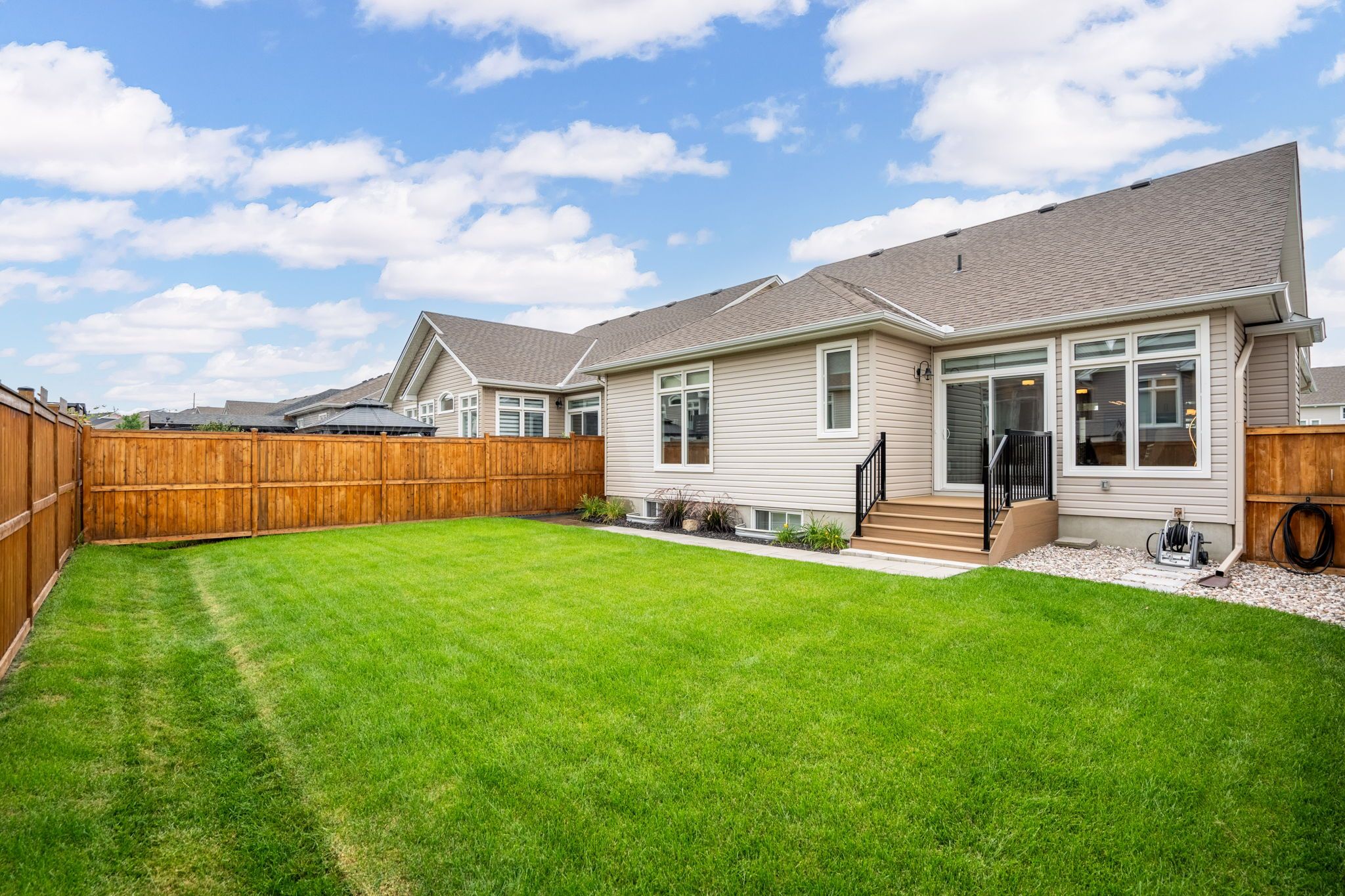 Enjoy serene, turn-key living in this impeccably maintained osprey bungalow-designed for those who value peace, quality, and thoughtful detail. One of only a handful of osprey models in this community to feature an expansive epoxy-finished covered veranda, it offers rare curb appeal and a welcoming space to relax outdoors. The approach is refined, with an interlock-trimmed driveway, meticulous landscaping, and grounds kept in pristine condition, complemented by an equally immaculate epoxy garage. Inside, a formal front dining room welcomes guests, while the open-concept kitchen-anchored by an oversized quartz-topped center island-creates a warm, elegant space for everyday living and entertaining. Both bedrooms are tucked into their own private wing, perfectly separated from the main living areas for comfort and privacy. The backyard is beautifully finished and graded, framed by a flawless cedar fence and highlighted by a remarkable 8x12 artisanal shed with high ceilings-built to exceptional standards. The rear steps have been expanded with a larger landing and composite materials, complete with elegant rails that enhance both safety and style while seamlessly matching the home's character. The finished lower level adds versatility with a full-sized bedroom, a third full bath, and an immaculate larger workshop/storage area. With no front neighbours, a peaceful street, and perfectly maintained systems, this home delivers true comfort, craftsmanship, and ease. Additionally, this home enjoys access to a modern community center, complete with spacious entertainment areas, well-equipped kitchens, and welcoming venues for large gatherings of family and friends.