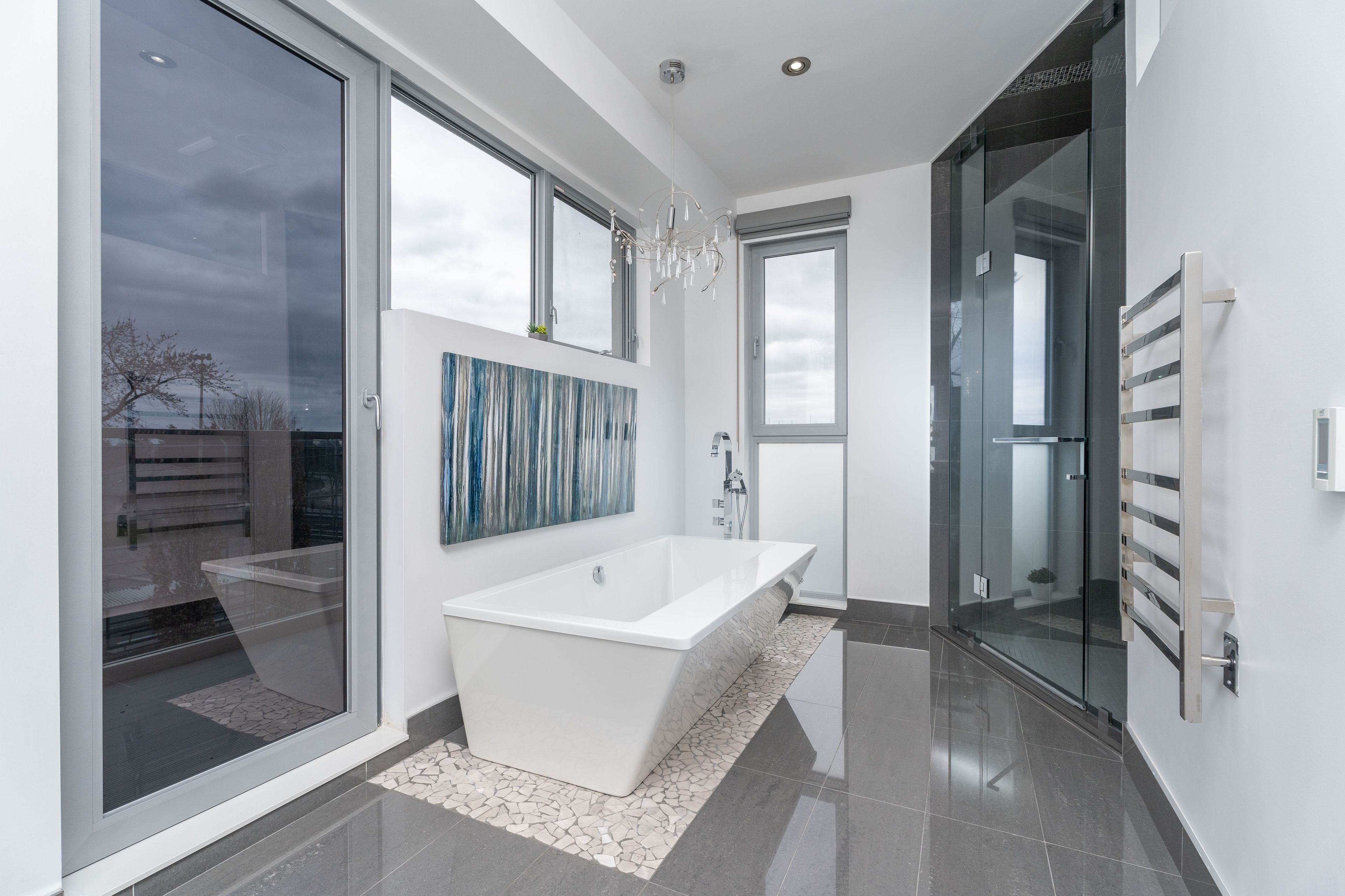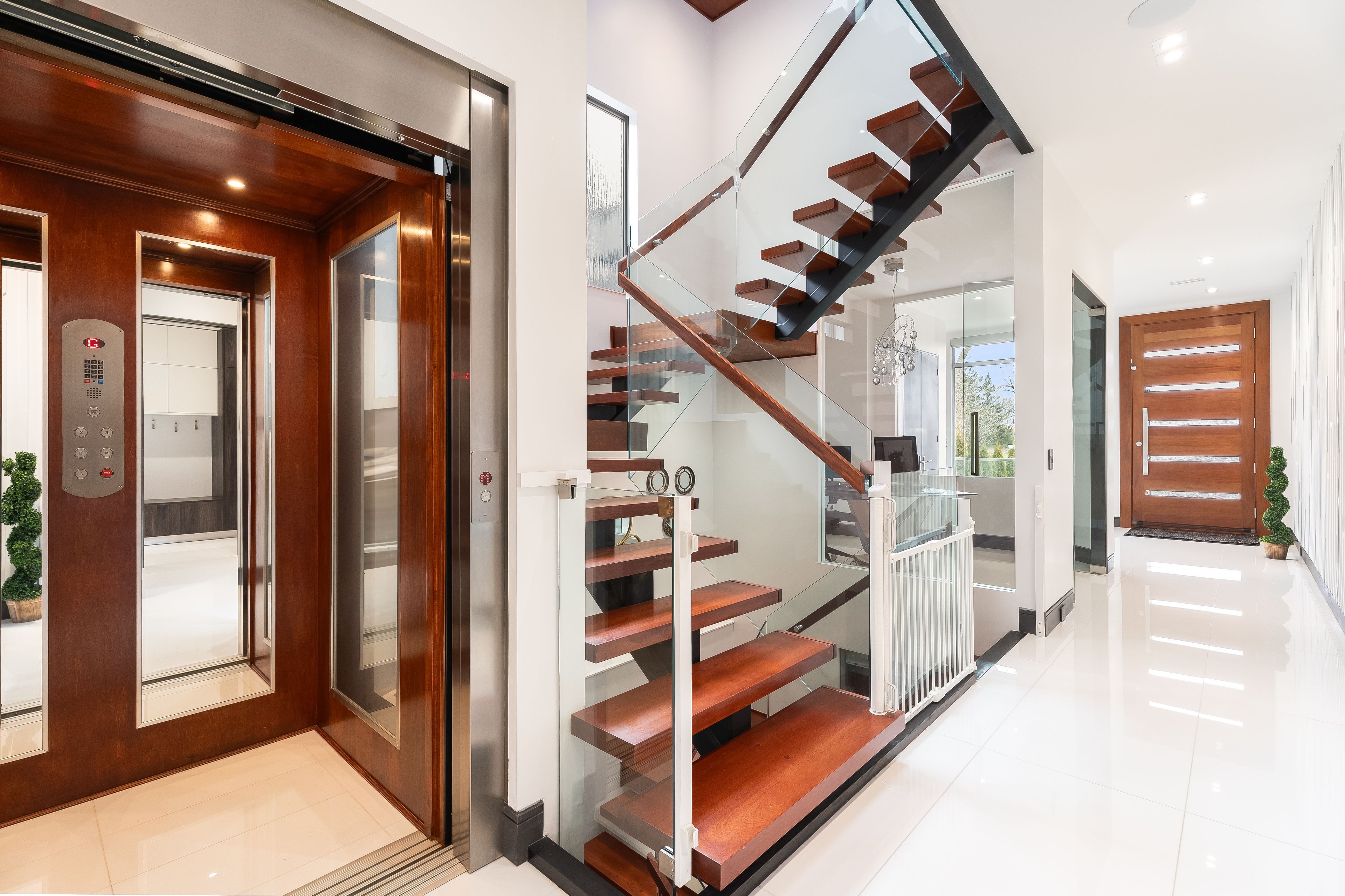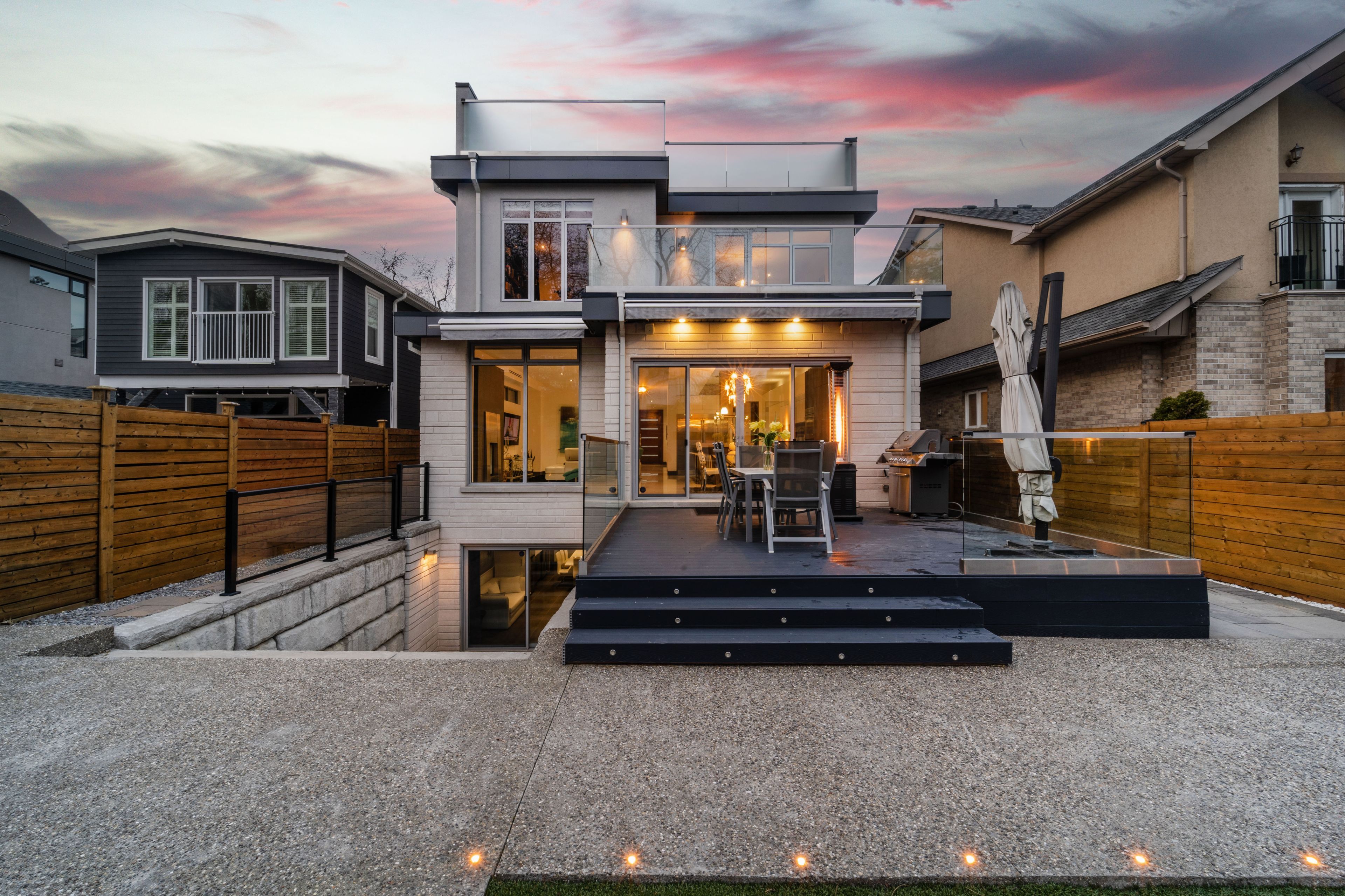 This spectacular, state-of-the-art contemporary designer home is located in the prestigious lakeview community. The residence features 5-bedrooms and 6-bathrooms, offering over 5,000 sf of luxury living, finished to the highest standards. The main floor showcases white porcelain flooring and 10-foot ceilings throughout, complemented by a mahogany elevator with stainless steel doors and a striking mahogany floating staircase. The sun-drenched living room features a napoleon tureen fireplace and overlooks the expansive backyard. The immaculate kitchen is equipped with high-end appliances, full-length custom italian cabinetry, quartz countertops, and a dramatic 14-foot centre island. Additional features include a built-in kitchenaid garburator, a built-in bar with automatic lighting, and a thermador coffee station. The second floor offers 4 generously sized bedrooms and 3 beautifully appointed bathrooms. The third floor is dedicated to the primary retreat, featuring a walk-in closet with custom built-in shelving and a five-piece ensuite with a freestanding tub, heated flooring, and heated towel racks. This level also provides walkout access to an approximately 600-square-foot deck wired for a hot tub, with hot and cold water rough-ins for a bar and speaker rough-ins. Designer décor is showcased throughout the home. Additional highlights include a car lift in the garage and a private, award-winning backyard featuring a 13' x 14' three-tier designer fountain. Aluminum decking has been installed on all four balconies with underlay cushioning. The home is further enhanced by newly replaced heating and cooling systems, including a lennox 135,000 btu furnace and a 60,000 btu, five-ton air conditioning system with a 4 zone management motherboard.