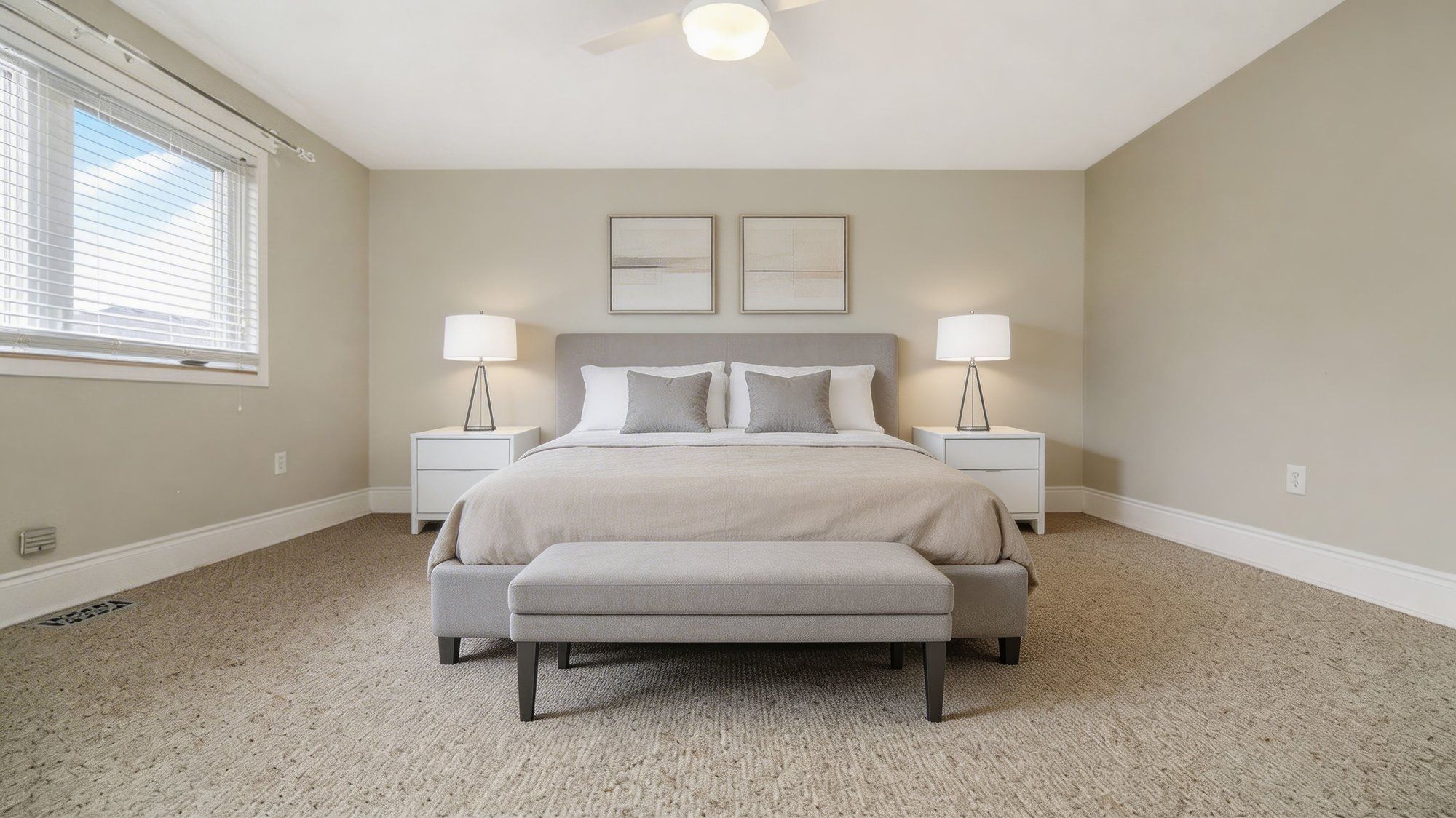• Large primary bedroom with walk-in closet and ensuite bathroom.