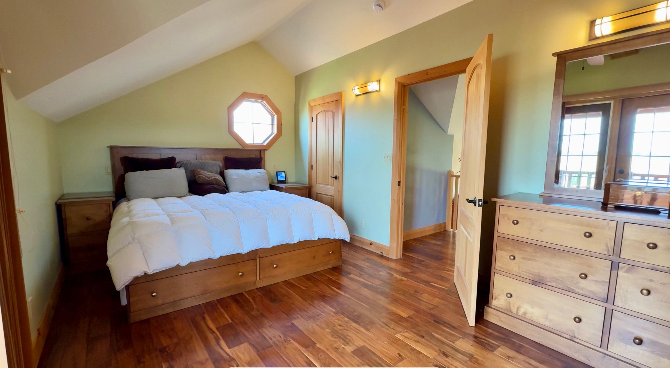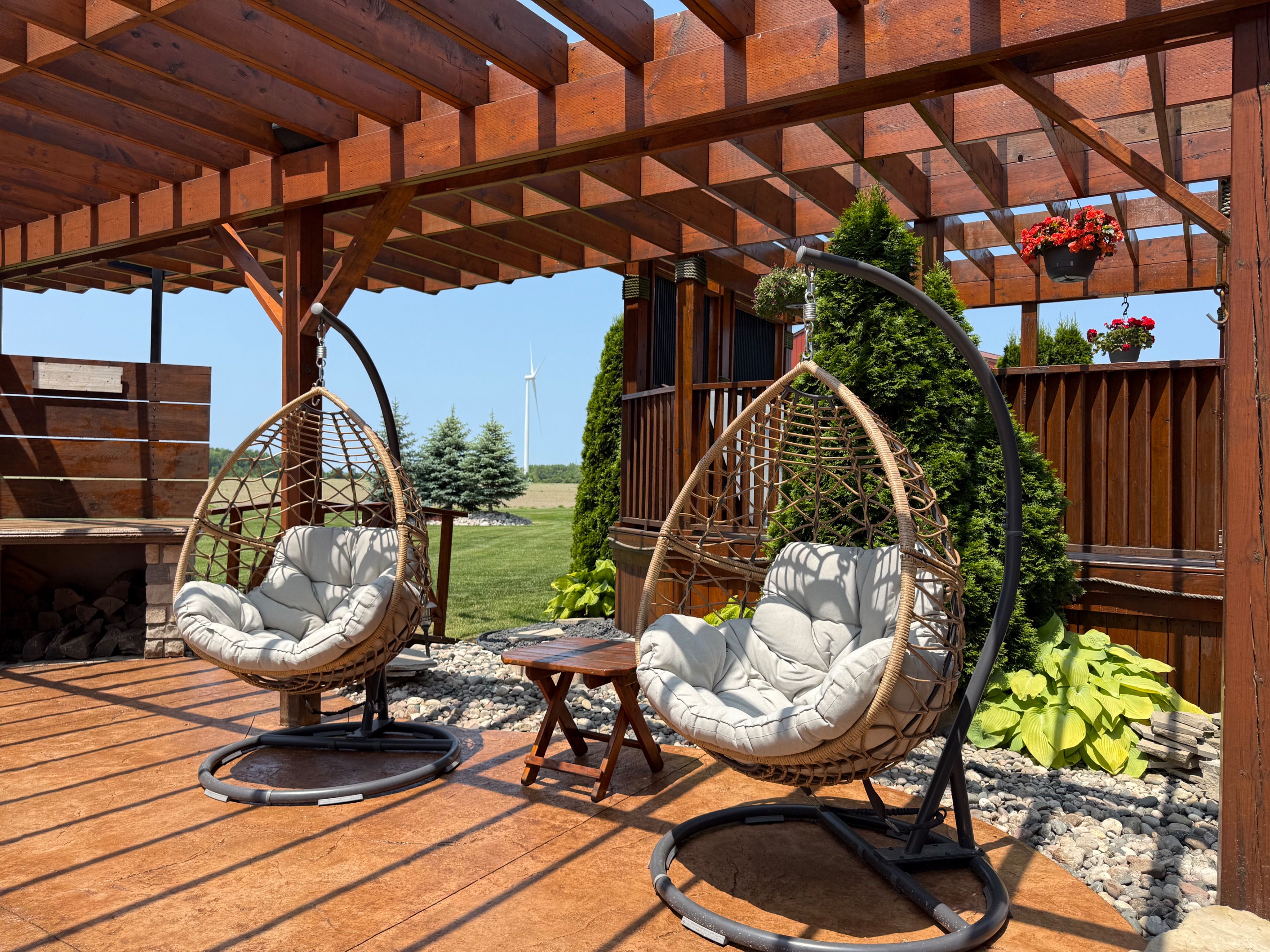 • Large back deck with outdoor kitchen and hot tub, perfect for gatherings.