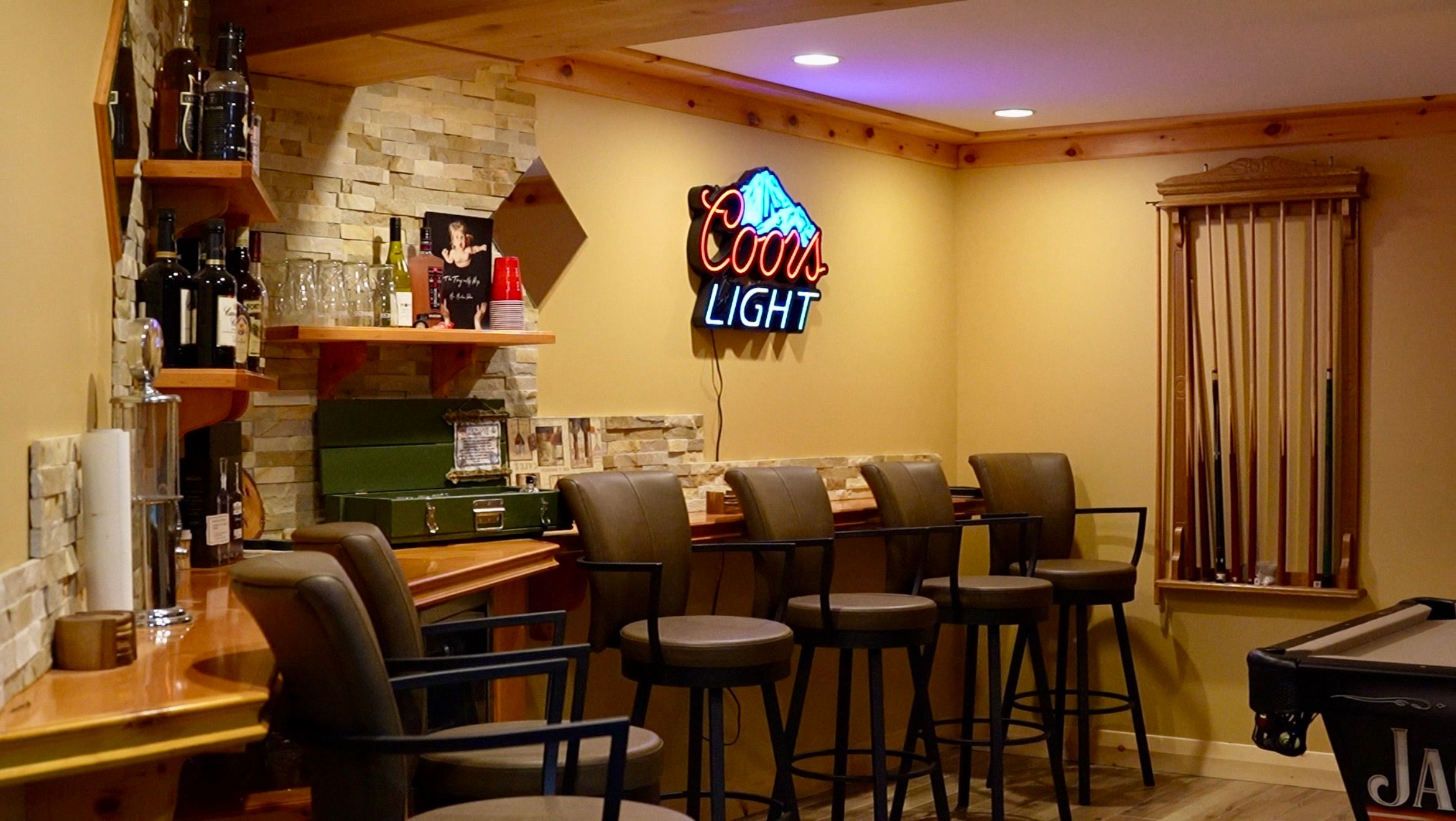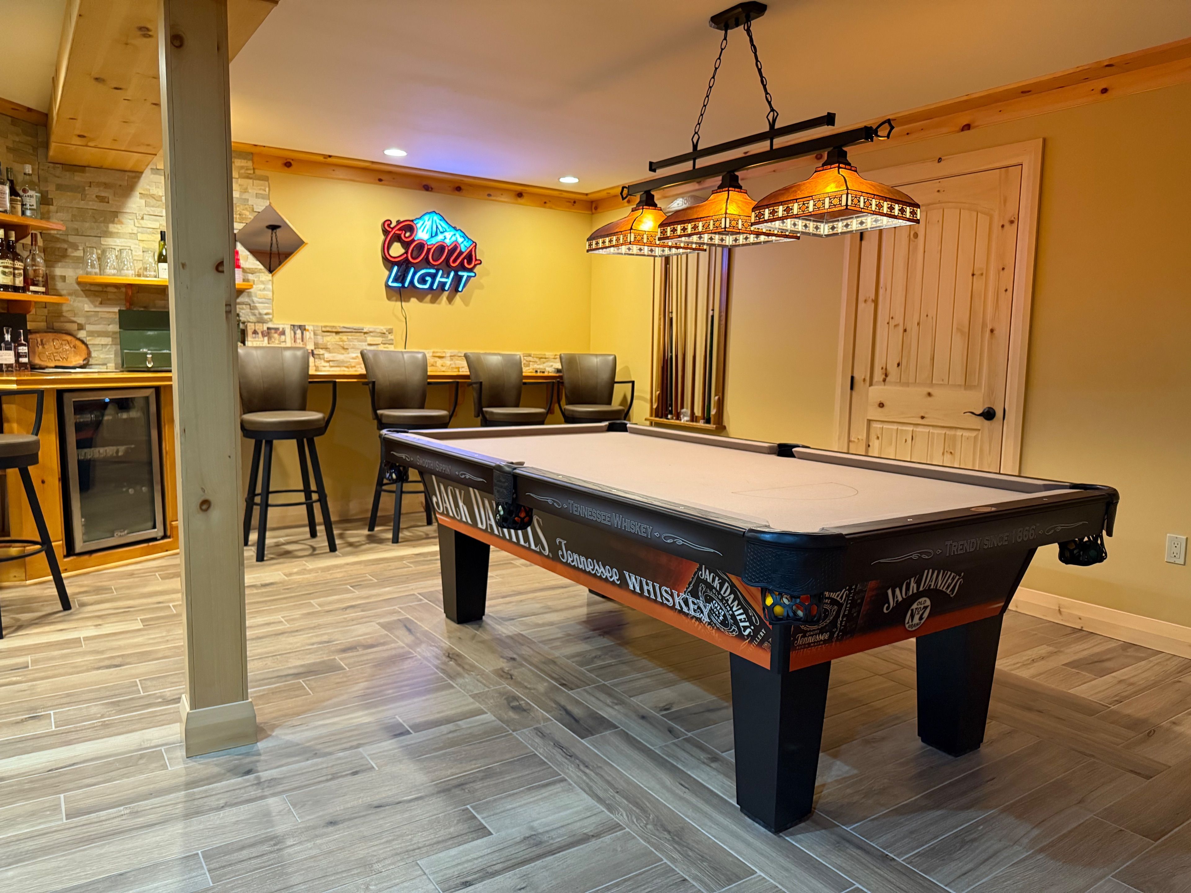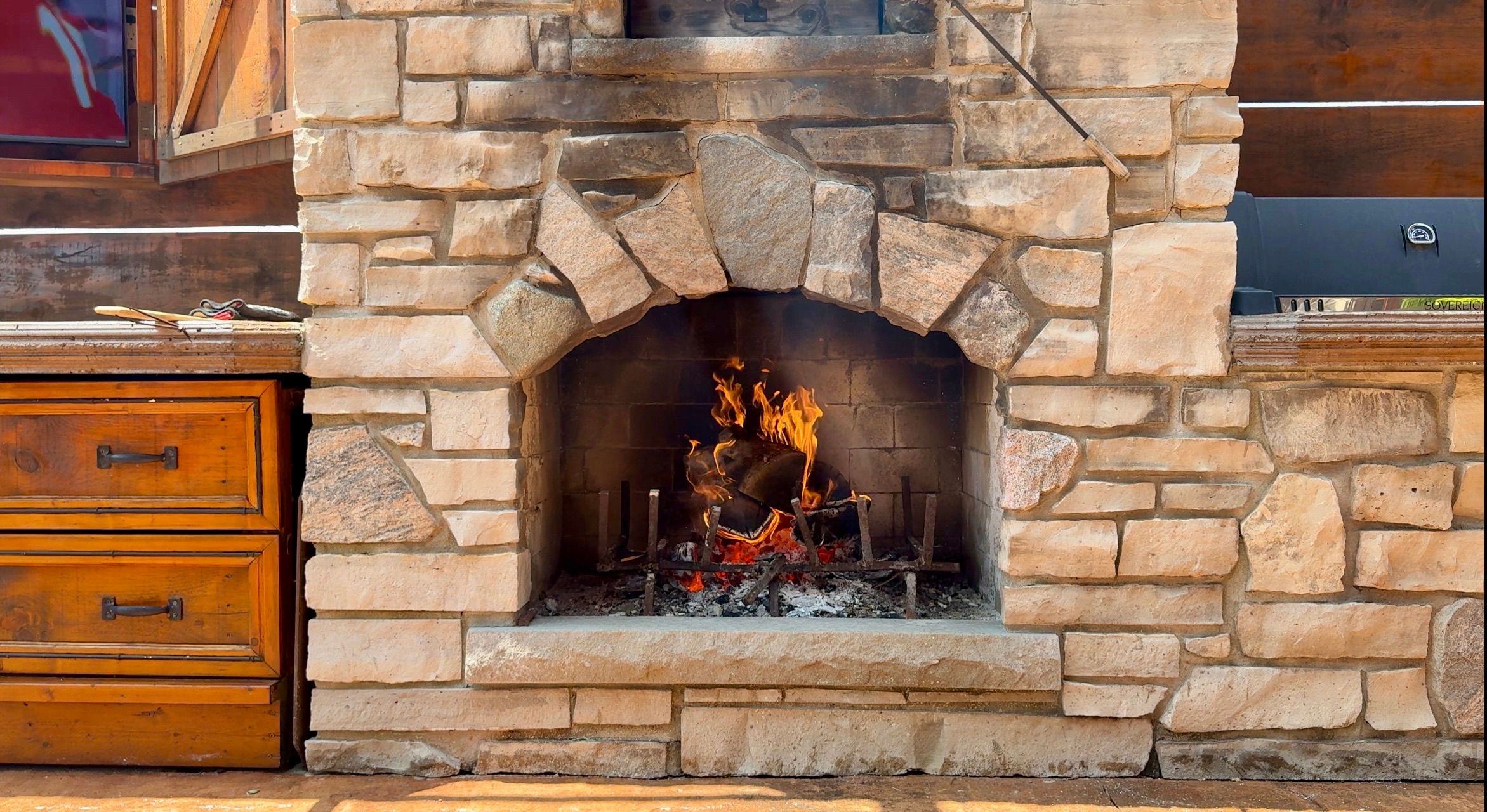 • Massive back deck with outdoor kitchen, pizza oven, and hot tub.