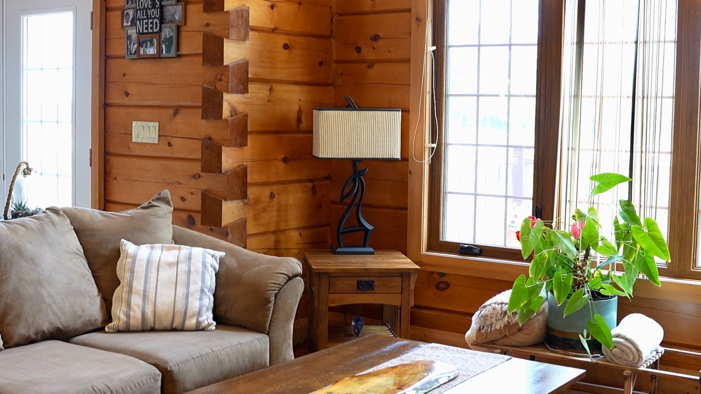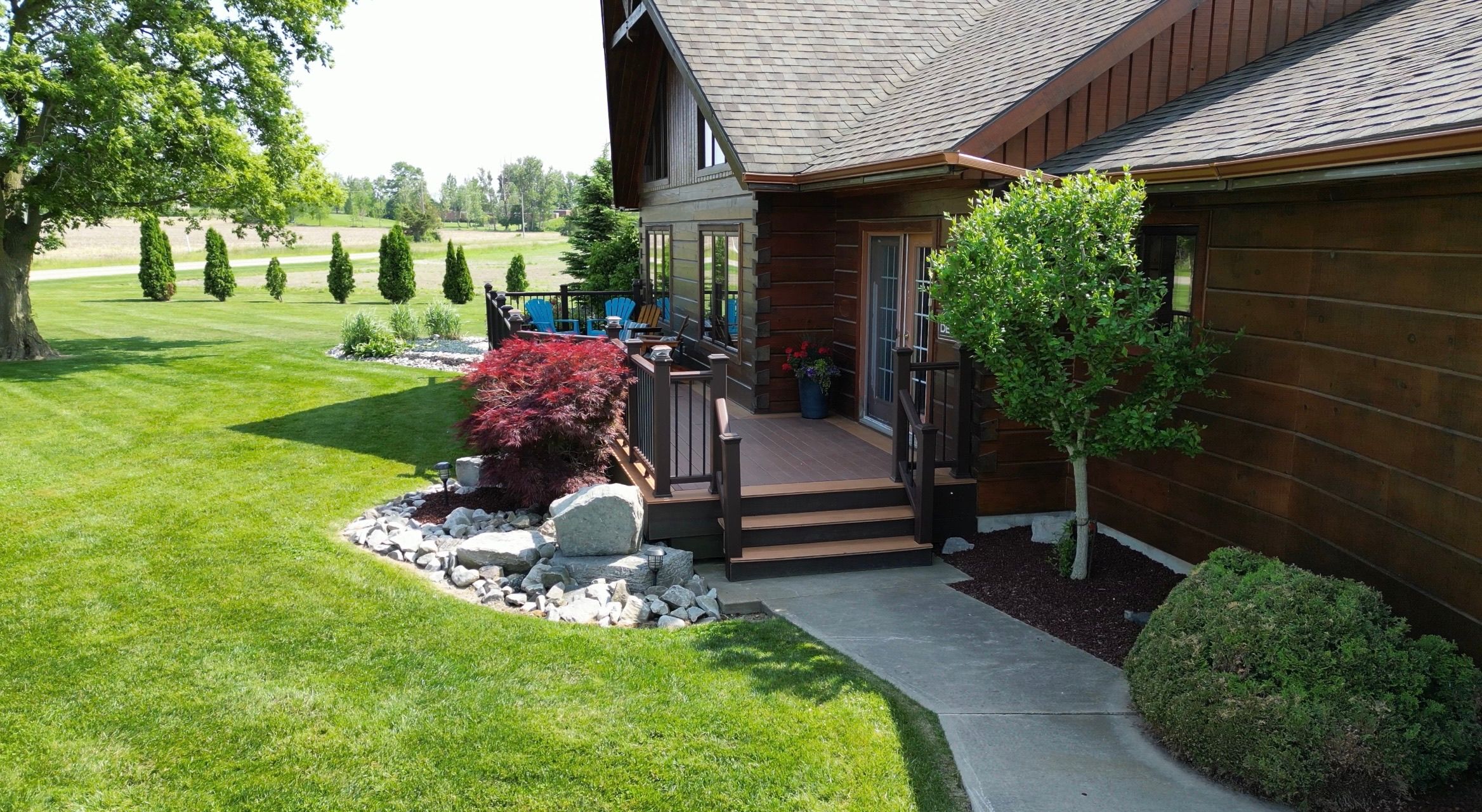 • Custom-built log-style home on a spacious private lot.