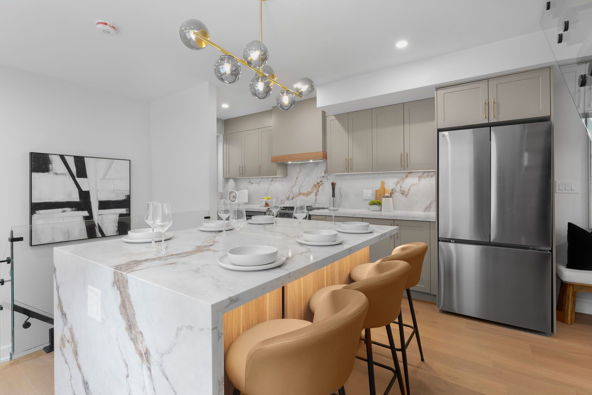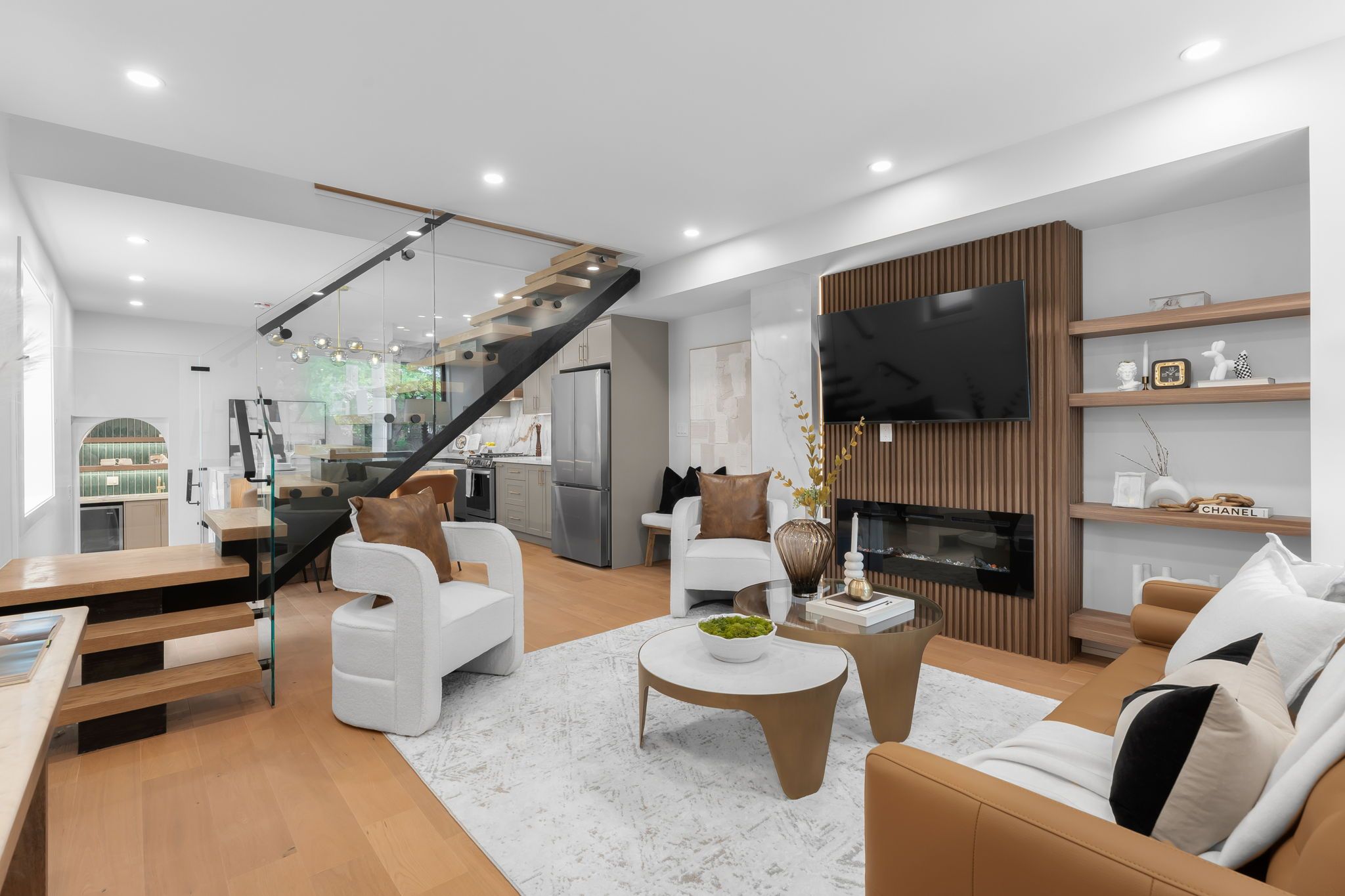 Welcome to 853 sammon avenue, a fully renovated detached home with a garage and ample parking, offering four bedrooms, three bathrooms, an open-concept living space, and a fully finished basement. This stunning property has been updated from top to bottom, featuring a new roof, windows, furnace, and an ac. The main floor showcases a bright, open-concept layout with a designer fireplace and a striking glass staircase featuring a monorail design that seamlessly separates the living and kitchen areas. The modern chef's kitchen boasts an oversized island with abundant storage, a dedicated coffee bar with extra cabinetry, a bar sink, and a bar fridge, perfect for both everyday living and entertaining. A convenient and stylish main-floor powder room completes this level. Upstairs, you'll find three spacious bedrooms and two beautifully finished bathrooms. The primary suite is generously sized and includes a luxurious spa-like ensuite. The remaining bedrooms share a modern and well-appointed full bath. The fully finished lower level offers additional living space, including a large recreation room with built-in storage, a laundry area, and a versatile fourth bedroom that can also serve as a home office or gym. Outside, enjoy a private, fenced backyard, perfect for children, pets, or outdoor gatherings. Situated in a desirable east york neighbourhood, this home is close to excellent schools, shopping, transit, and woodbine beach. This is a rare opportunity to move into a completely renovated home in a prime location, offering every modern convenience.