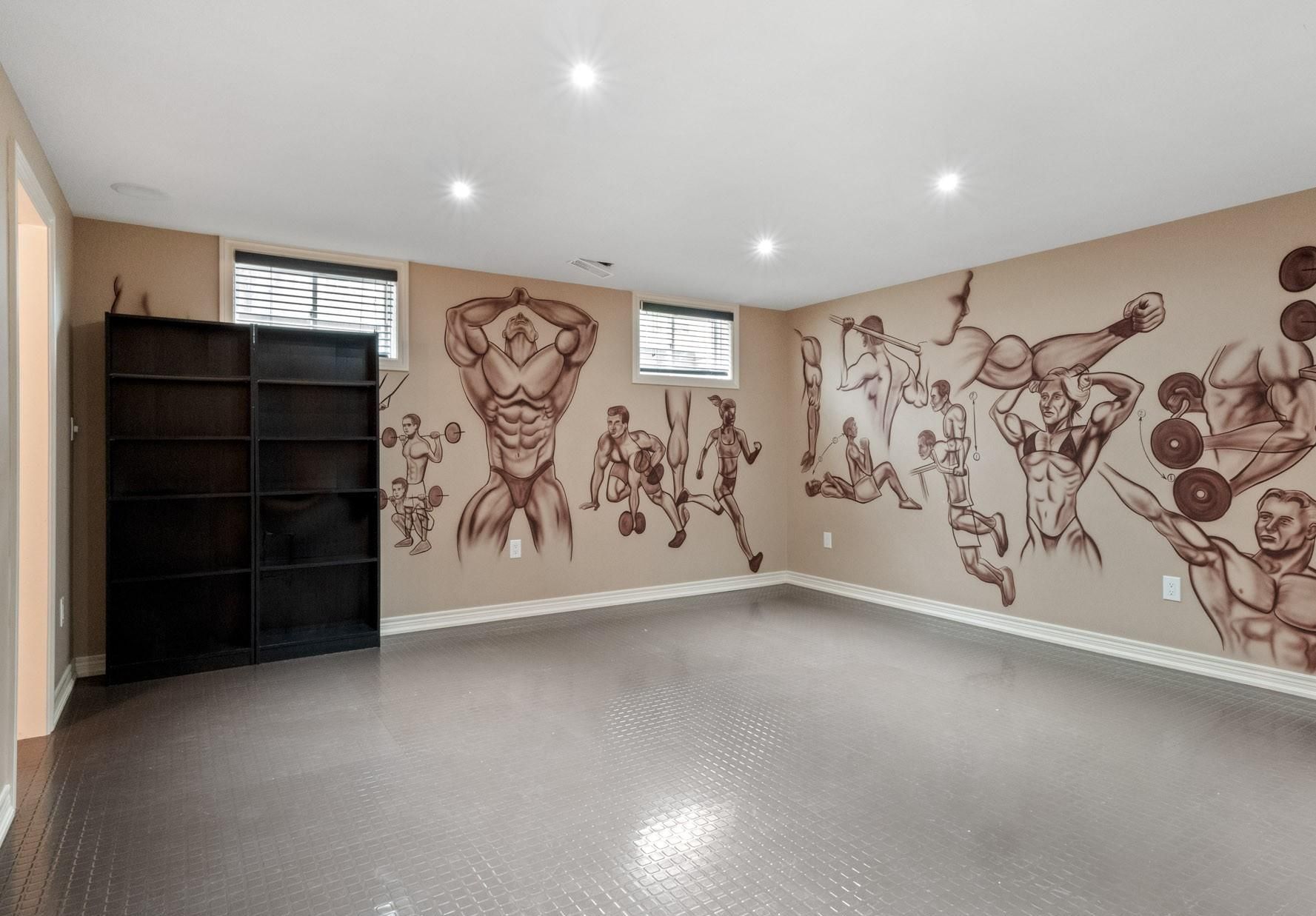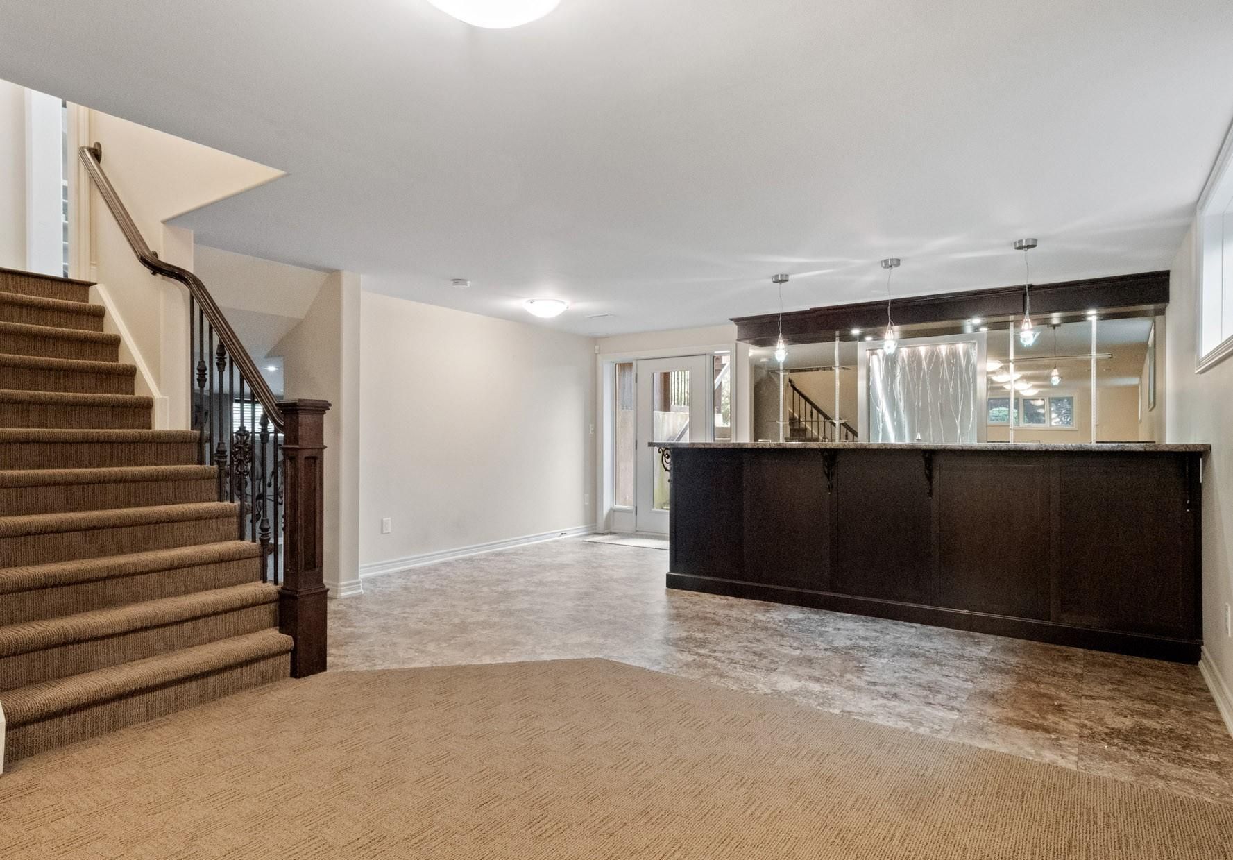 • Finished lower level includes a rec room, wet bar, and gym.