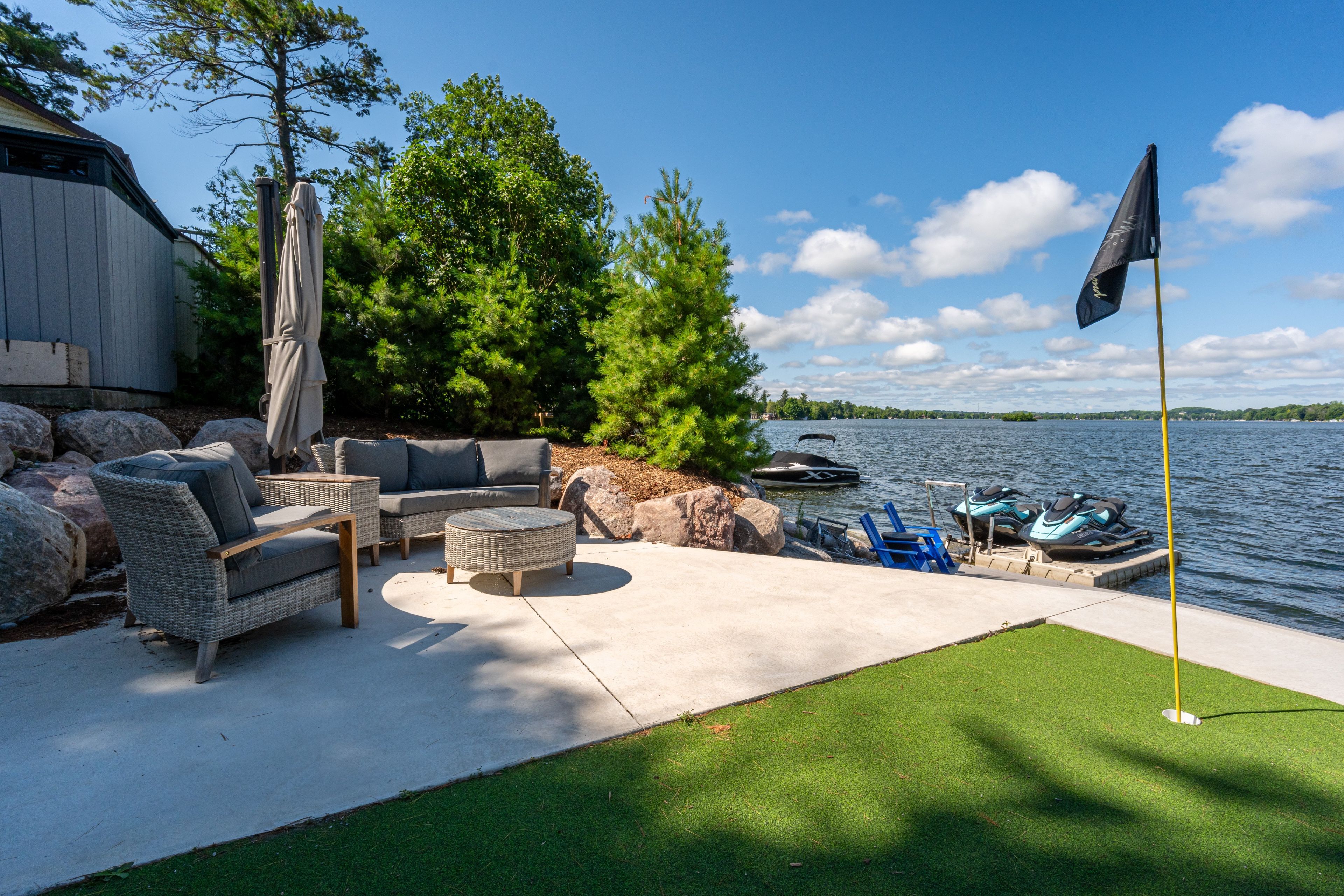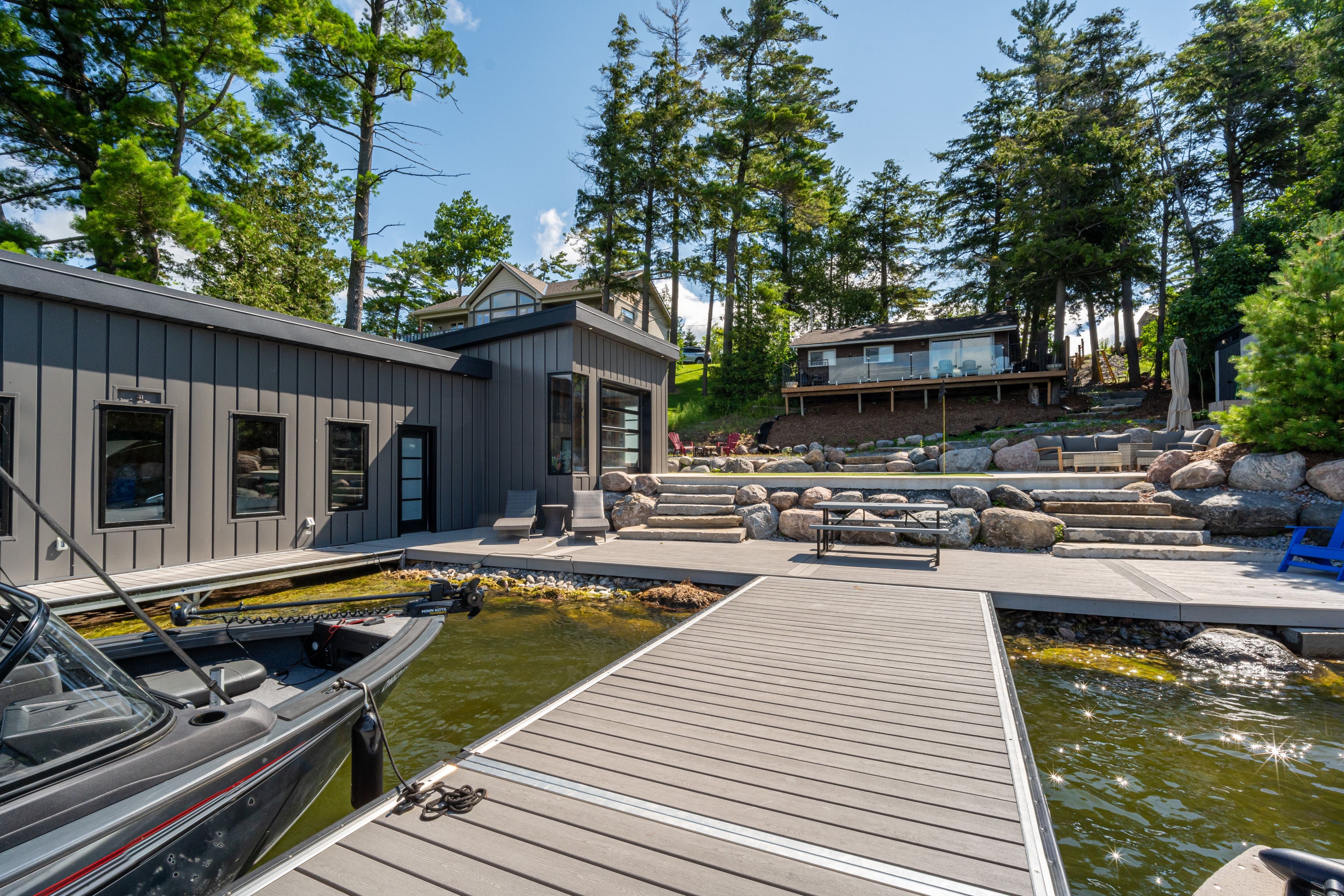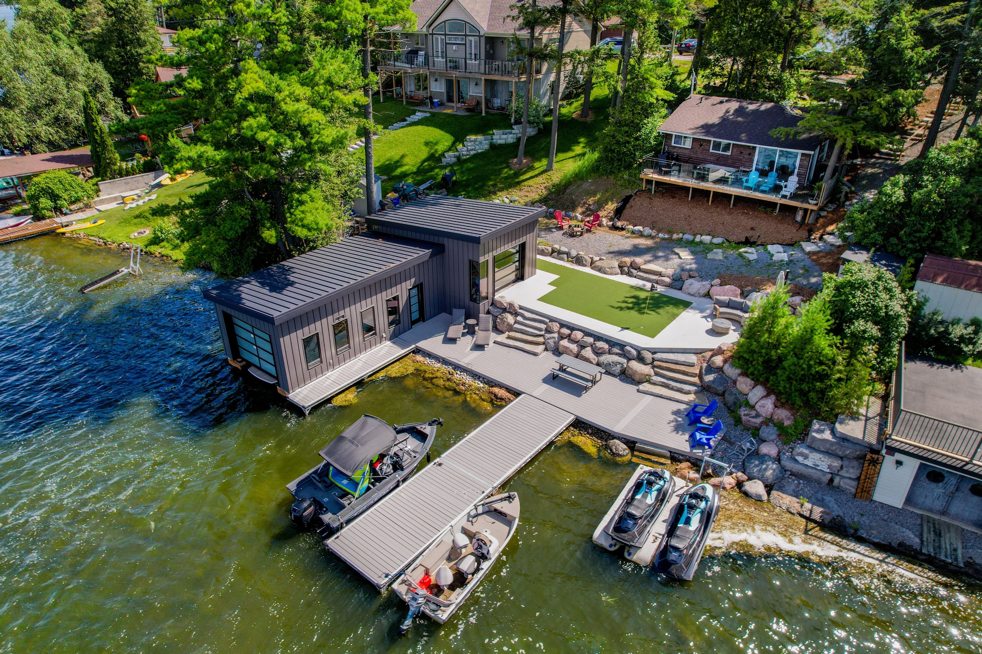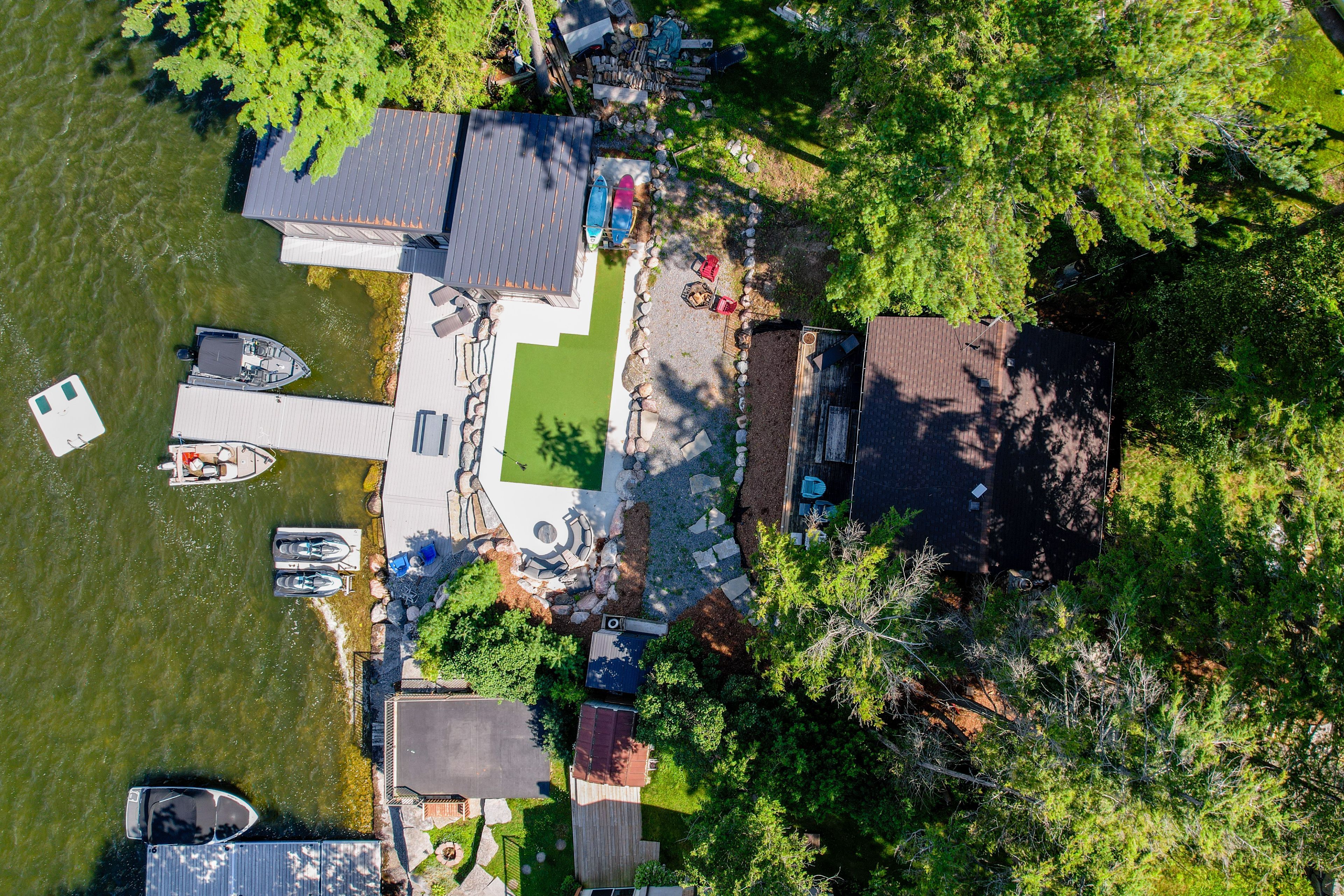 • Newer boathouse with wet slip and lounge area for entertaining.