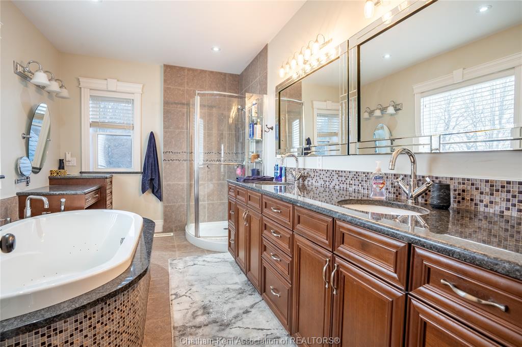 • Custom-built executive home with a full stone exterior on a large one-acre lot.
