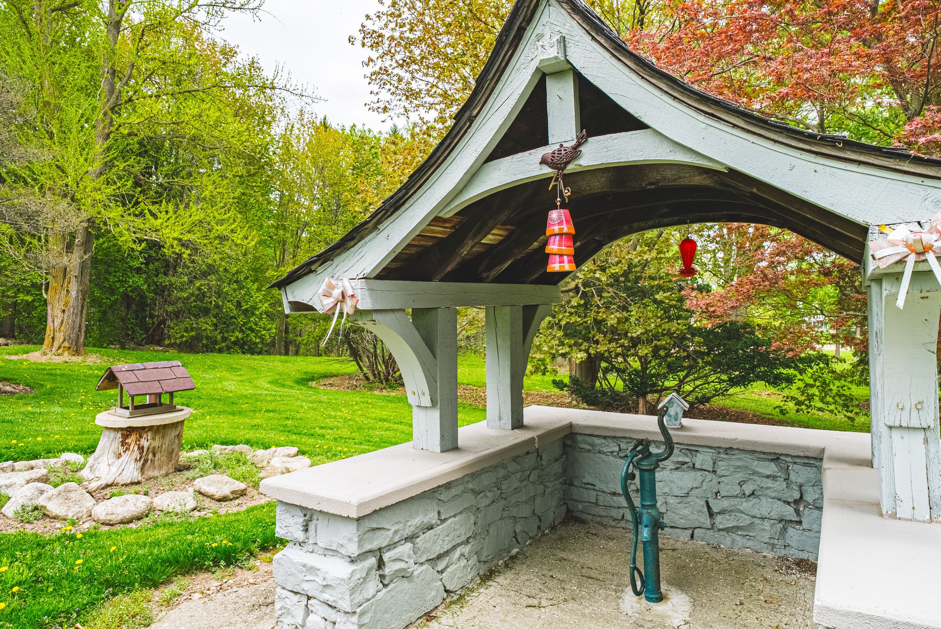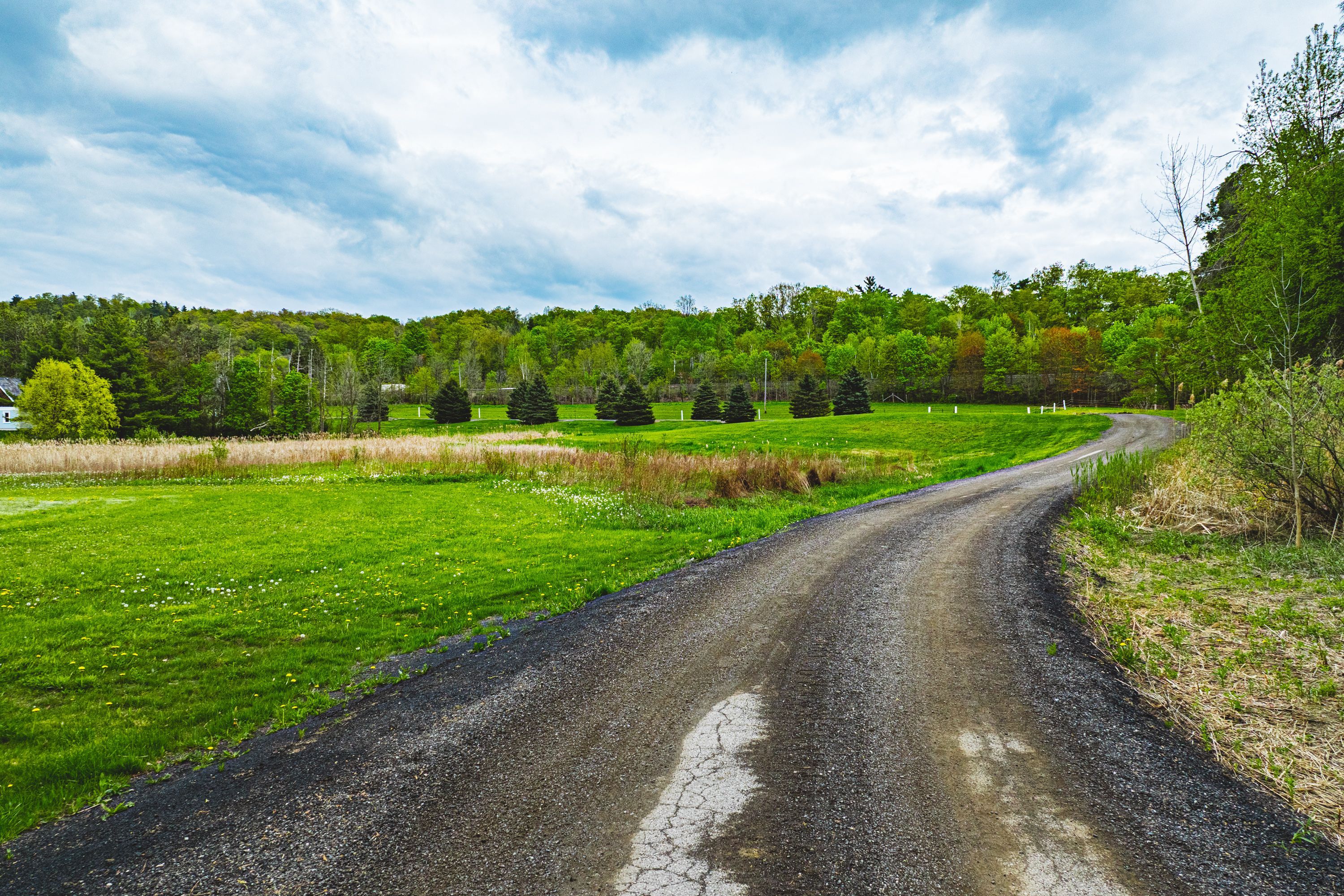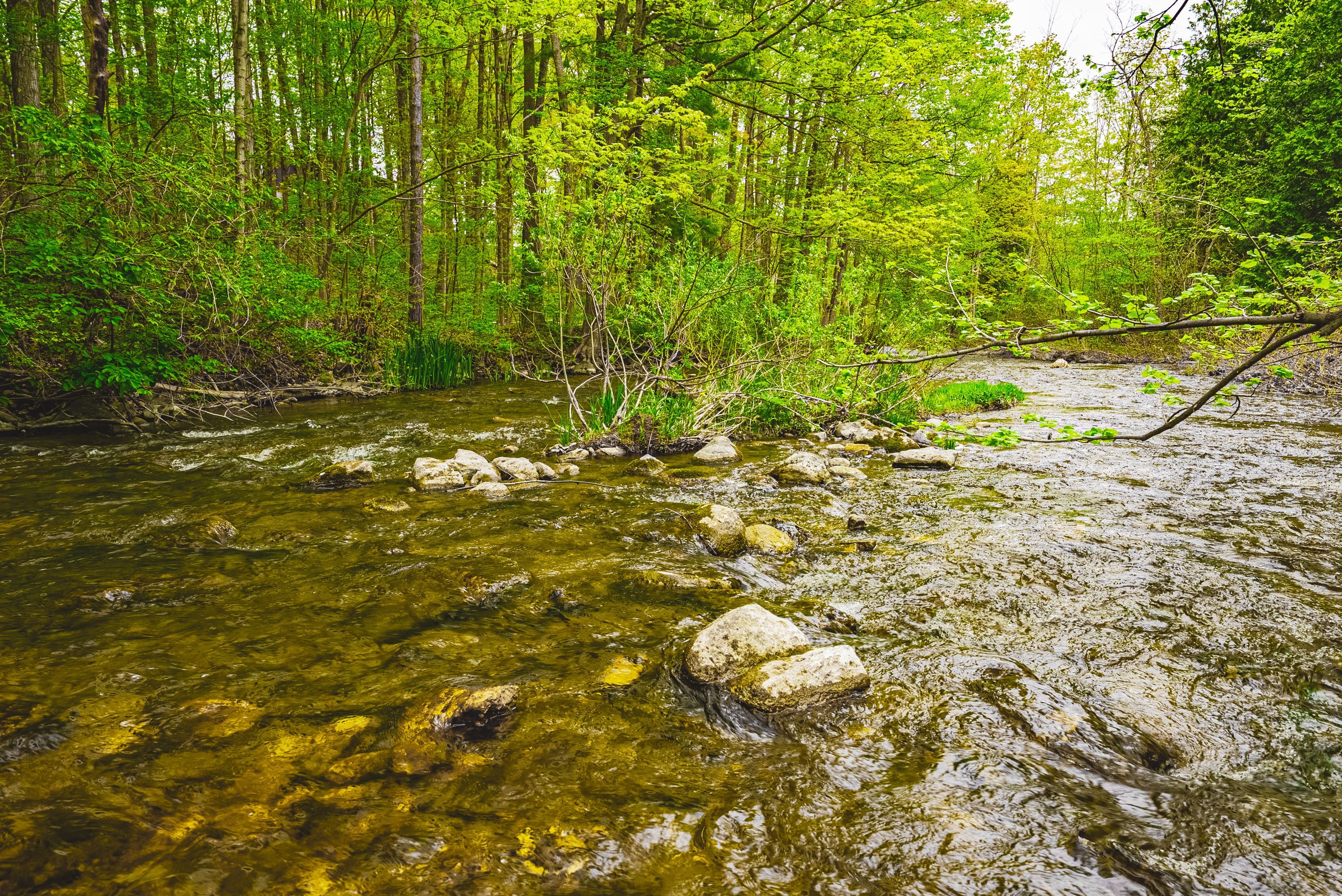 • Breathtaking landscape with fields, mature trees, and a creek.