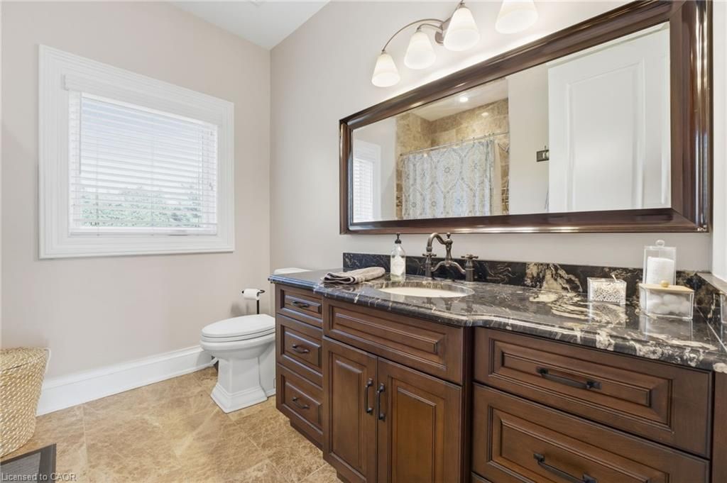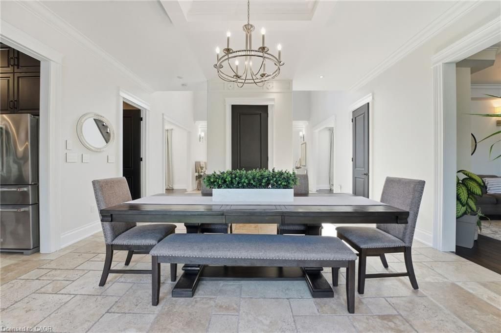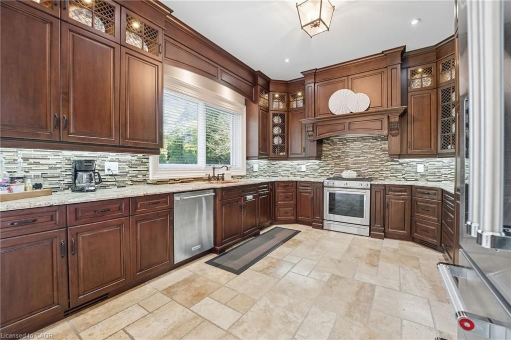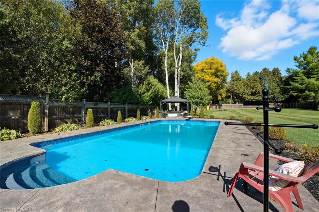 Imagine driving down one of the regions most scenic winding roads to your custom built dream home! This is where a prime location meets executive living. Built in 2016, this custom 5 bedroom and 5 bathroom home delivers 5873 square feet of finished living space, and sits prominently on nearly an acre of manicured lawn and gardens. Privacy is ensured by the fully fenced yard which is further surrounded by a tall, mature woodland. Step inside the solid wood double doors to your grand foyer and staircase. The main floor, with 10' ceilings and solid wood trim, offers a living room and family room, formal dining room, and a chef's kitchen complete with 5 appliances and granite counters. The large dinette is accented by oversized windows and patio doors that open to a quiet backyard oasis featuring a heated inground pool, poured concrete patio and a playground. The second level boasts a sunken master bedroom with oversized walk in closet and luxury ensuite bathroom. Five large bedrooms total, two 4-pce bathrooms and a laundry room completes this floor to provide spacious and private quarters for the whole family. The finished rec-room boasts a 3-piece bathroom, a rough in for a second kitchen or bar. Parking for family and guests is never an issue with the heated and insulated massive double garage and oversized triple wide driveway, with parking for 10 cars and extra room for your rv. Walking distance to the scenic trails of shade mills conservation area and a 5 minute drive to the 401. It doesn't get better then this!