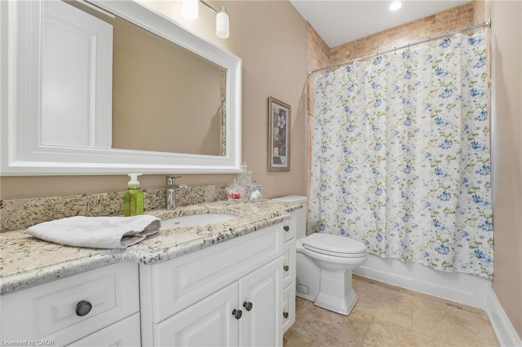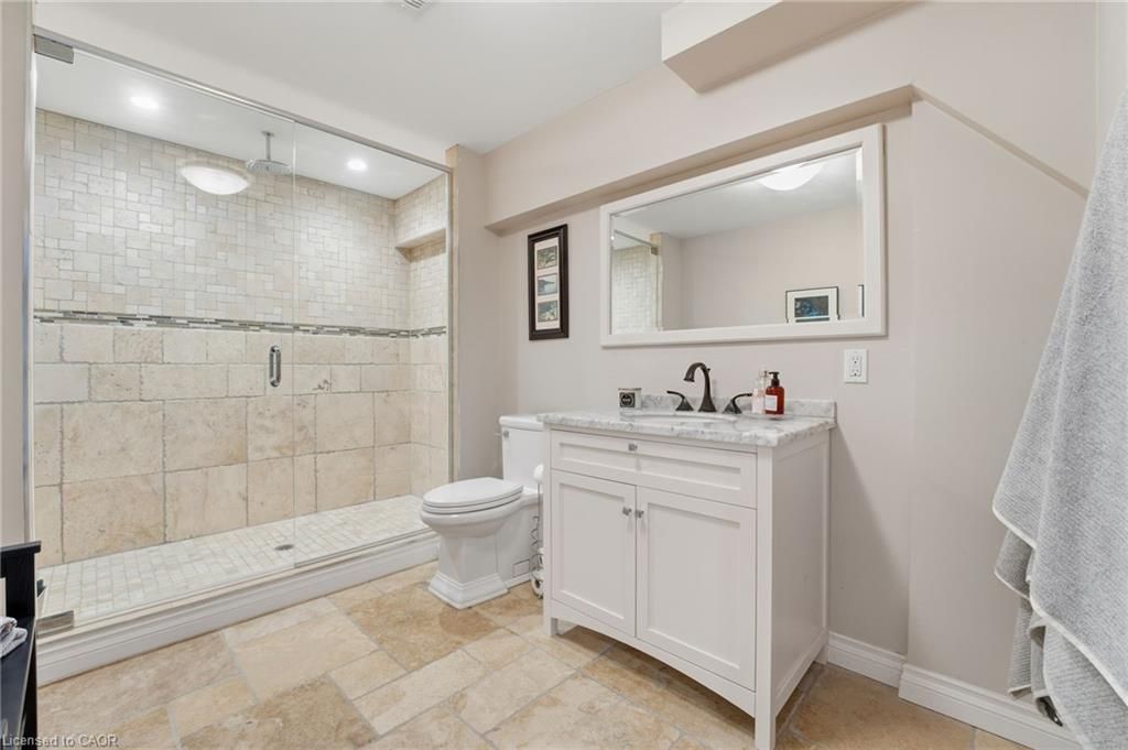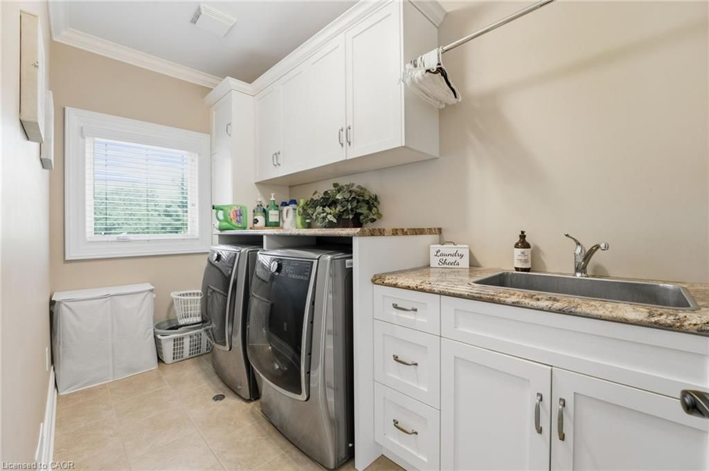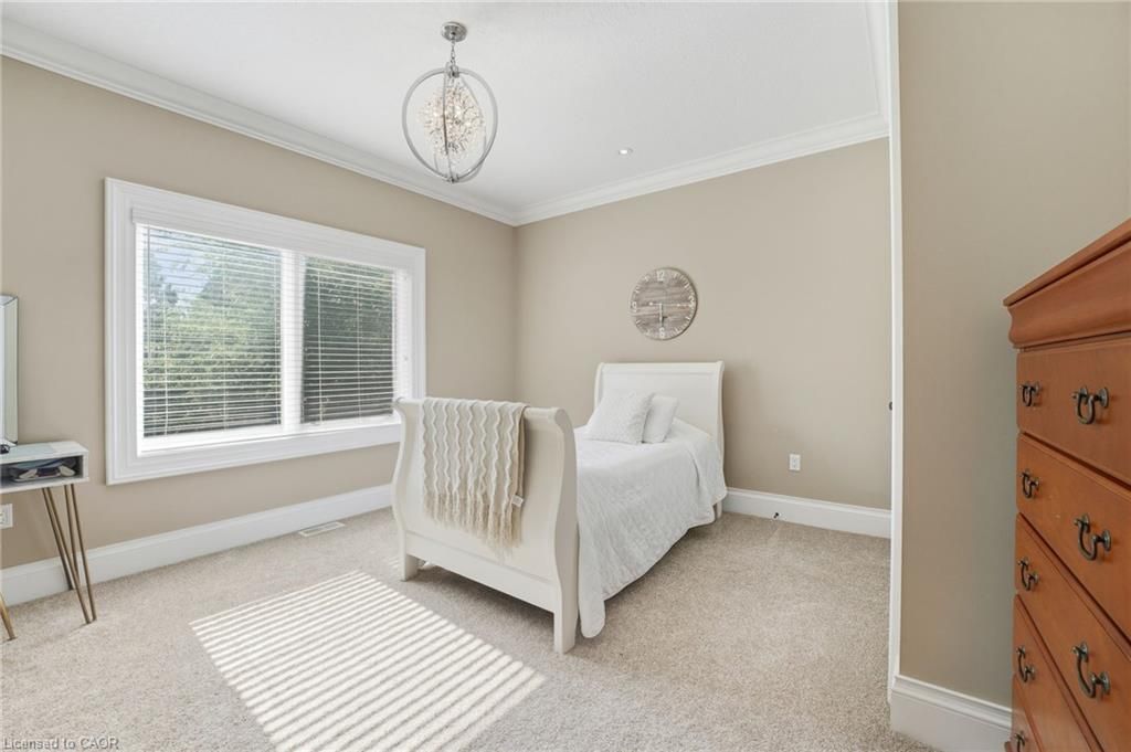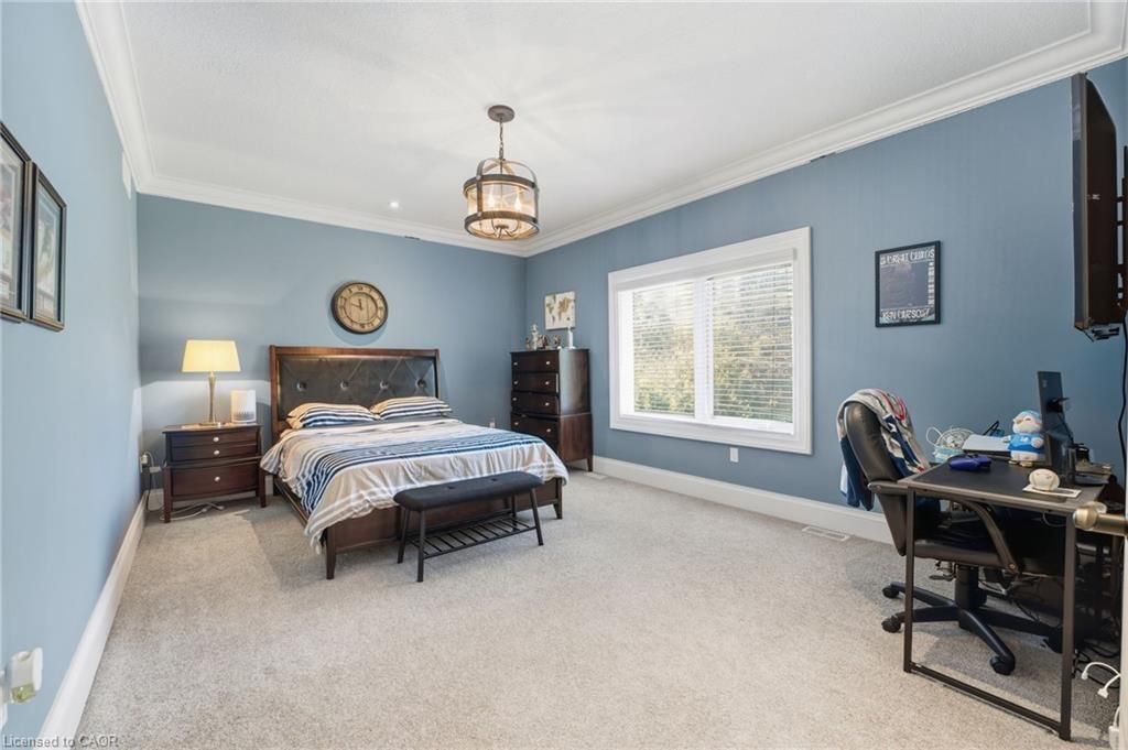 Imagine driving down one of the regions most scenic winding roads to your custom built dream home! This is where a prime location meets executive living. Built in 2016, this custom 5 bedroom and 5 bathroom home delivers 5873 square feet of finished living space, and sits prominently on nearly an acre of manicured lawn and gardens. Privacy is ensured by the fully fenced yard which is further surrounded by a tall, mature woodland. Step inside the solid wood double doors to your grand foyer and staircase. The main floor, with 10' ceilings and solid wood trim, offers a living room and family room, formal dining room, and a chef's kitchen complete with 5 appliances and granite counters. The large dinette is accented by oversized windows and patio doors that open to a quiet backyard oasis featuring a heated inground pool, poured concrete patio and a playground. The second level boasts a sunken master bedroom with oversized walk in closet and luxury ensuite bathroom. Five large bedrooms total, two 4-pce bathrooms and a laundry room completes this floor to provide spacious and private quarters for the whole family. The finished rec-room boasts a 3-piece bathroom, a rough in for a second kitchen or bar. Parking for family and guests is never an issue with the heated and insulated massive double garage and oversized triple wide driveway, with parking for 10 cars and extra room for your rv. Walking distance to the scenic trails of shade mills conservation area and a 5 minute drive to the 401. It doesn't get better then this!