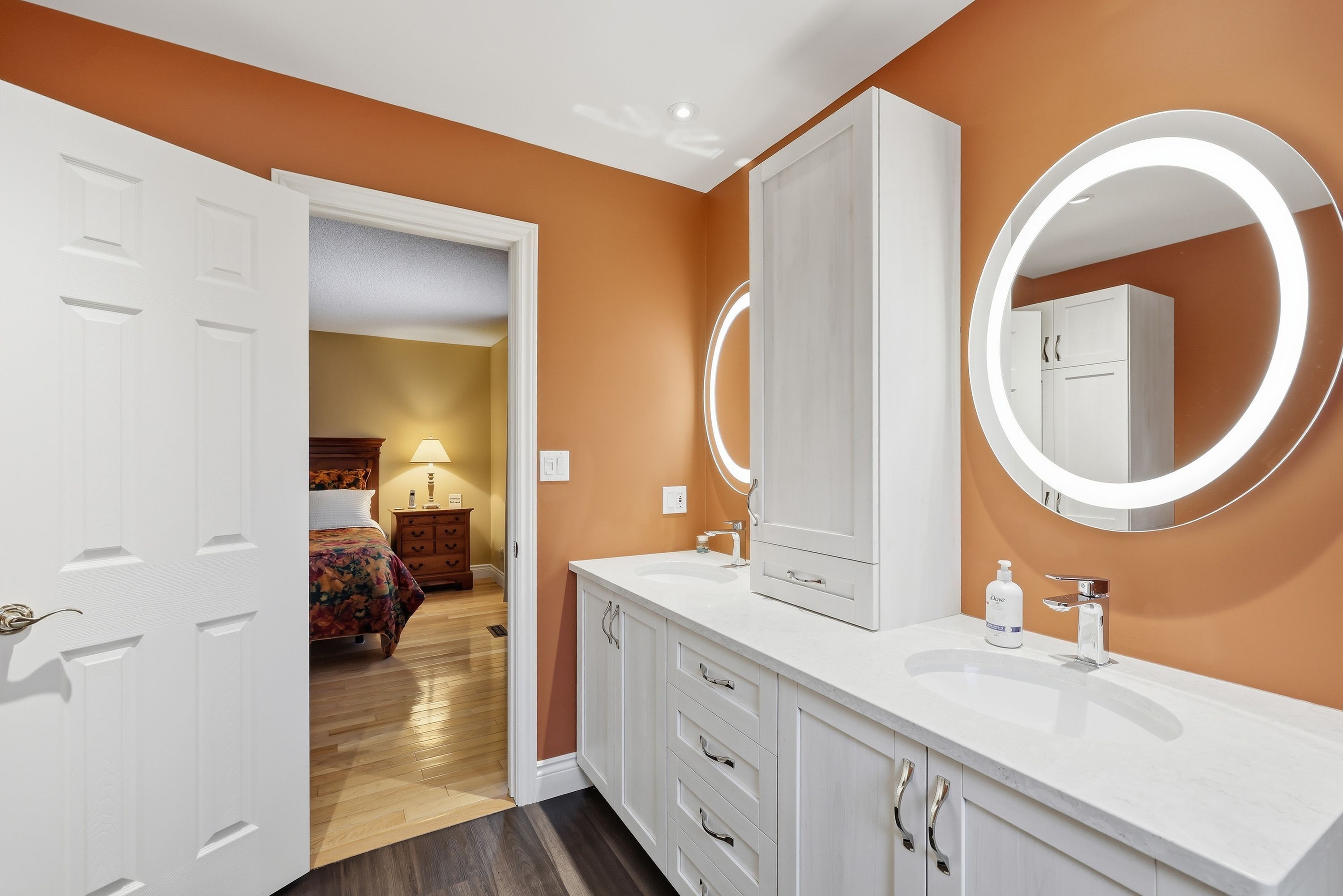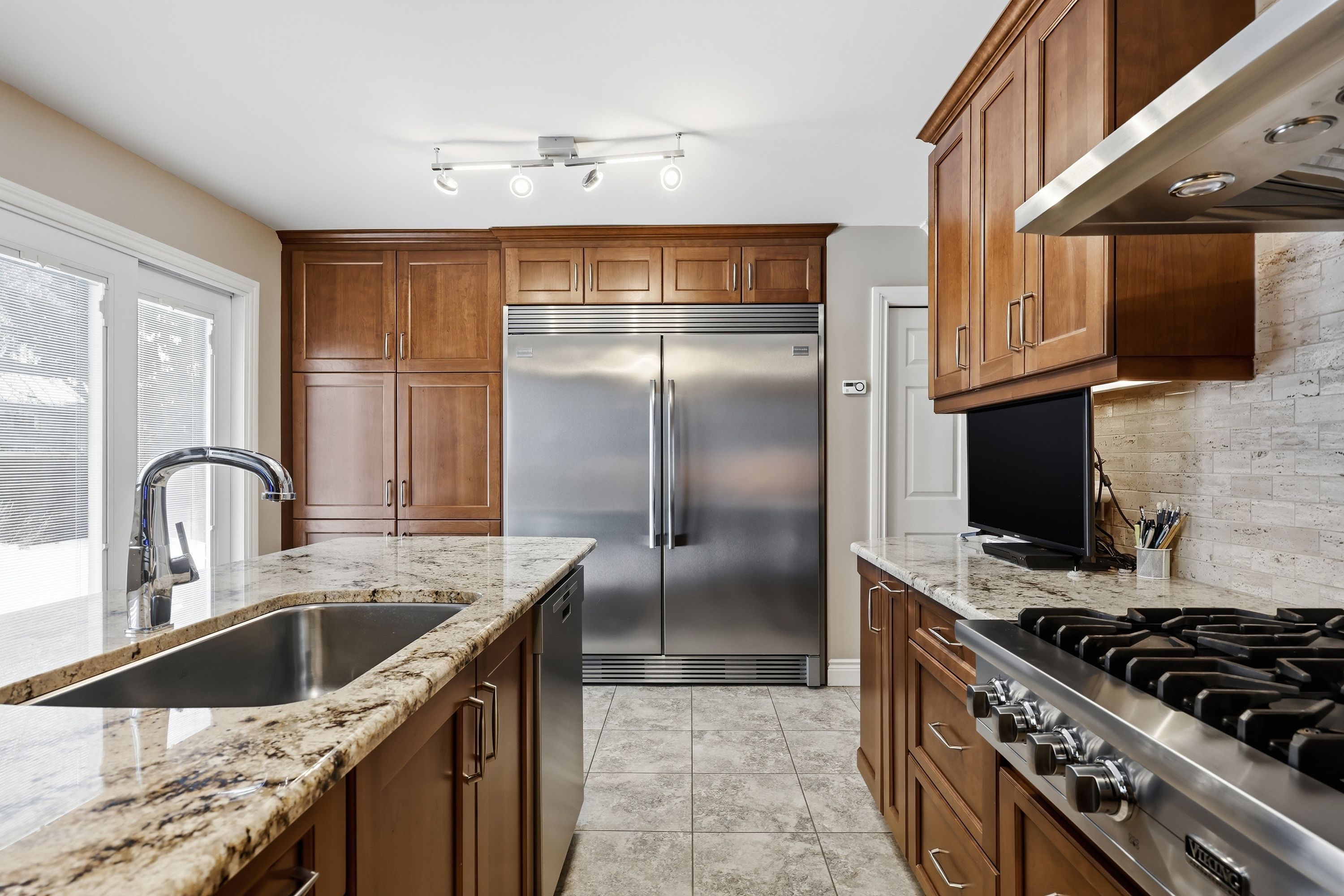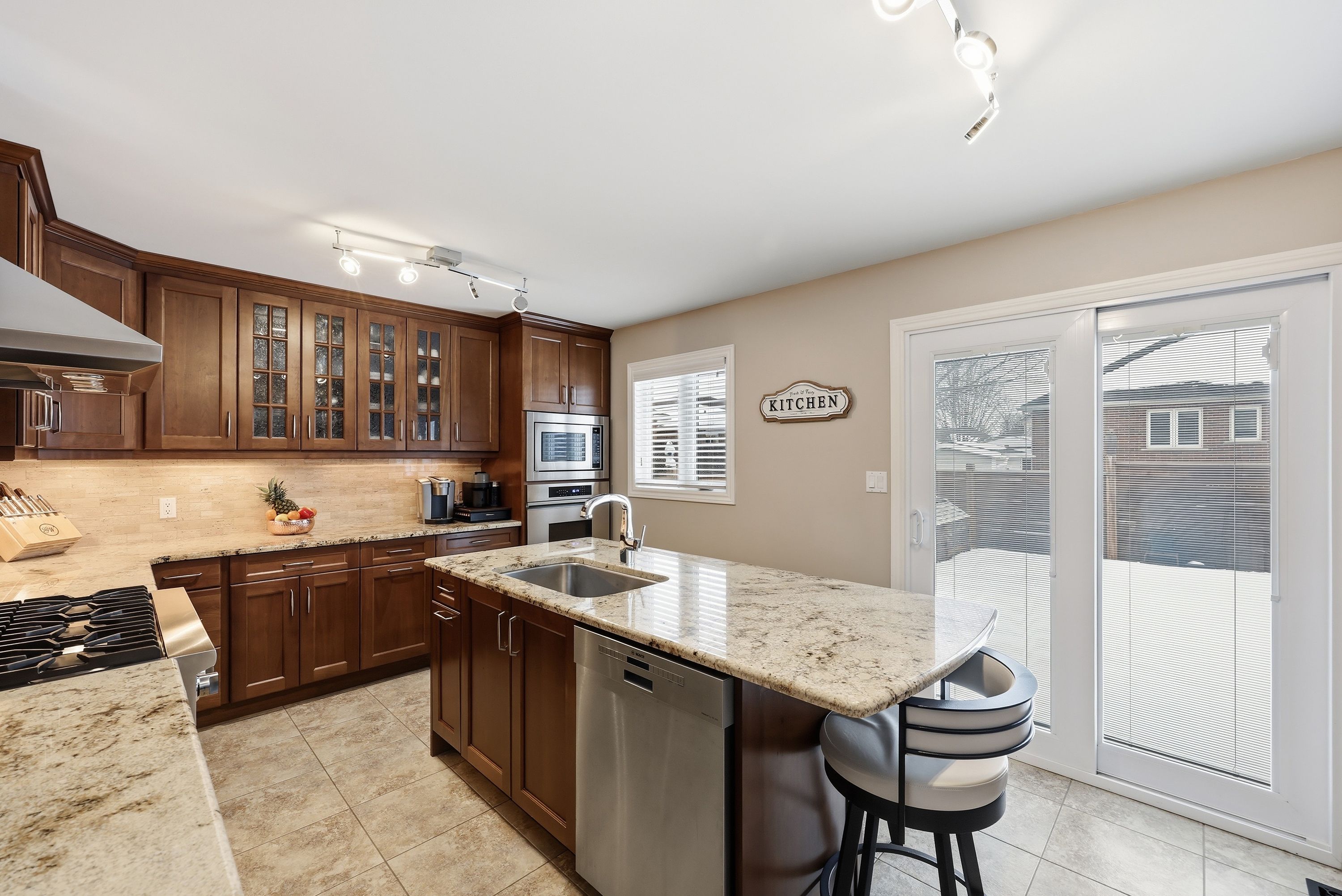 Wow!! This immaculate all brick 4 bedroom 3 bathroom bungalow with 2 car garage with epoxy floors by romava corp andgorgeous in-ground pool in the highly sought after westwoods subdivision is absolutely bursting with luxurious upgradesand has been meticulously maintained. It features a bright and spacious main floor with gleaming hardwood, a gorgeous custombuilt kitchen by county wide kitchens (east facing for sunny mornings overlooking the pool) with professional grade stainlesssteel appliances, stunning granite countertops and custom cabinetry, 2 bedrooms and 2 bathrooms on the main floor including alarge master bedroom with walk-in closet, 4 pc ensuite and soaker tub. The lower level features 2 more spacious bedrooms, a second kitchen and 3 pc bathroom, loads of high-end, custom cabinetryand closet doors, a large yet cozy rec room with gas fireplace, bose surround sound system professionally installed and somuch more! Don't miss out on this rare gem!!