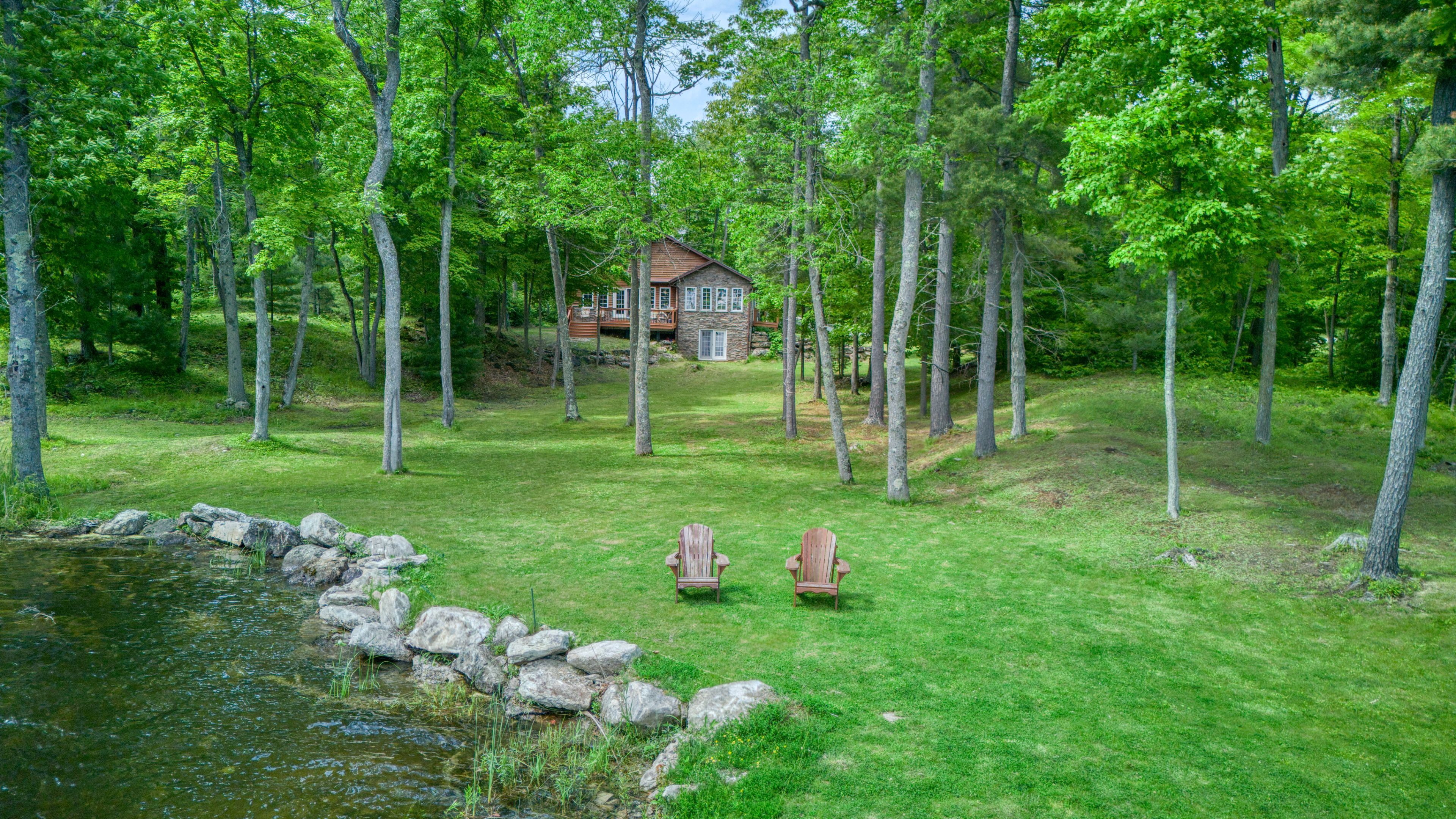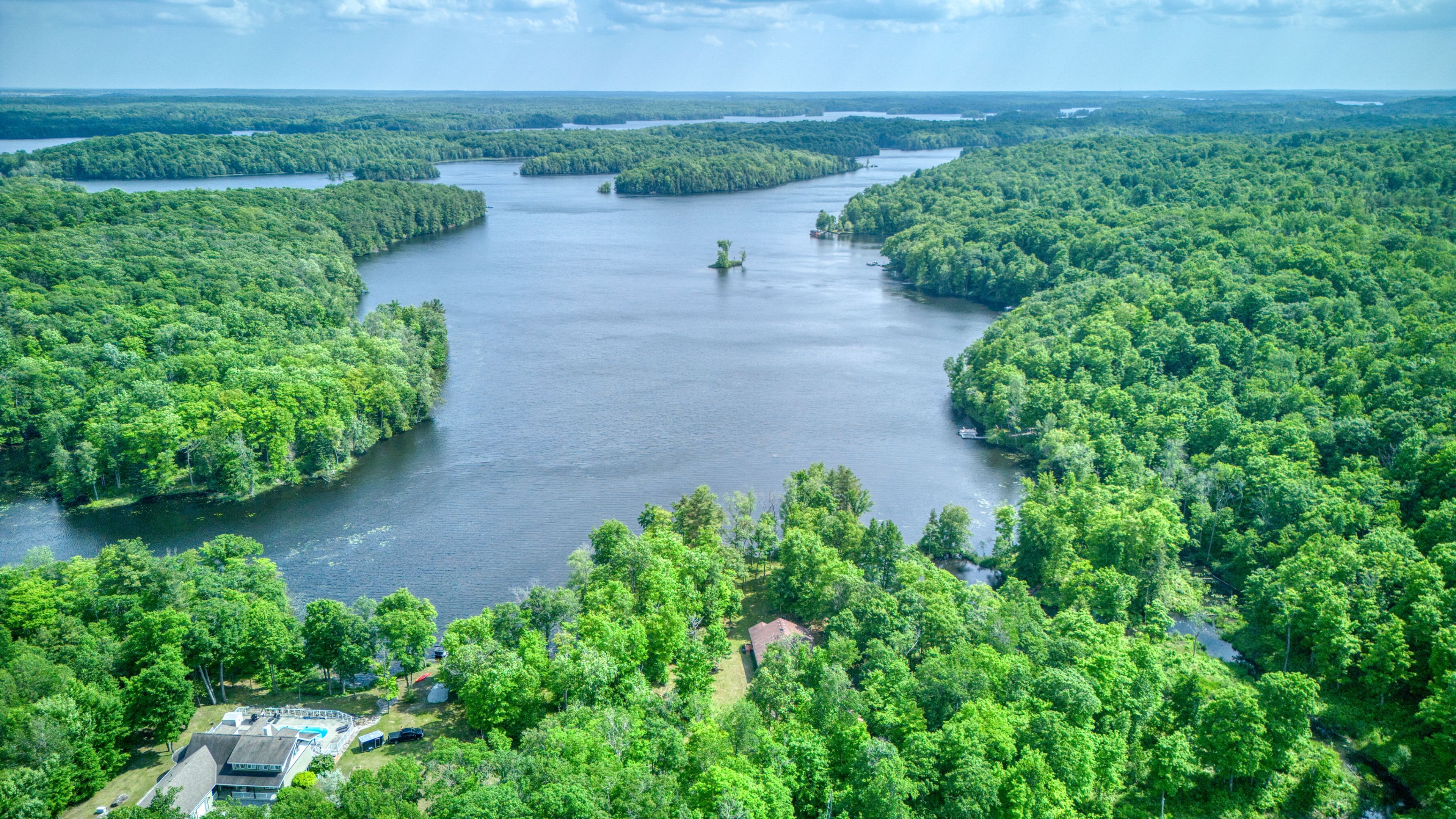 • Lakefront home with stunning views and ample private shoreline.