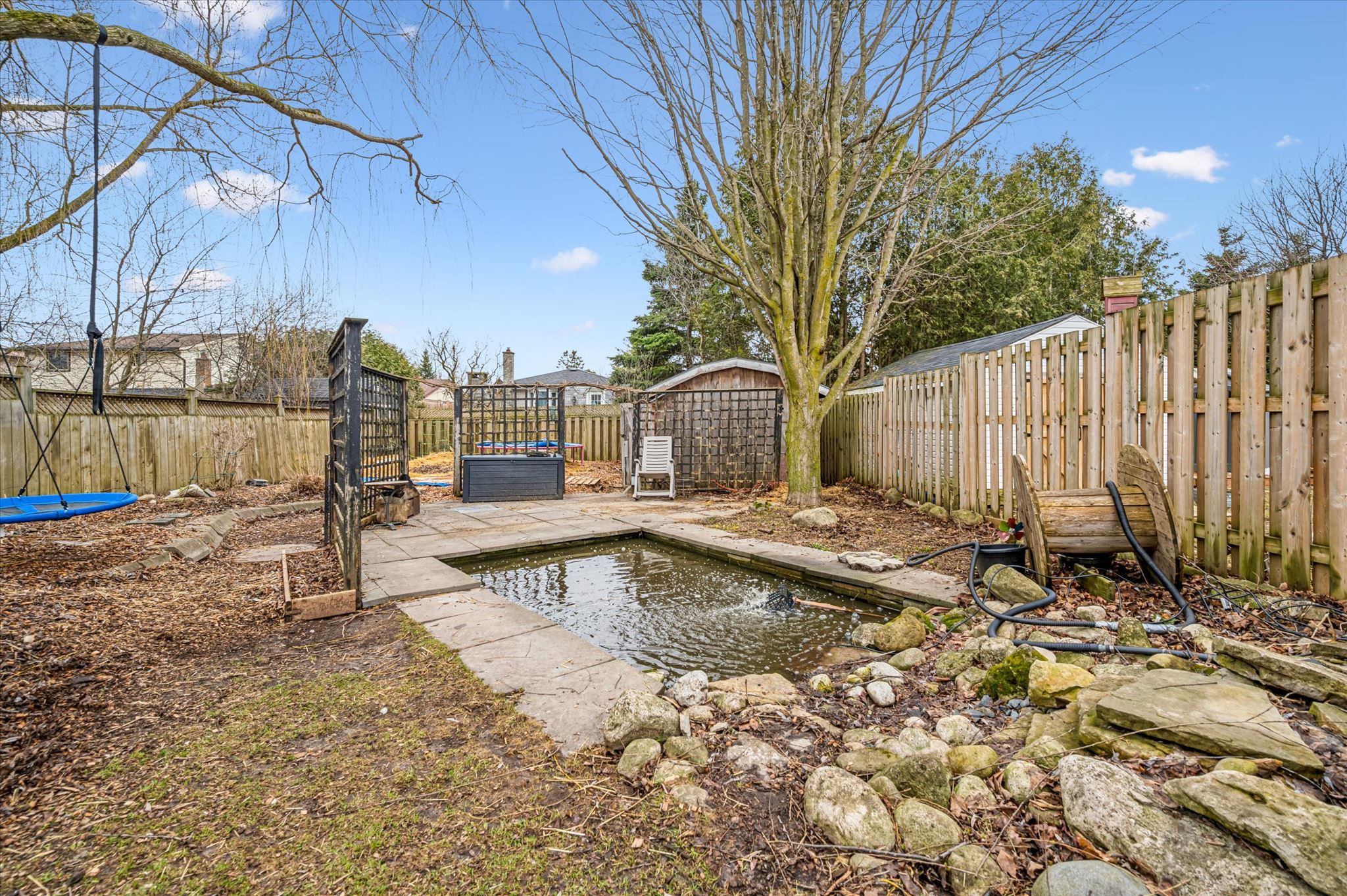• Rare 160-foot deep backyard with mature trees and tranquil ponds.