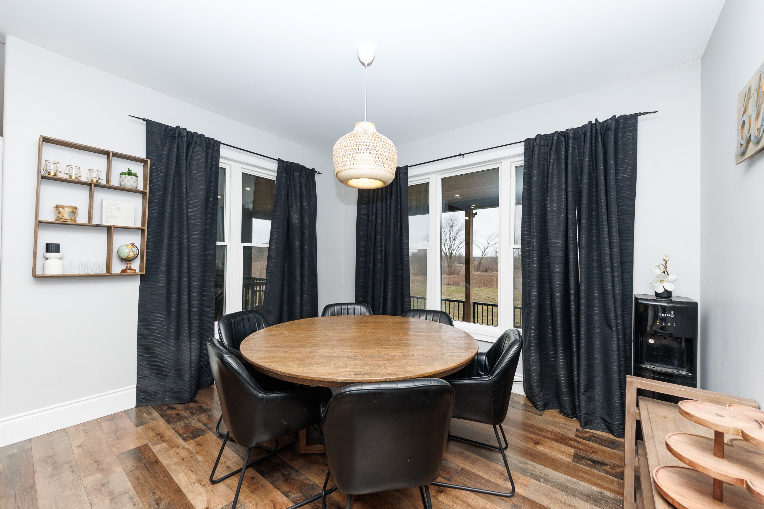 Country close to the city! This custom-built 2020 bungalow offers over 4,500 sq ft of professionally finished living space across two expansive levels, with a detached 30'x60' shop, set on a private 7. 5-acre country property just minutes from all town amenities and recreation opportunities. Designed for effortless main floor living, the home features an open-concept layout with vaulted ceilings in the living room, creating a bright & inviting atmosphere perfect for entertaining. The heart of the home is the chef-inspired kitchen, complete with a granite counters, large centre island, double ovens, gas cook-top & huge walk-in pantry. The covered two-tier deck overlooks the backyard, ideal for evening gatherings. The principal suite is a true retreat, offering a 6-pc ensuite with a standalone tub, double shower & generous walk-in closet. Two additional bedrooms, a dedicated home office, laundry room & 2 further bathrooms complete the main level. Downstairs, the fully finished basement offers versatility with a massive rec room & 4 additional rooms currently used as bedrooms & a full bathroom, ideal for extended family, guests, or flexible living arrangements. Need room for storing toys? Or perhaps a further work space? The 1800 sqft detached shop with 100amp service, 2-bay doors, in addition to the attached oversized double garage is the perfect solution. Enjoy being just moments from the sandy shores of lake erie, marina, restaurants, shopping, local golf courses & scenic trails including the friendship trail, offering year-round recreation right at your doorstep. Bell fibe & natural gas is a bonus for country living!