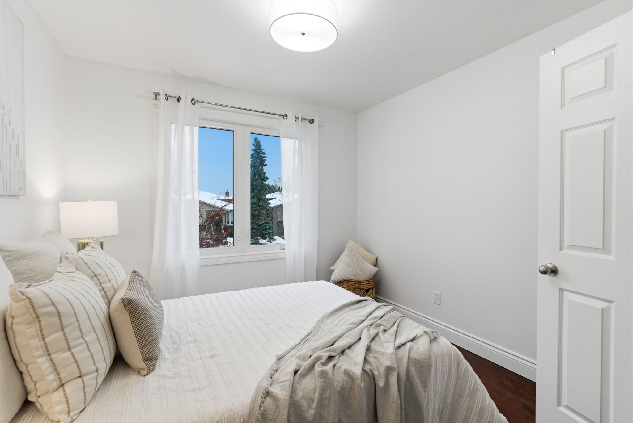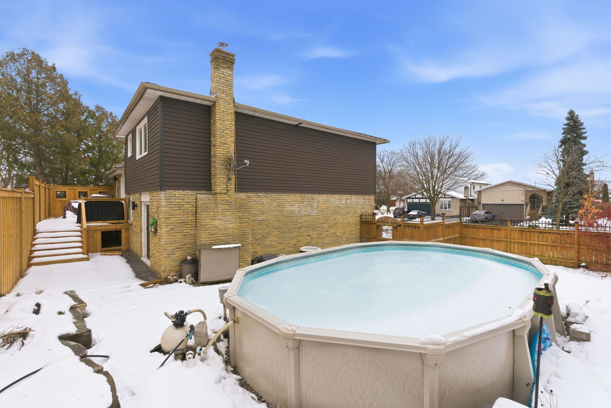 Welcome to this stunning, move-in-ready family home, thoughtfully updated with modern finishes throughout. The sleek custom kitchen features high-end appliances, quartz countertops, a large centre island, black granite double sink, abundant cabinetry, and a walk-out to a brand-new deck. The open-concept layout flows seamlessly into the combined living and dining areas, ideal for entertaining. Three spacious bedrooms include a primary bedroom with an updated semi-ensuite. The second family room offers a walk-out to a private backyard oasis complete with an above-ground pool. The clean, unfinished basement includes laundry and ample storage, ready for your personal touch. Beautiful curb appeal with large, manicured corner lot and no sidewalks. Prime whitby border location close to highways, top-rated schools, parks, and all amenities. Nothing to do but move in and enjoy.