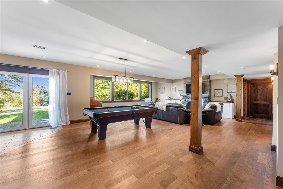 Experience refined lakeside living in this beautifully crafted raised bungalow at 857 cedar glen rd, offering over 3,400 sq ft of f inished living space with breathtaking views of sturgeon lake. Situated in the peaceful kawartha lakes community of dunsford, this property is just steps from the trent severn waterway, with a public boat launch just down the road, perfect for boating, fishing, and water recreation. Inside, the open-concept layout features vaulted wood ceilings, large windows with views of lake sturgeon, and an impressive floor-to-ceiling wood-burning stone fireplace that creates a warm and inviting great room. The custom kitchen is designed for entertaining, complete with quartz counters, a large centre island, stainless steel appliances, and custom cabinetry. Adjacent to the kitchen, enjoy the convenience of a built-in bar, blending beauty with function. The primary suite offers a tranquil retreat, featuring a walk-in closet, private walk-out to deck, and a spa-inspired 5-piece ensuite with a soaker tub and walk-in glass shower. Two additional bedrooms complete the main floor. The fully f inished lower level is ideal for gatherings and guest stays, showcasing a spacious rec room with a second fireplace, oversized windows, a walk-out to the yard, and space for a games area or pool table. A fourth bedroom with a walkout to the yard, a full bath, and a large laundry room complete the basement. Outdoors, enjoy quiet evenings by the fire pit under the stars, surrounded by mature trees and just a short stroll from the water. The detached garage offers excellent storage or workshop potential, and the long private driveway accommodates multiple vehicles. A rare offering that combines upscale finishes, natural beauty, and year-round enjoyment, this is a home you'll be proud to show.