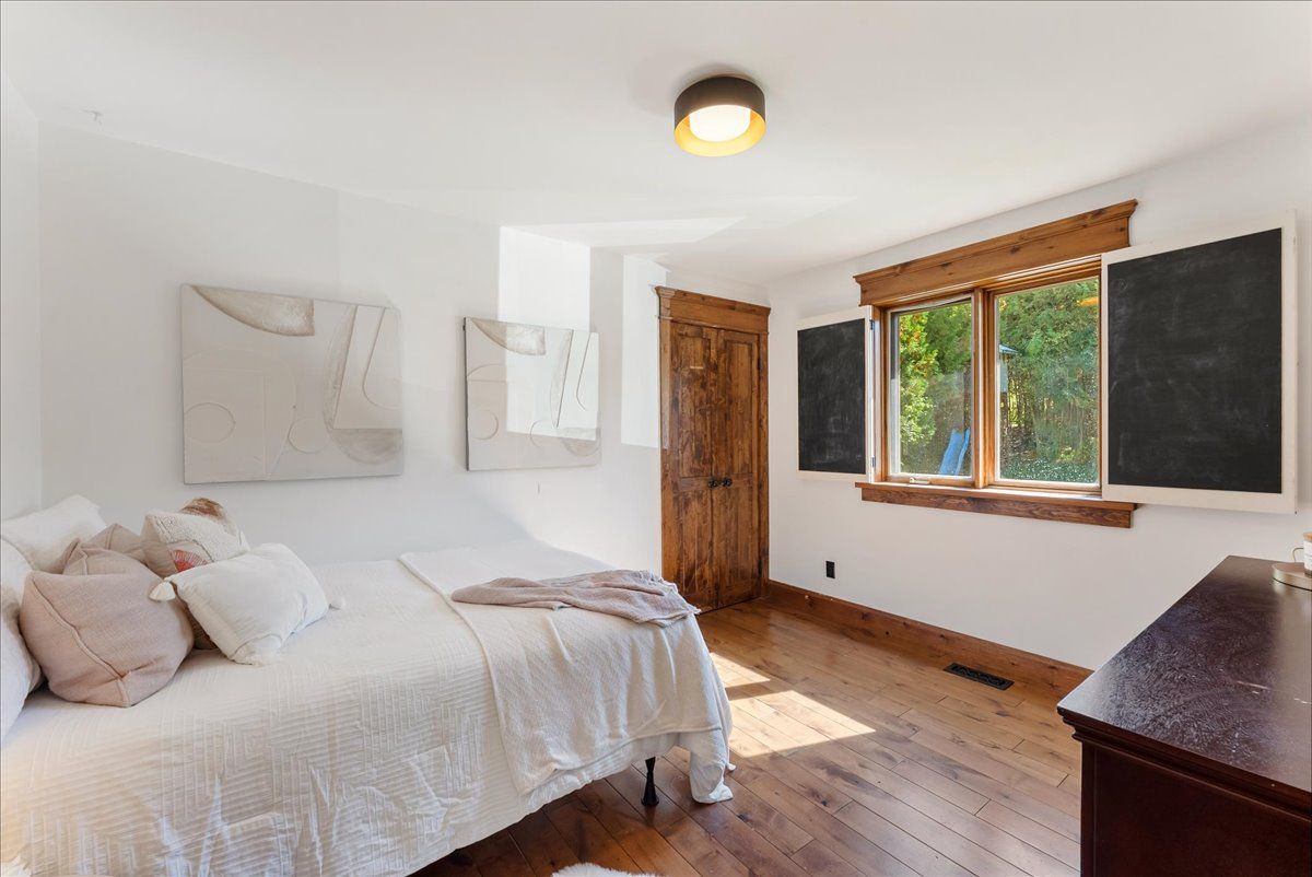 • Large outdoor space with fire pit and mature trees for relaxation.