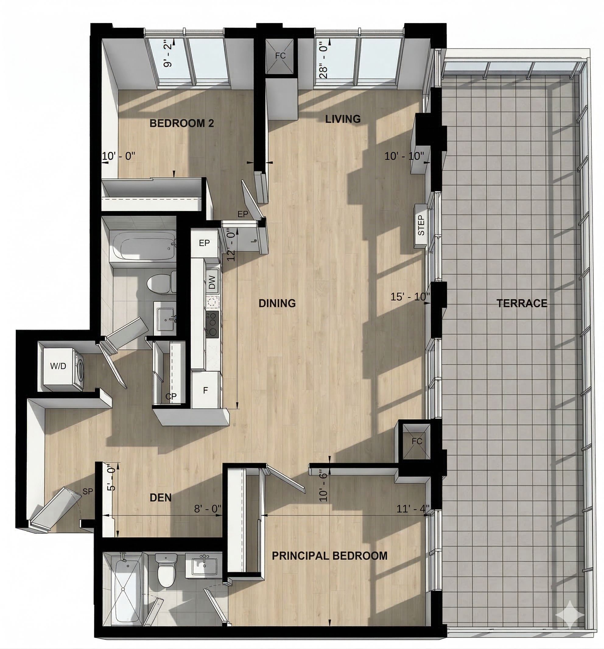 • Expansive 380 sq. ft. private terrace ideal for outdoor entertaining.