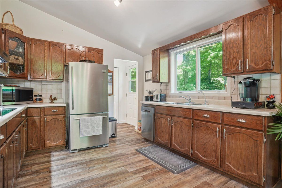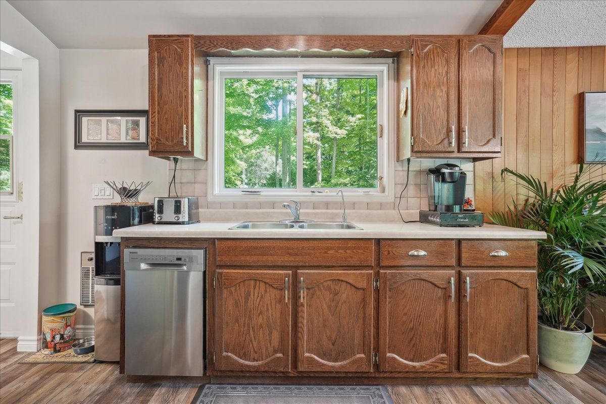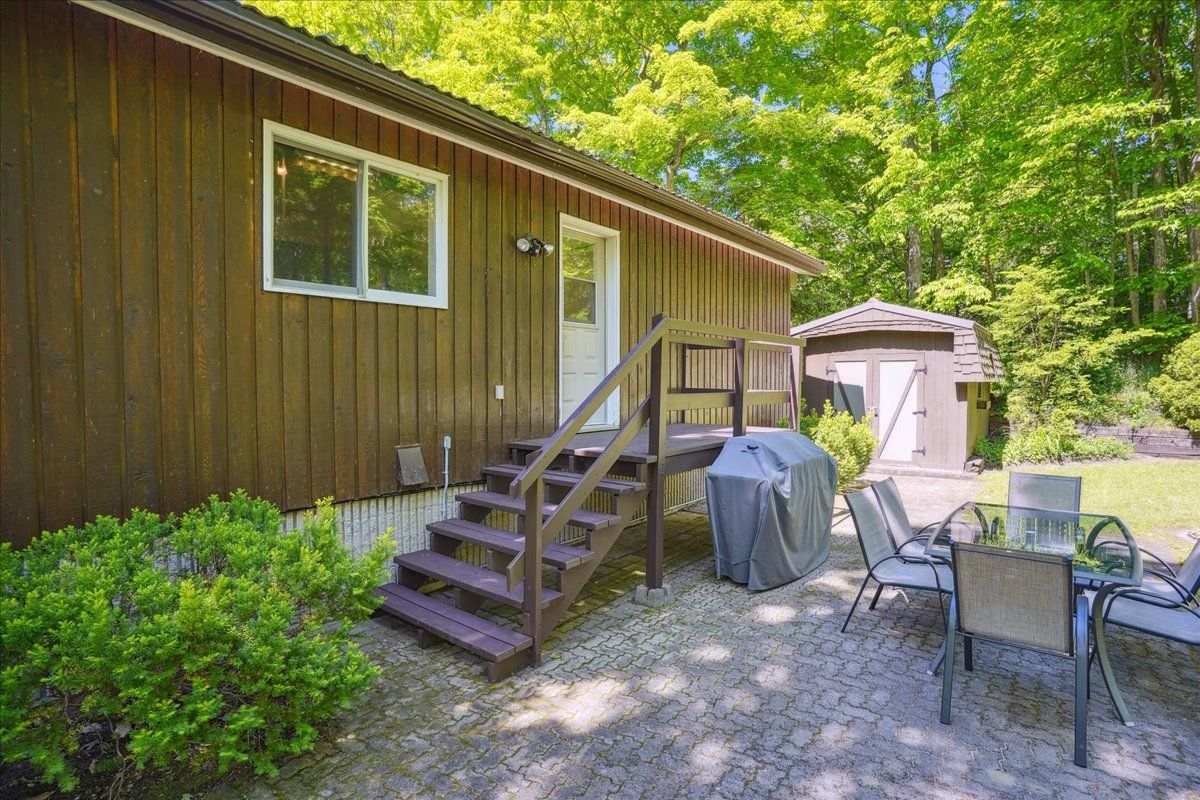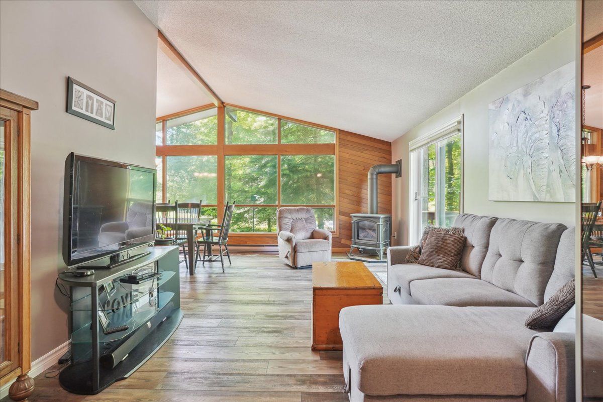 Welcome to sunny sauble beach! Enjoy the fresh air & crystal-clear waters of lake huron, in an amazing community with plenty of amenities and activities for all ages. This updated home is situated on a fantastic lot with mature trees, plenty of parking, private backyard with large garden shed, perennial gardens, water feature, firepit, and sprawling front deck perfect for your morning coffee or evening beverage. Upper level boasts bright living and dining area with huge windows overlooking forested views, soaring 10' ceilings, gas woodstove, an excellent space for entertaining. You'll find loads of cupboard and counter space in the kitchen for the gourmet chef with stainless steel appliances, cooktop, wall oven & walkout to back deck. A huge primary bedroom with plenty of closet space, 2 additional bedrooms (all with vaulted ceilings), and an updated 3-piece bathroom with walk-in shower, ceramic floors & pot lights complete the upper level. Entertain or relax in the lower-level rec room either around the wet bar or watching the game by the fireplace. That's not all downstairs; updated lower-level laundry, storage spaces, additional 4-piece bathroom, & access to the heated & insulated garage. Feature booklet is attached. Updates incl: all lighting, water softener, plumbing, ro system, flooring, doors, hardware, appliances & more. Metal roof. Fiber optic internet. Come live the sauble life with 11km's of beach to enjoy.