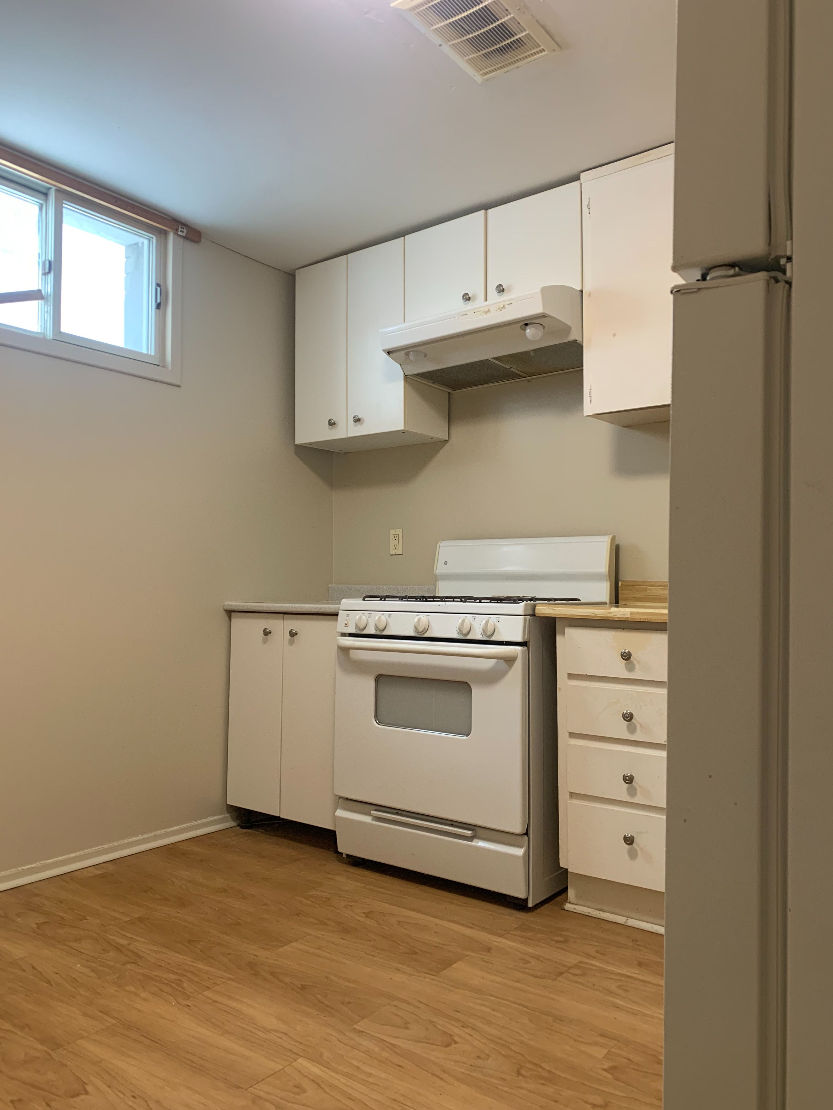 Freshly painted lower level apartment in charming neighborhood close to cycling paths and lrt. One-bedrooom,one-kitchen, one-living room plus one bath. Coin operated washer/dryer. Close to all amenlities such as shopping center, transportation,etc. Tenants pay hydro for utility. No pets, no smoking.