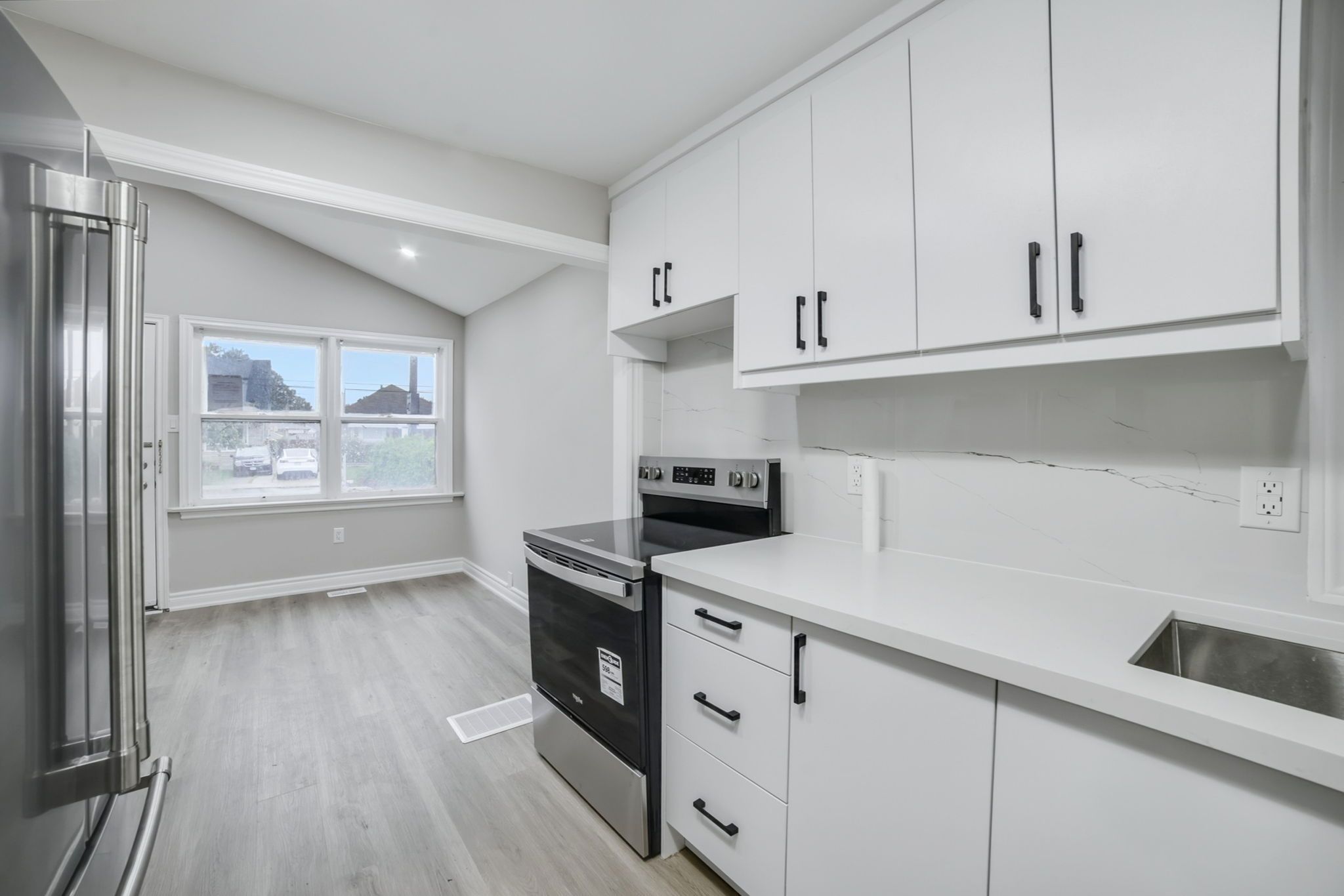 Live the hamilton dream in this detached bungalow, ideally situated in the lively glenview/bartonville neighborhood. Designed for both comfort and convenience, this home features an open-concept living area where the bright kitchen, dining, and living spaces merge effortlessly. You'll find two spacious bedrooms on the main level, along with a full bathroom. The partially finished basement adds valuable square footage, ready to be transformed into your perfect home office or private retreat. New roof 2025, new appliances, fully renovated, new driveway , host gatherings or simply unwind in your own private backyard with deck. With a two-car driveway and proximity to shopping, schools, and major routes like the red hill valley parkway and qew, this property offers everything a young family or first-time buyer could want.