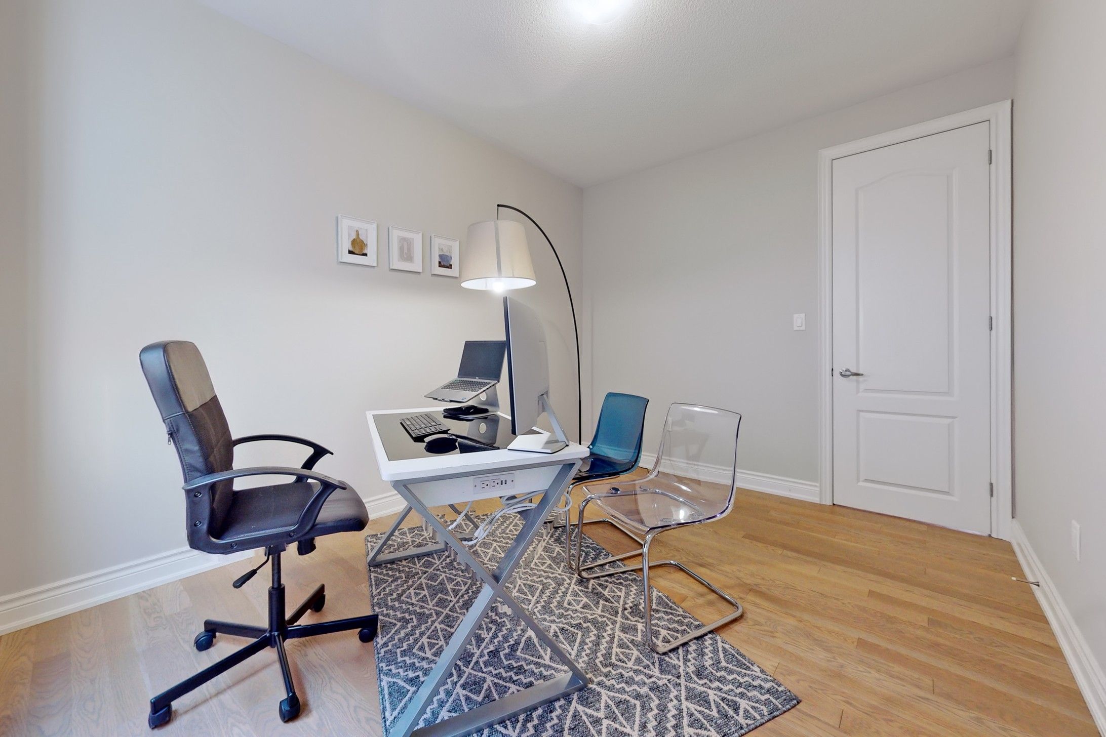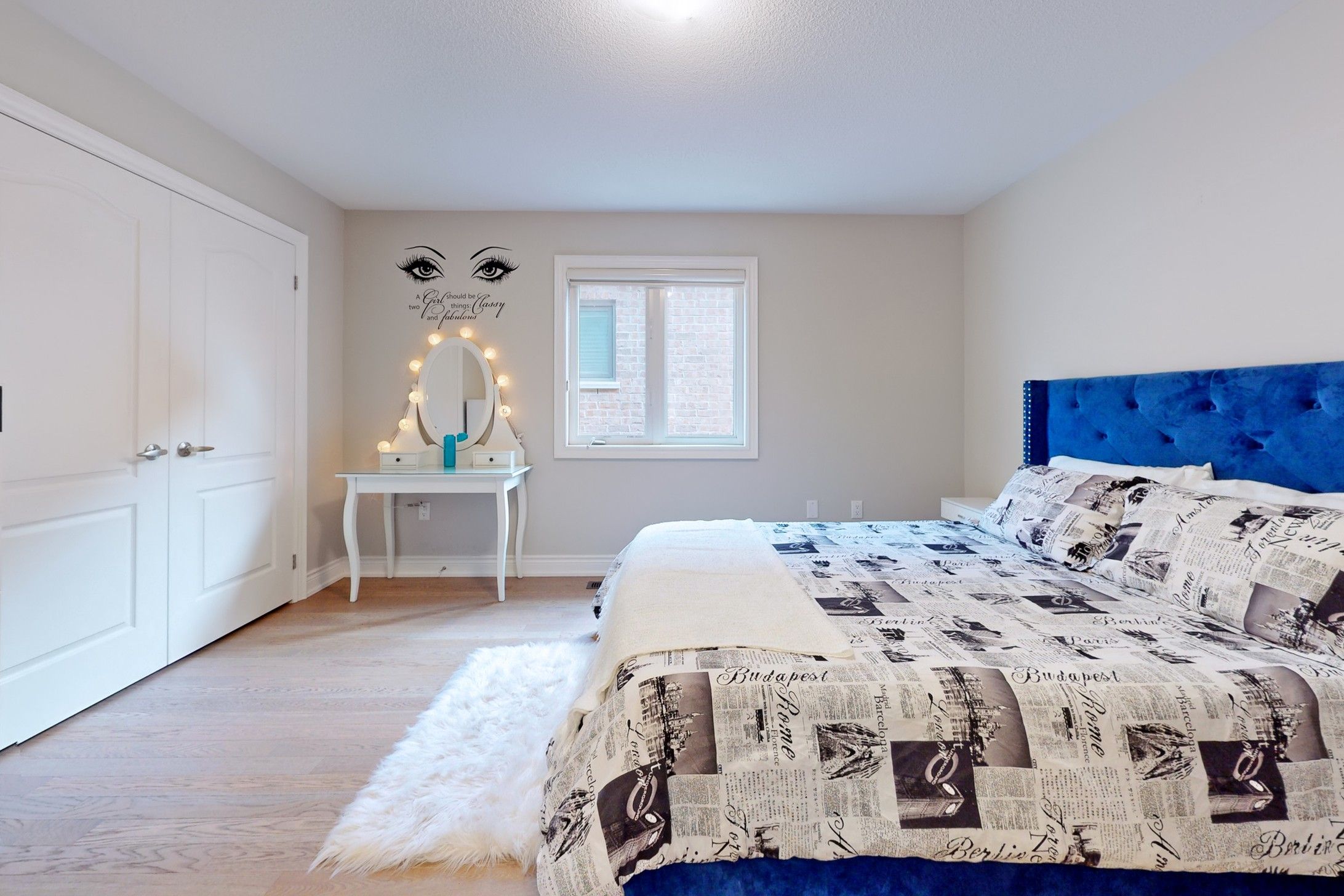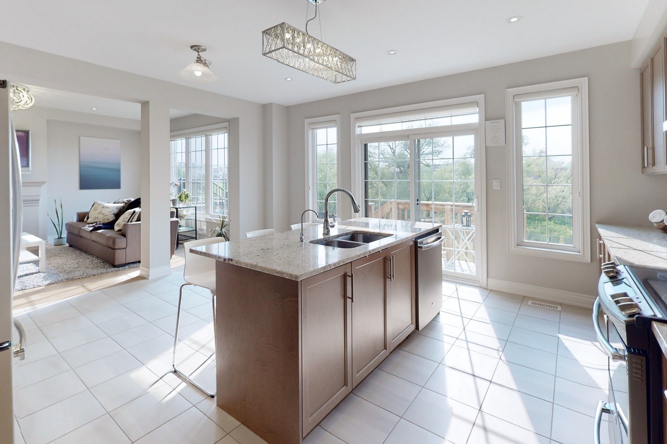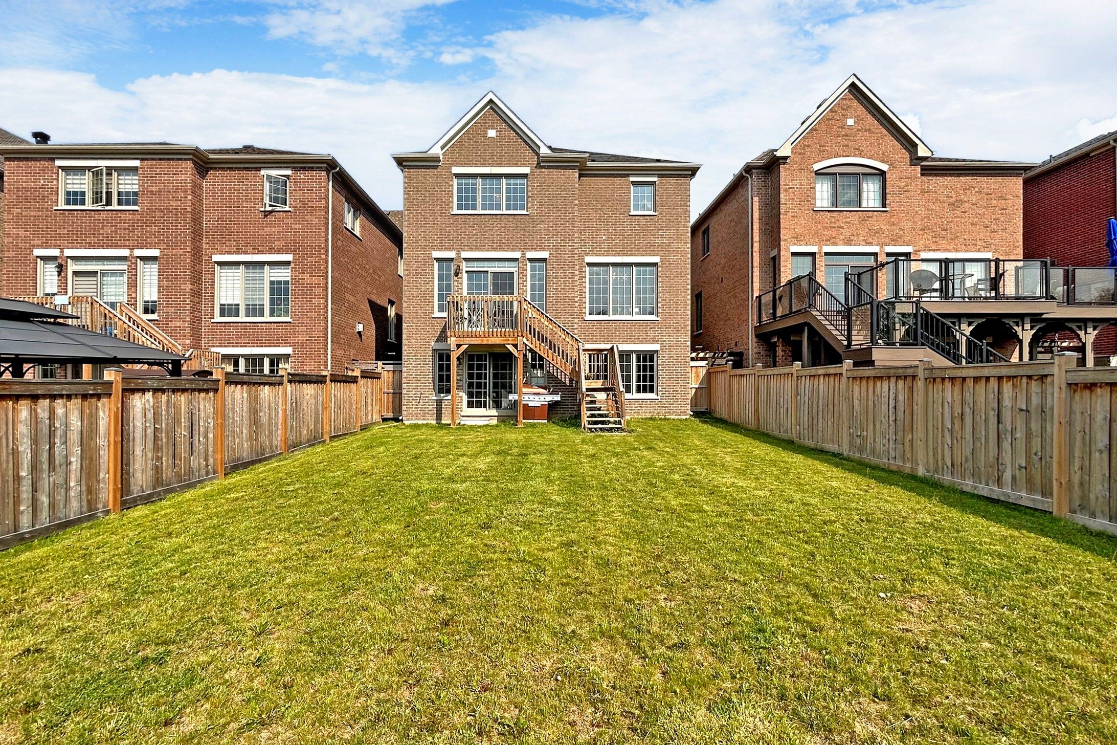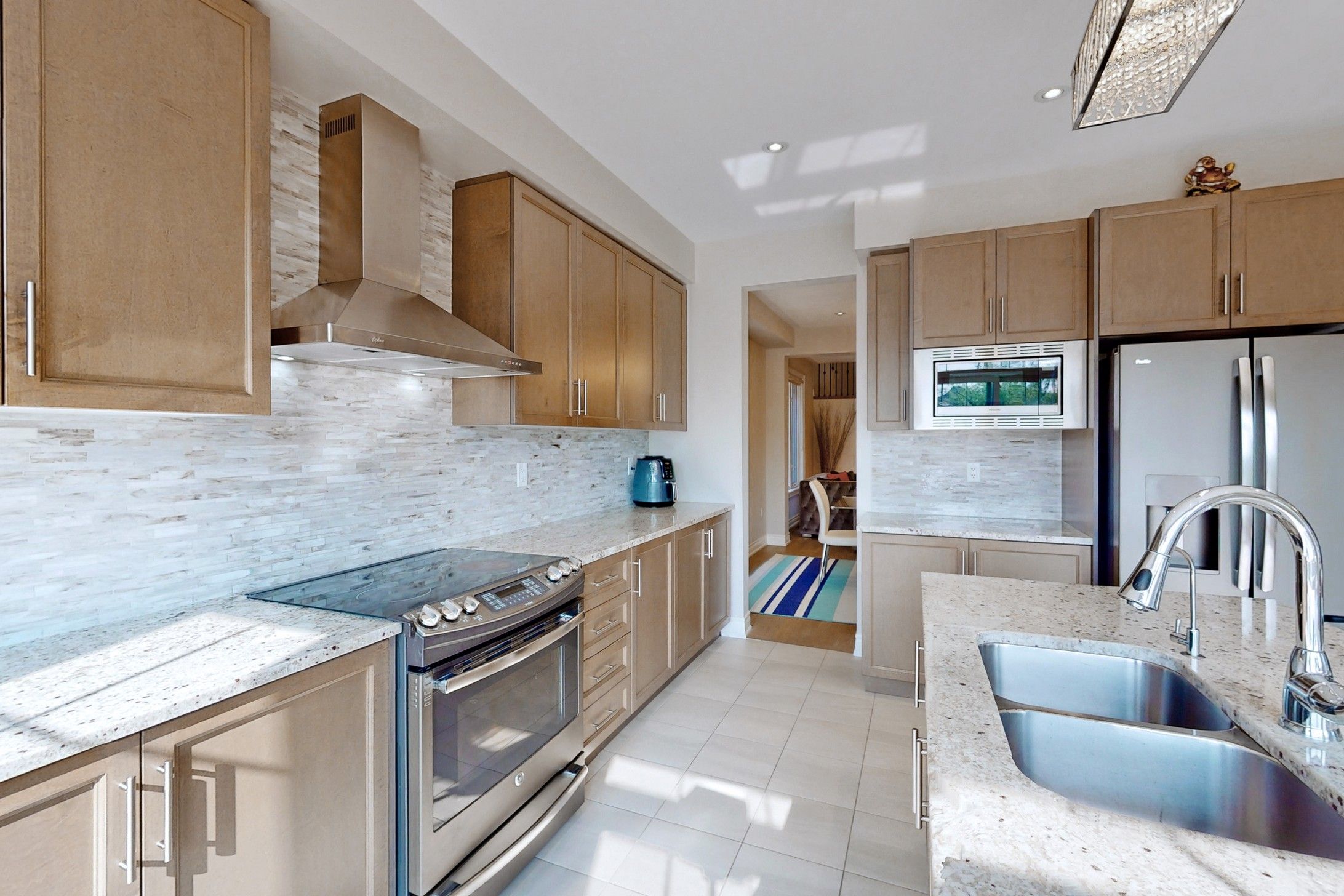 Welcome to this impeccably maintained, great gulf-built detached home, featuring 5 spacious bedrooms, 5 bathrooms, a 2-car garage, and a 4-car driveway all set on a stunning ravine lot with a walkout basement! Nestled in a quiet cul-de-sac, this exceptional property offers both privacy and convenience. Step inside to soaring 9-foot ceilings on the main floor and impressive 8-foot double-door entry. The foyer greets you with gleaming ceramic tiles, pot lights, and an open-concept layout filled with natural light and designer finishes. The main level boasts a chef-inspired kitchen complete with granite countertops, ceramic backsplash, and a breakfast area with walkout to the deck perfect for entertaining. Enjoy a seamless flow through the elegant living and dining rooms, cozy family room with gas fireplace, private office, powder room, and a functional laundry room. Engineered hardwood flooring runs throughout both the main and upper levels, adding warmth and sophistication. Upstairs, you'll find five generously sized bedrooms and four full bathrooms, including a luxurious primary suite with a massive walk-in closet and a spa-like 6-piece ensuite. Four of the five bedrooms feature ensuite access, offering unparalleled comfort for the whole family. Located just minutes from the go station, costco, shops, restaurants, parks, trails, and with easy access to major highways this turnkey home delivers space, style, and location in one exceptional package. Don't miss your opportunity to own this stunning ravine-lot home!