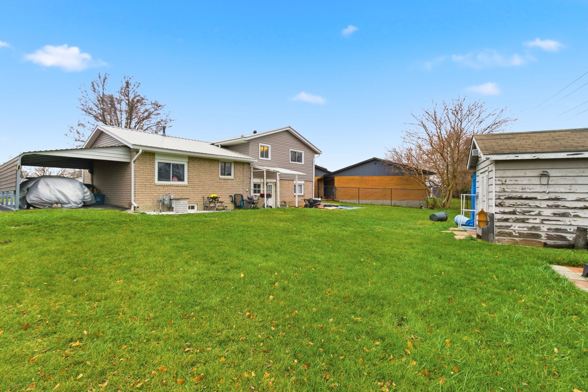 Welcome to 86 chestnut drive, a beautifully updated 3+1 bedroom, 1. 5 bath side-split in a family-friendly chatham neighbourhood close to parks, schools, st. Clair college, shopping, and quick 401 access. The bright main level features large windows, fresh paint, new vinyl flooring (2024), and an inviting open feel that flows into the updated kitchen, complete with new tile flooring (2024), new stainless-steel fridge and stove, generous cabinetry, and a modern backsplash-creating a warm, functional space perfect for cooking and gathering. Upstairs, you'll find three great-sized bedrooms and a fully renovated 5-piece bathroom (2023) with contemporary finishes. The lower level offers a spacious family room with a white brick fireplace, an additional bedroom, half bath, and a desirable walkout to the backyard, making it ideal for families, guests, or multi-generational living. Exterior updates include a new metal roof and siding (2024), hardwired cctv system, waterproofing, and a new sump pump. The deep backyard offers no rear neighbours for added privacy, along with a carport, storage shed, and ample parking. With thoughtful updates throughout and a highly functional layout, this home delivers exceptional value in a great location.