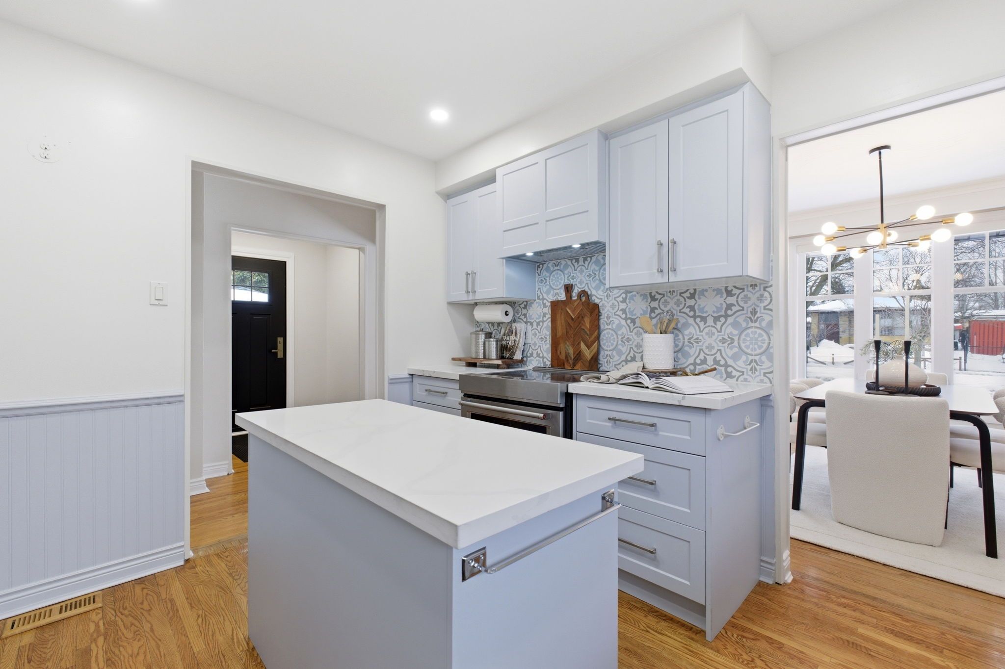 • Bright main floor with hardwood floors and a renovated chef's kitchen.
